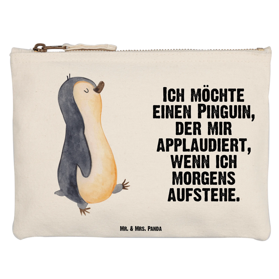 Der niedliche Pinguin, der fröhlich marschiert, bringt ein Lächeln auf dein Gesicht - egal, ob du Frühaufsteher oder Langschläfer bist! Mit dem Spruch: 'Ich möchte einen Pinguin, der mir applaudiert, wenn ich morgens aufstehe.' ist diese Schminktasche ein idealer Motivator für jeden Start in den Tag.