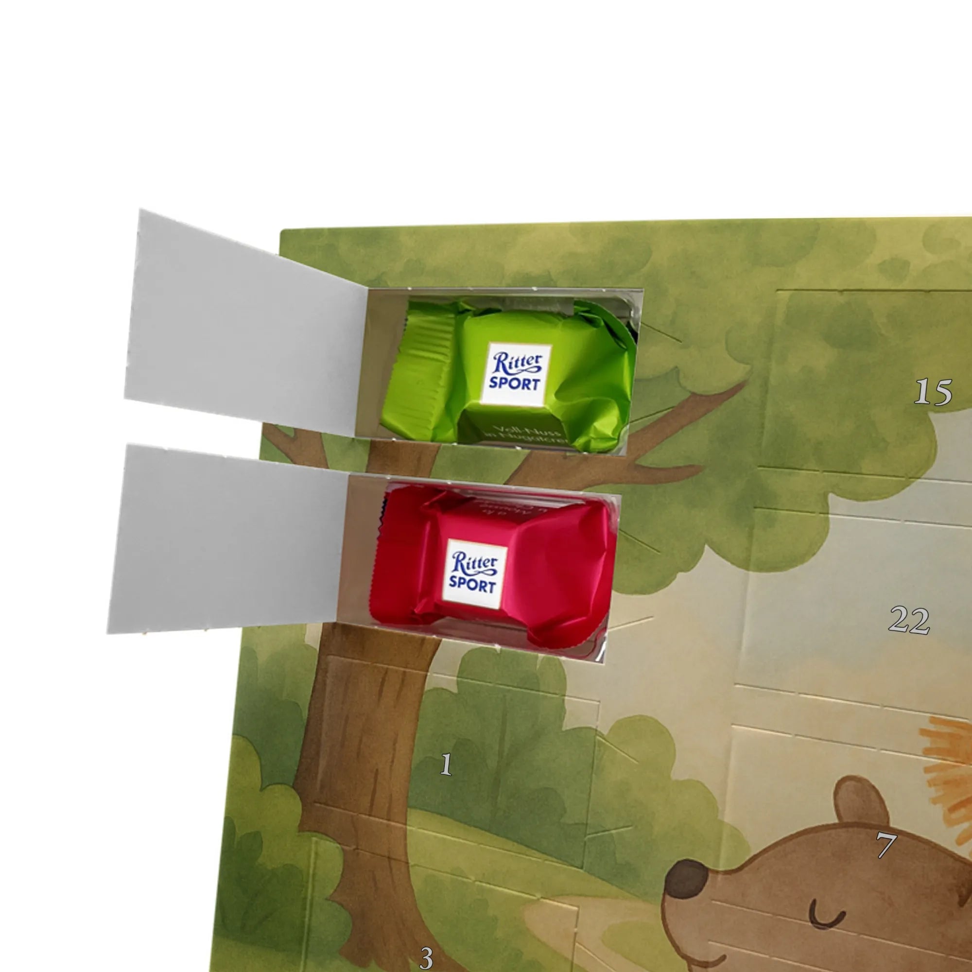🐼 24 Türchen gefüllt mit Ritter Sport Schokowürfeln – perfekte Adventsüberraschungen.