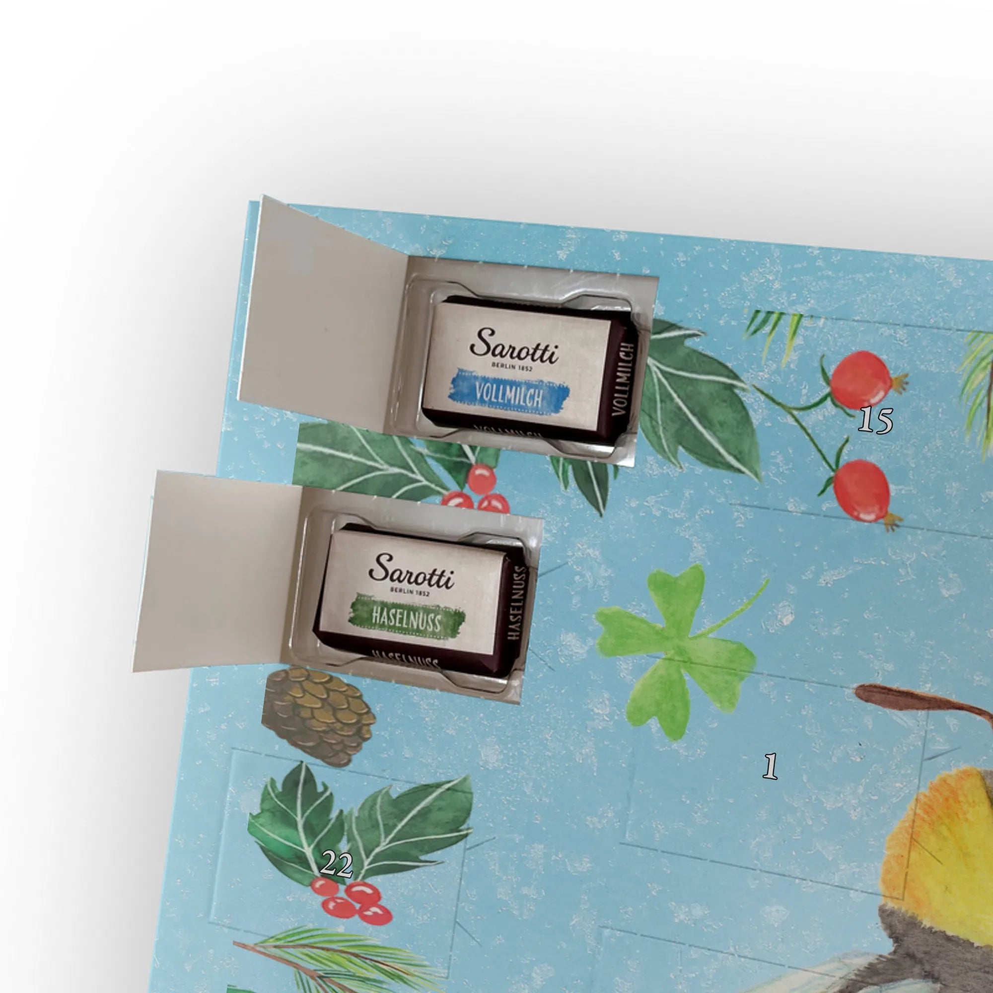 🐼 Adventskalender mit Schokolade, liebevoll bedruckt, seidenmatt veredelt.