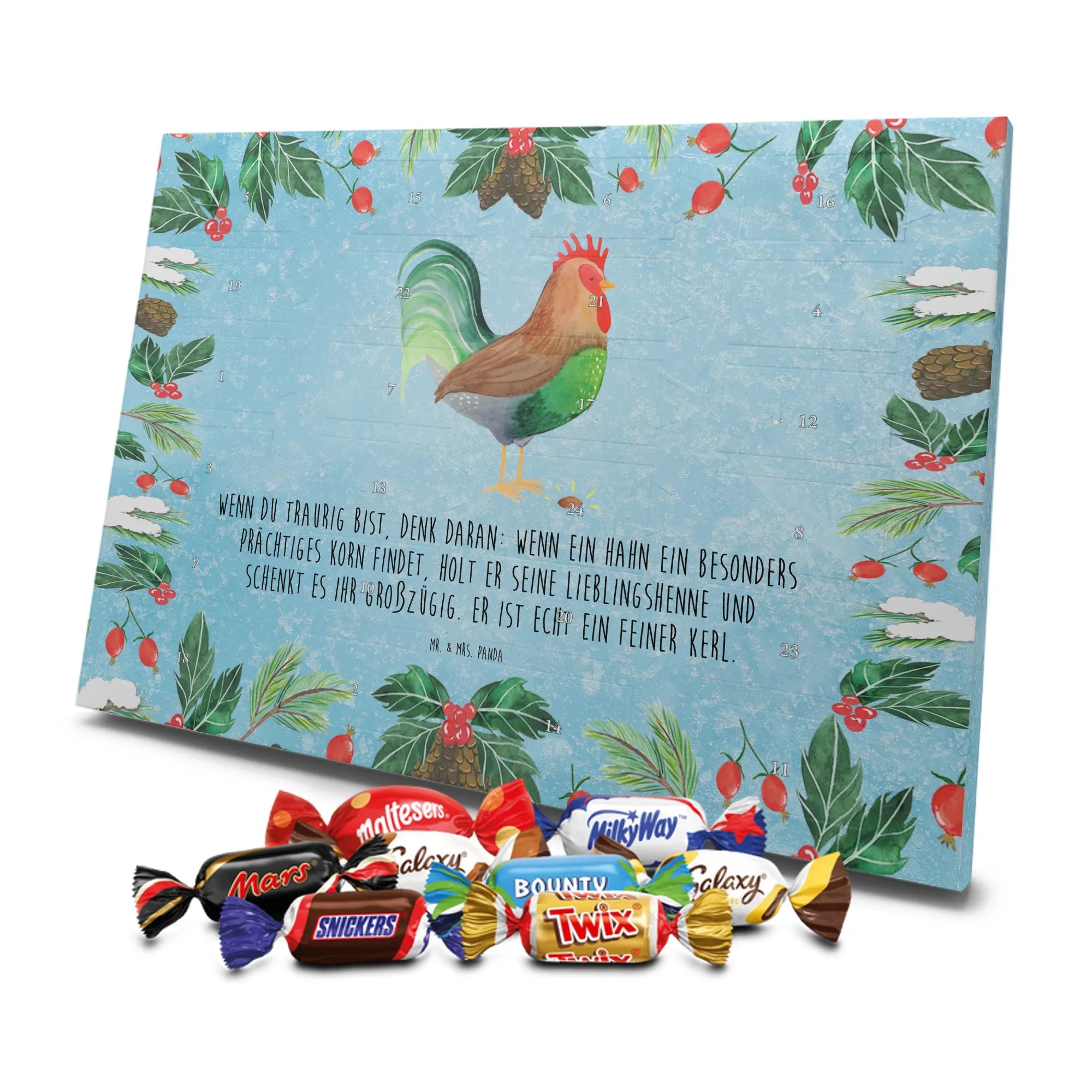 Schokoladen-Adventskalender Hahn Korn - Classic - mit Spruch - Eisblau