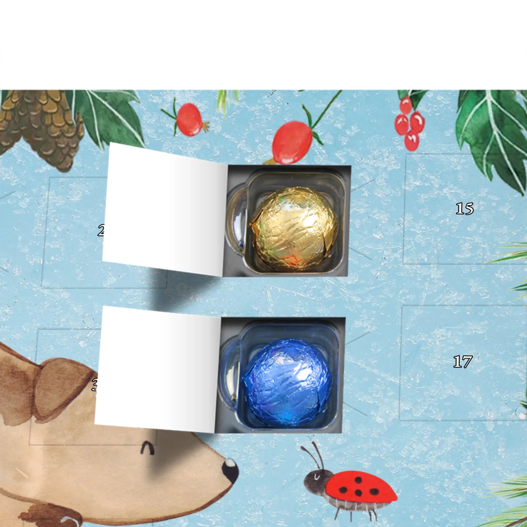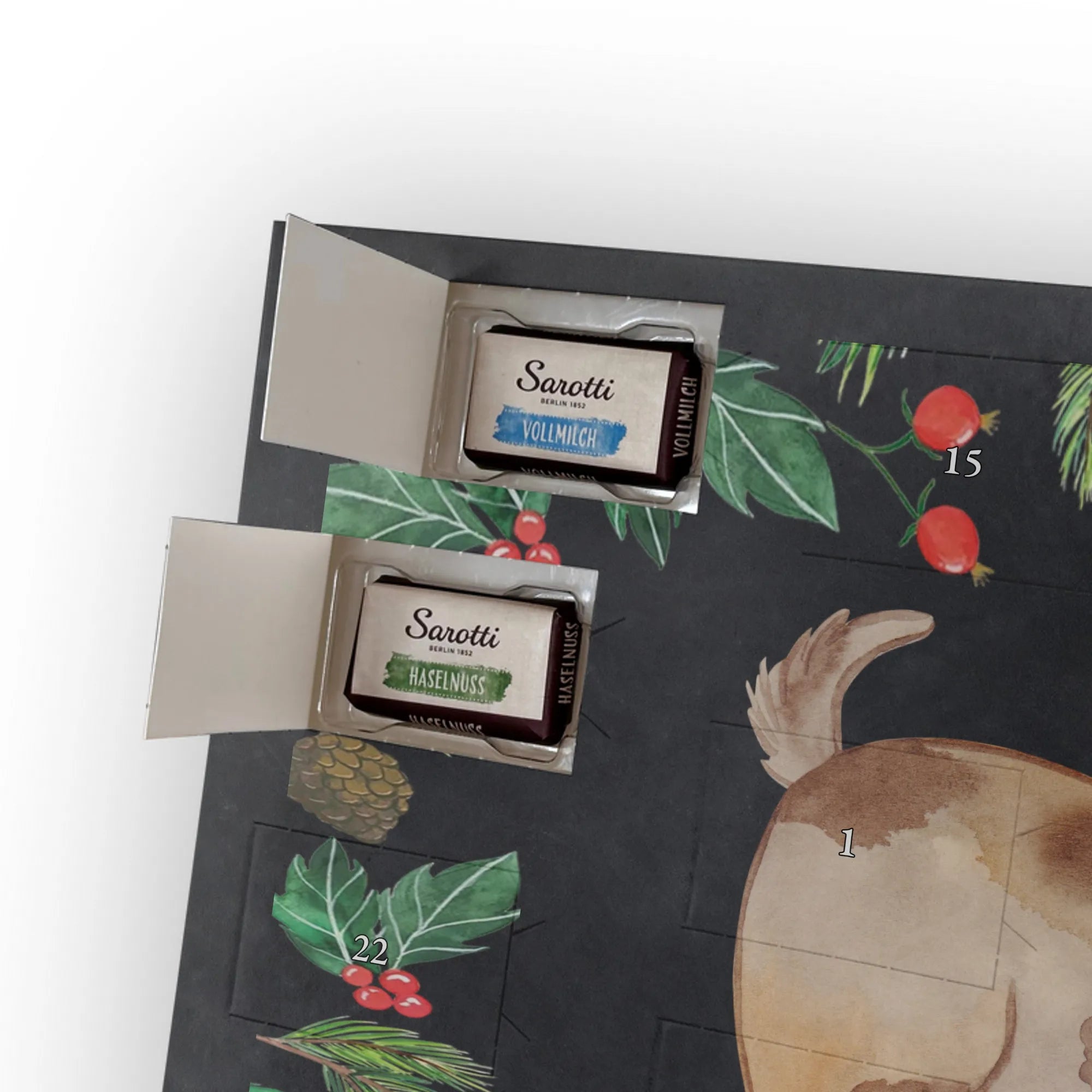 🐼 Schoko-Adventskalender: Liebevolles Design, seidenmatt, brillanter Druck – ein Hingucker.