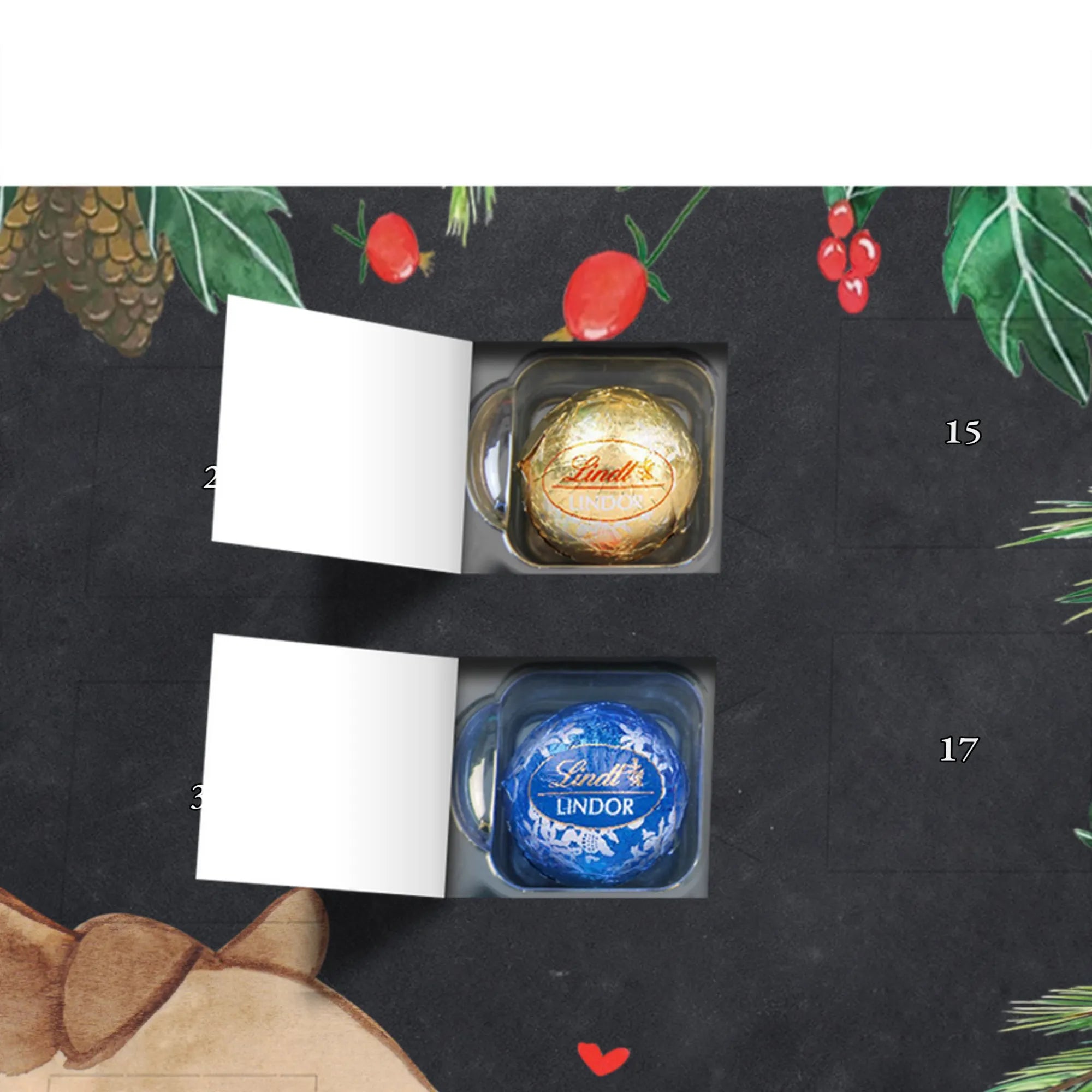 pralinen adventskalender Hund Marienkäfer - Lindt LINDOR - mit Spruch - Kreidetafel