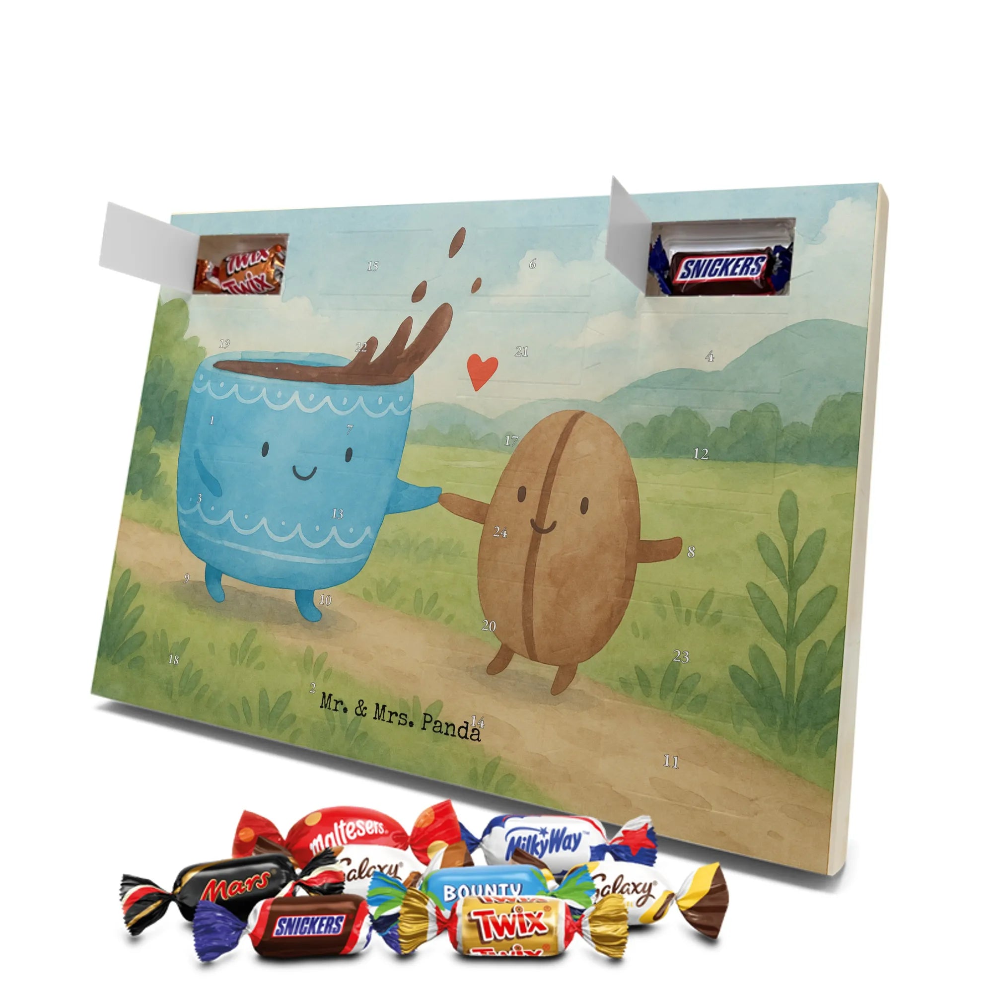 Unser Schoko Adventskalender von Mr. & Mrs. Panda bringt dir und deinen Lieben jede Menge Vorfreude und zauberhafte Momente in die Adventszeit. Der Kalender ist liebevoll bedruckt mit wunderschönen Motiven und frechen Sprüchen im typischen Mr. & Mrs. Panda Stil – ein echter Blickfang auf dem Tisch oder an der Wand. Die brillante Druckqualität kombiniert mit einer seidenmatten Oberflächenveredelung sorgt für edle Farben und ein angenehmes Gefühl beim Anfassen. Auch die Seitenflächen sind bedruckt, sodass der Kalender von allen Seiten hübsch aussieht. Er ist nicht personalisierbar, dafür aber in seiner Gestaltung rundum stimmig. Gefüllt ist der Adventskalender mit 24 hochwertigen Celebrations-Füllungen in acht verschiedenen Sorten: Maltesers, Mars, Snickers, Twix, Milky Way, Bounty, Galaxy und Galaxy Caramel — so ist für jede Naschkatze etwas dabei. Die Besonderheit: Du kannst den Kalender entweder aufstellen oder dank rückseitiger Aufhängung an die Wand hängen. Maße: 325 mm x 225 mm x 27 mm. Ein liebevolles Geschenk für Familie, Freunde oder einfach für dich selbst, das kleine tägliche Glücksmomente schenkt und die Adventszeit versüßt.