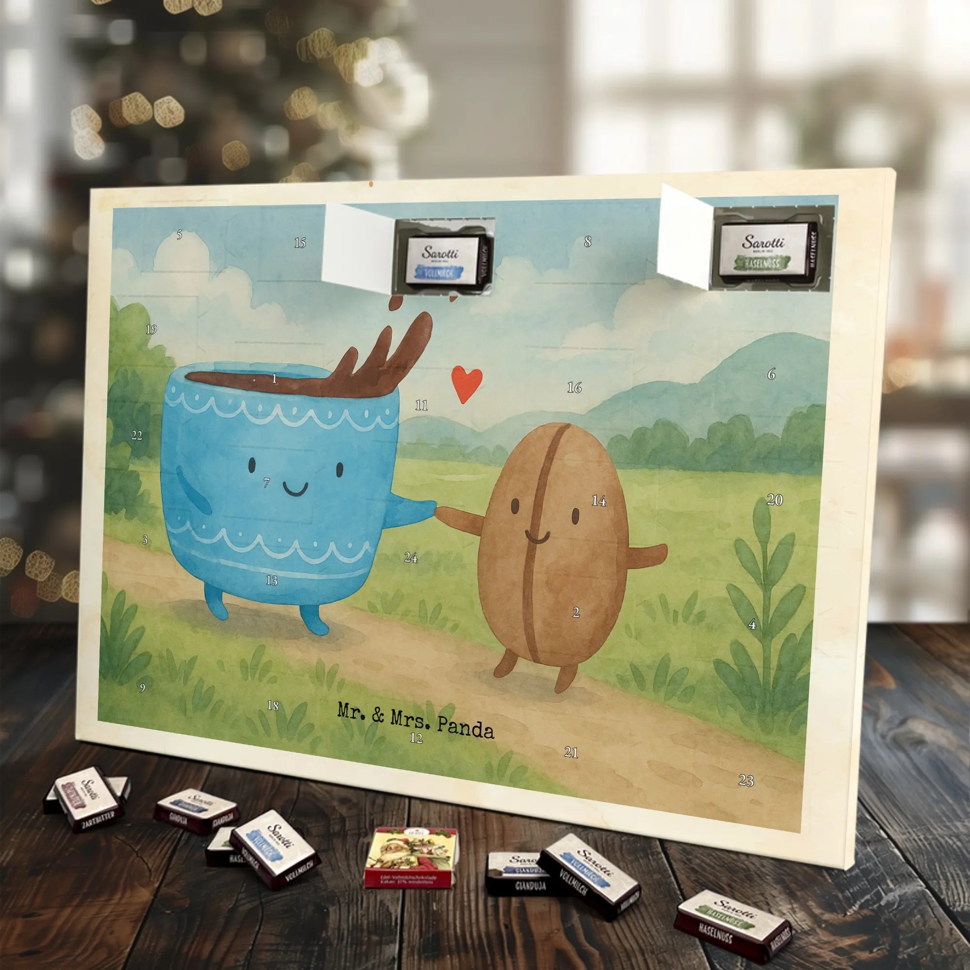 Mach die Vorweihnachtszeit besonders süß mit unserem Schoko-Adventskalender von Mr. & Mrs. Panda. Fröhliche Illustrationen und liebe Sprüche schmücken Vorder- und Seitenflächen, gedruckt in brillanter Qualität und veredelt mit einer seidenmatten Oberfläche für ein warmes, elegantes Finish. Der Kalender ist nicht personalisierbar, überzeugt dafür durch praktische Nutzung: zum Aufhängen oder Aufstellen geeignet. Hinter den 24 Türchen verbergen sich einzeln verpackte Schokoladentäfelchen in vier köstlichen Geschmacksrichtungen – Vollmilch, Nougat, Zartbitter und Haselnuss – von Sarotti® und Confiserie Heidel®. Insgesamt liefert der Kalender 107 g Markenschokolade. Maße: 355 mm x 245 mm x 11 mm – ideal, um Adventsfreude dekorativ zu präsentieren. Verschenke Liebe und Genuss in einem schönen Design, das sich wunderbar in jede Weihnachtsecke einfügt. Mr. & Mrs. Panda wünscht dir eine gemütliche Adventszeit voller kleiner, süßer Überraschungen.
