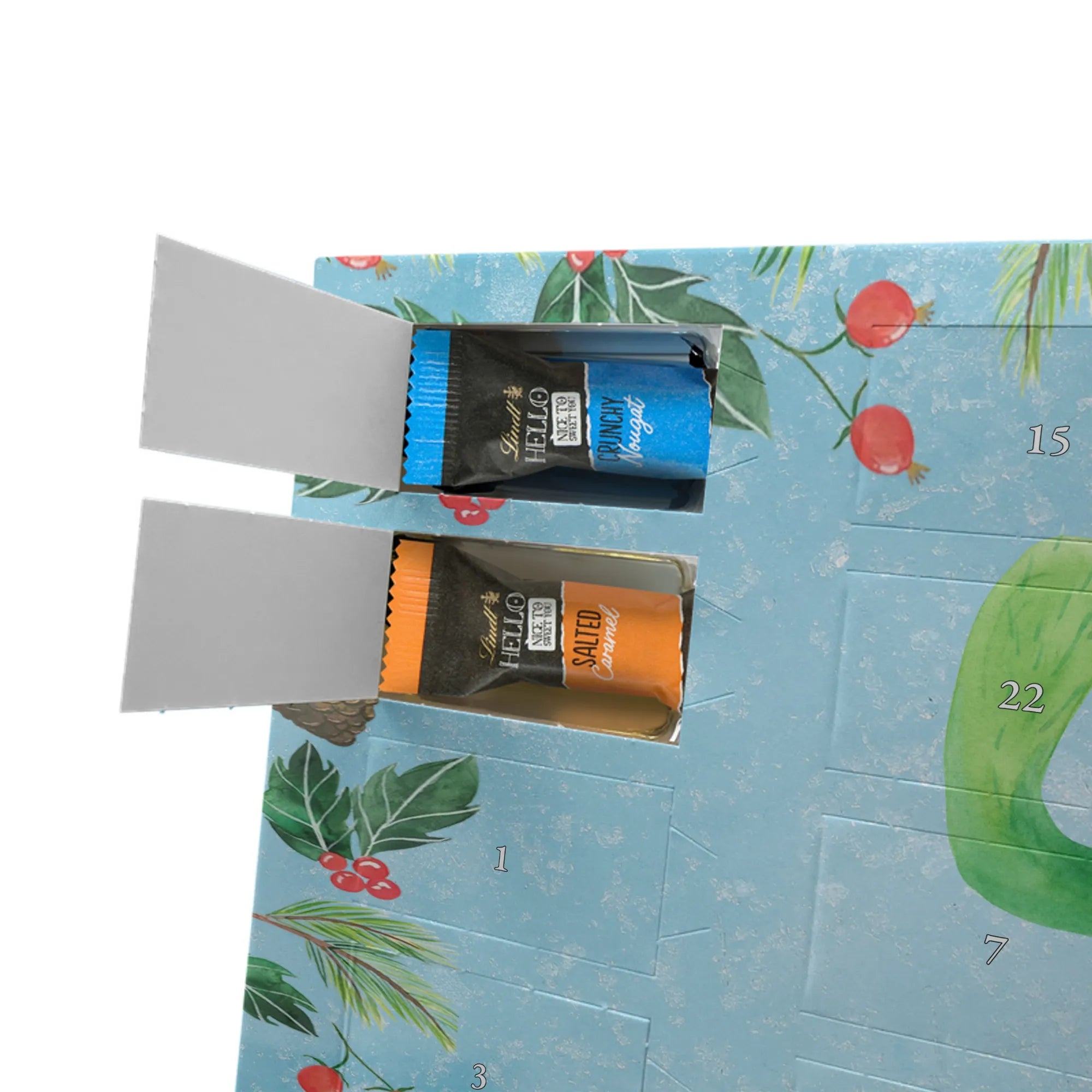 Mach die Adventszeit süßer: Entdecke jetzt unseren liebevoll bedruckten Adventskalender und genieße 24 Tage voller Lindt Hello Mini Sticks!