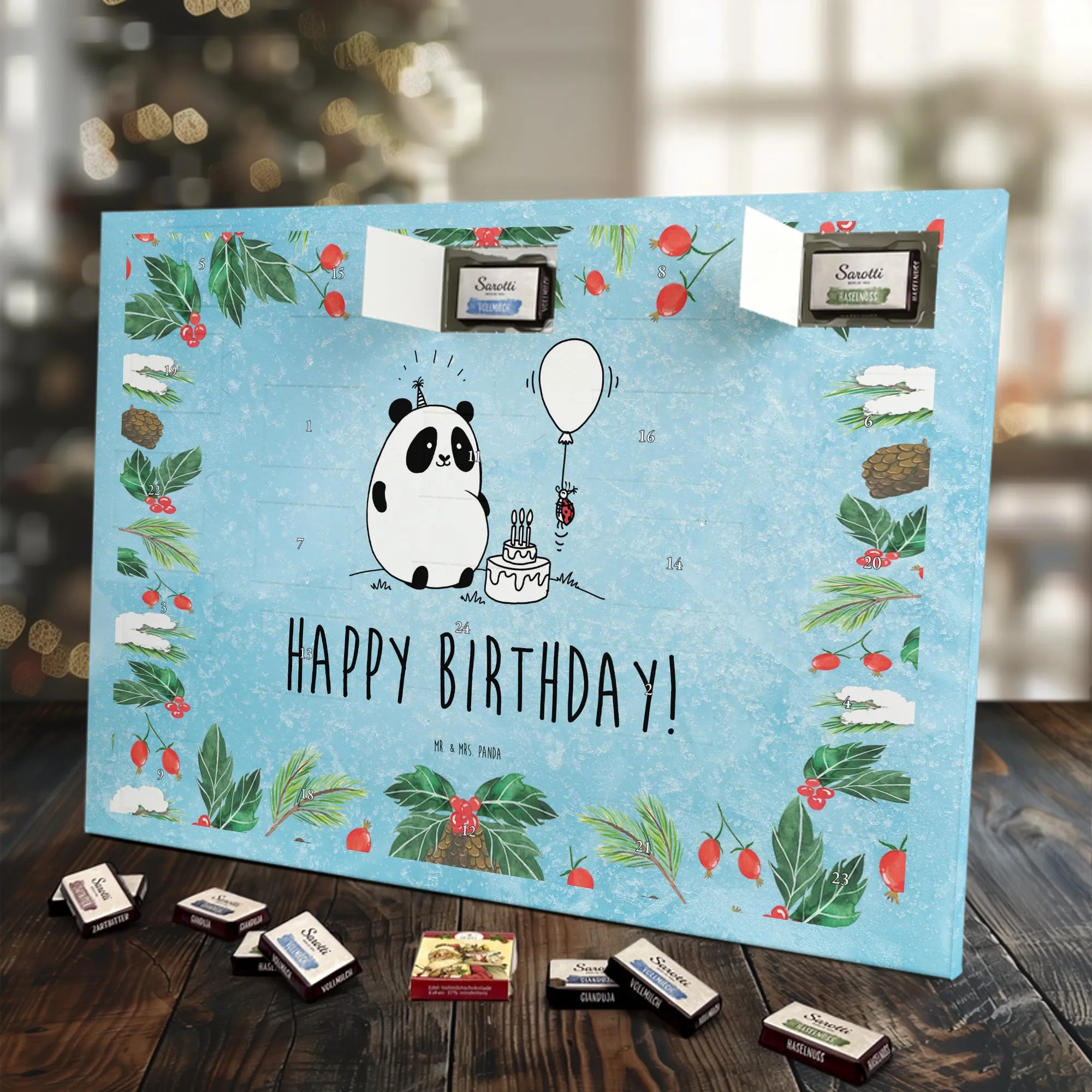 Schokoladen-Weihnachtskalender Panda Geburtstag - Classic - Eisblau