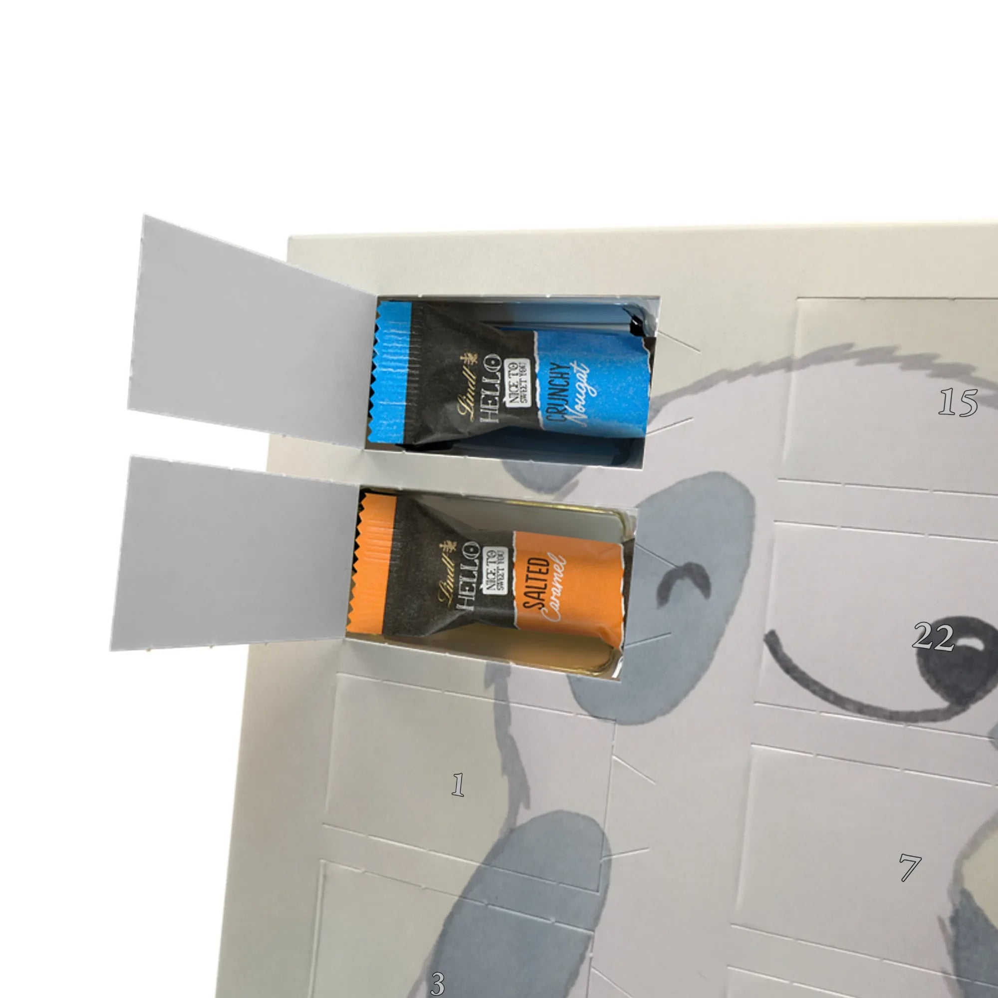 Entdecke den charmanten Schokoladen Adventskalender von Mr. & Mrs. Panda – ein kleines Kunstwerk für alle Schoko-Liebhaber. Der Schoko-Adventskalender ist mit liebevollen Illustrationen und kurzen Sprüchen bedruckt und verbreitet gemütliche Vorfreude auf Weihnachten. Er ist nicht personalisierbar, aber durch die brillante Druckqualität und die seidenmatte Oberflächenveredelung ein echtes Hingucker-Produkt. Auch die Seitenflächen sind bedruckt, was dem Kalender ein rundum schönes Erscheinungsbild verleiht. Maße: 325 mm x 225 mm x 27 mm. Das praktische Design erlaubt es, den Kalender aufzuhängen oder aufzustellen. Gefüllt mit Lindt Hello Schokolade: 24 einzeln verpackte Mini Sticks in vier leckeren Sorten – Karamell-Schokoladenkuchen, Kekse, Knuspriger Nougat und Erdbeer-Cheesecake. Zutaten sind u. a. Zucker, Kakaobutter, Vollmilchpulver, Haselnüsse und weitere Zutaten; Allergene: Milcheiweiß, Milchzucker, Soja, Weizen, Haselnüsse; kann Spuren von Mandeln und anderen Schalenfrüchten enthalten. Ideal als Geschenk oder zum Selbernaschen – einfach jeden Tag ein Türchen öffnen und genießen.