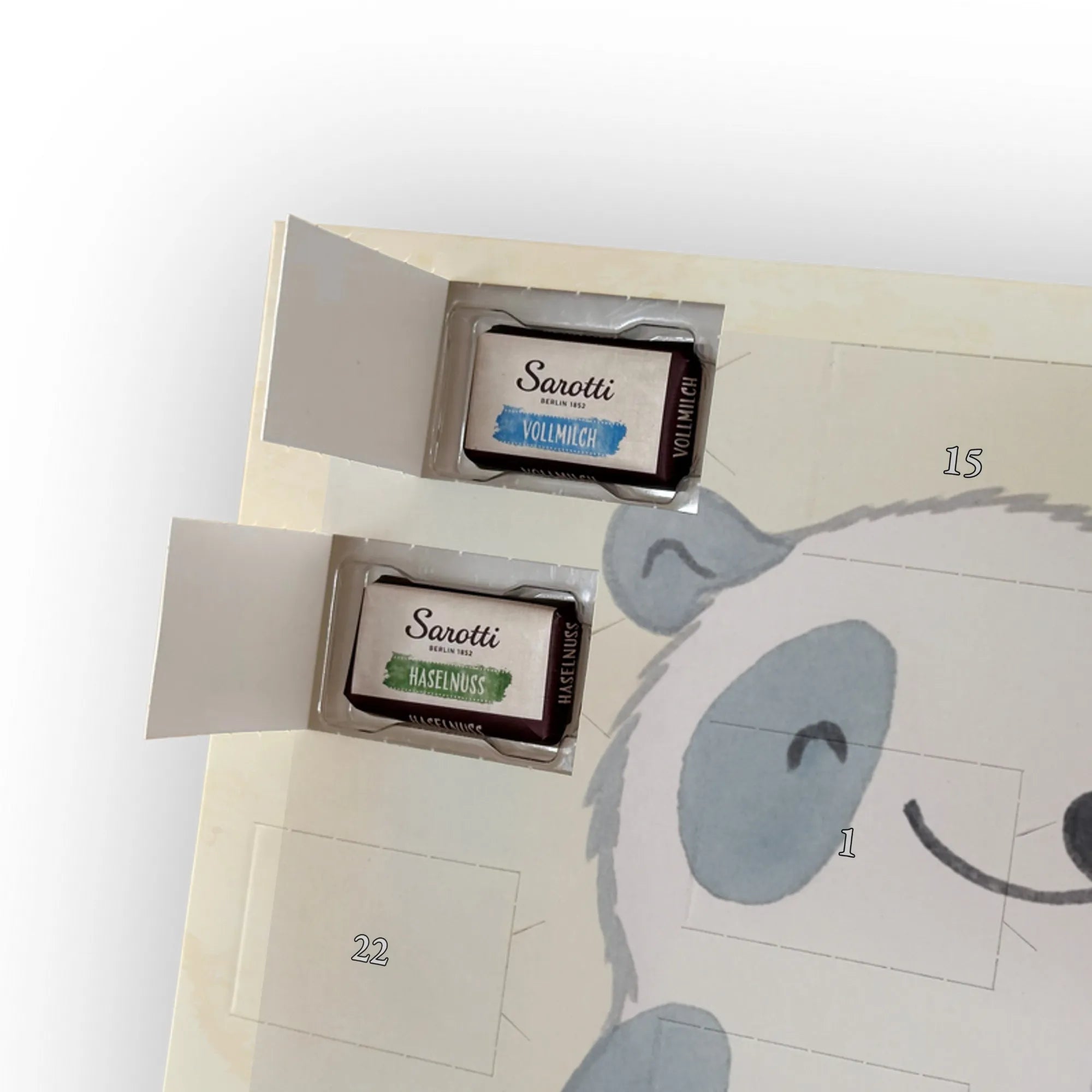 🐼 Adventskalender mit Schokolade, liebevoll bedruckt, seidenmatt veredelt.