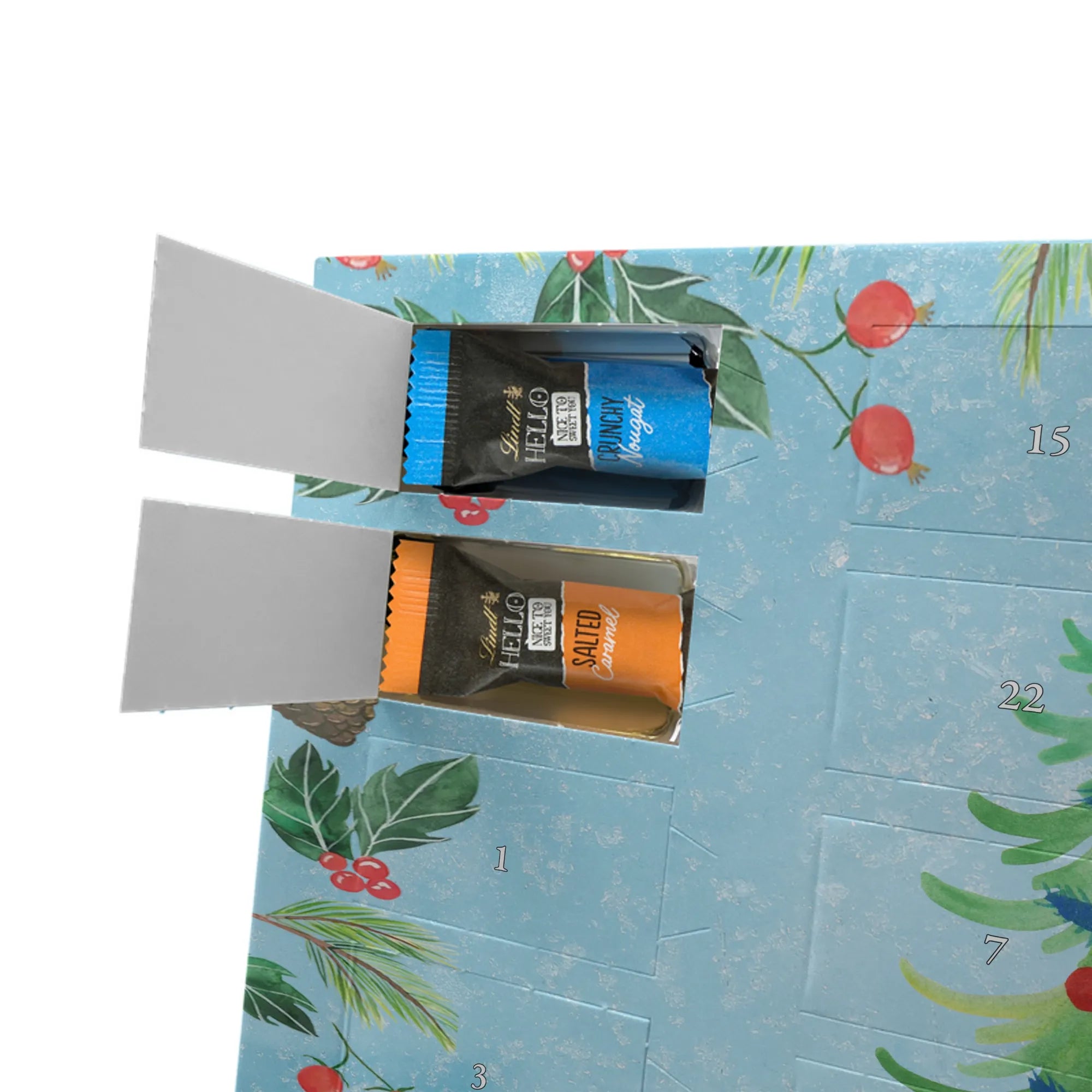 Mach die Adventszeit süßer: Entdecke jetzt unseren liebevoll bedruckten Adventskalender und genieße 24 Tage voller Lindt Hello Mini Sticks!