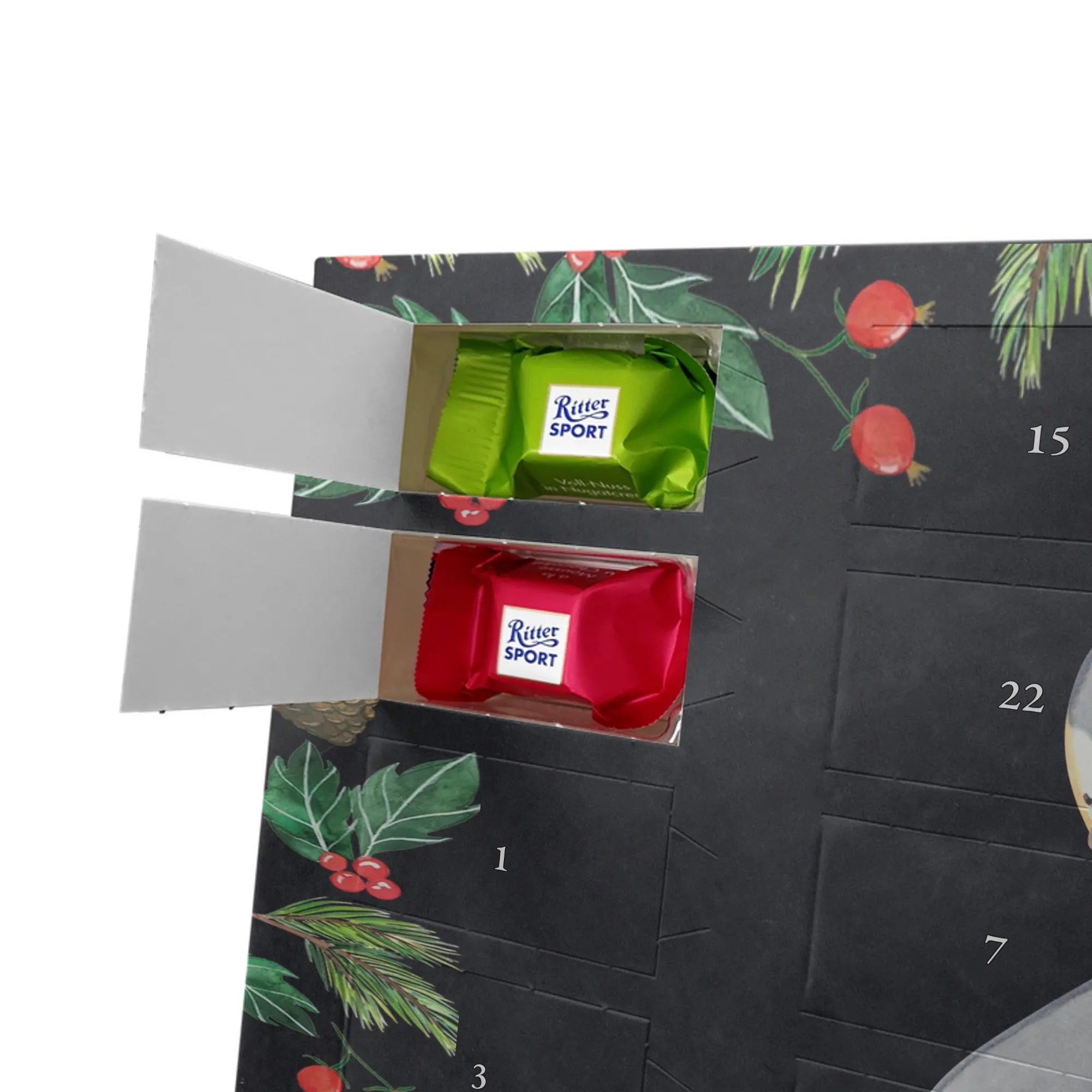 Schon unser Schoko-Adventskalender von Mr. & Mrs. Panda gesehen? Ein liebevoll gestalteter Kalender, bedruckt mit wunderschönen Motiven & Sprüchen, der deine Adventszeit versüßt. Der Kalender ist nicht personalisierbar, überzeugt aber durch brillante Druckqualität mit seidenmatter Oberflächenveredelung und bedruckte Seitenflächen für ein rundum schönes Erscheinungsbild. Maße: 325 mm x 225 mm x 27 mm. Du kannst ihn aufhängen oder aufstellen – ganz wie es dir gefällt. Gefüllt mit Ritter Sport Schokowürfeln in köstlichen Sorten: Mousse au Chocolat, Schoko Crisp, Voll-Nuss in Nougatcreme, Karamell Duo, Joghurt und Erdbeer-Joghurt. Bitte beachten: Es handelt sich um einen Kalender gefüllt mit Ritter Sport Schokolade, nicht um einen Kalender der Marke Ritter Sport. Ob als Geschenk oder für dich selbst – dieser Schoko-Adventskalender bringt täglich kleine Glücksmomente und süße Überraschungen.