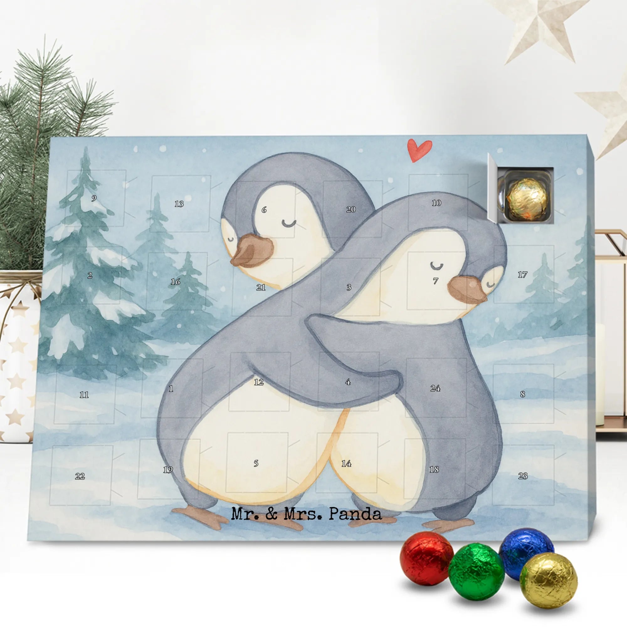 Jetzt Freude verschenken: Bestell deinen Schokoladen Adventskalender von Mr. & Mrs. Panda und zähle die Tage bis Weihnachten stilvoll und süß.
