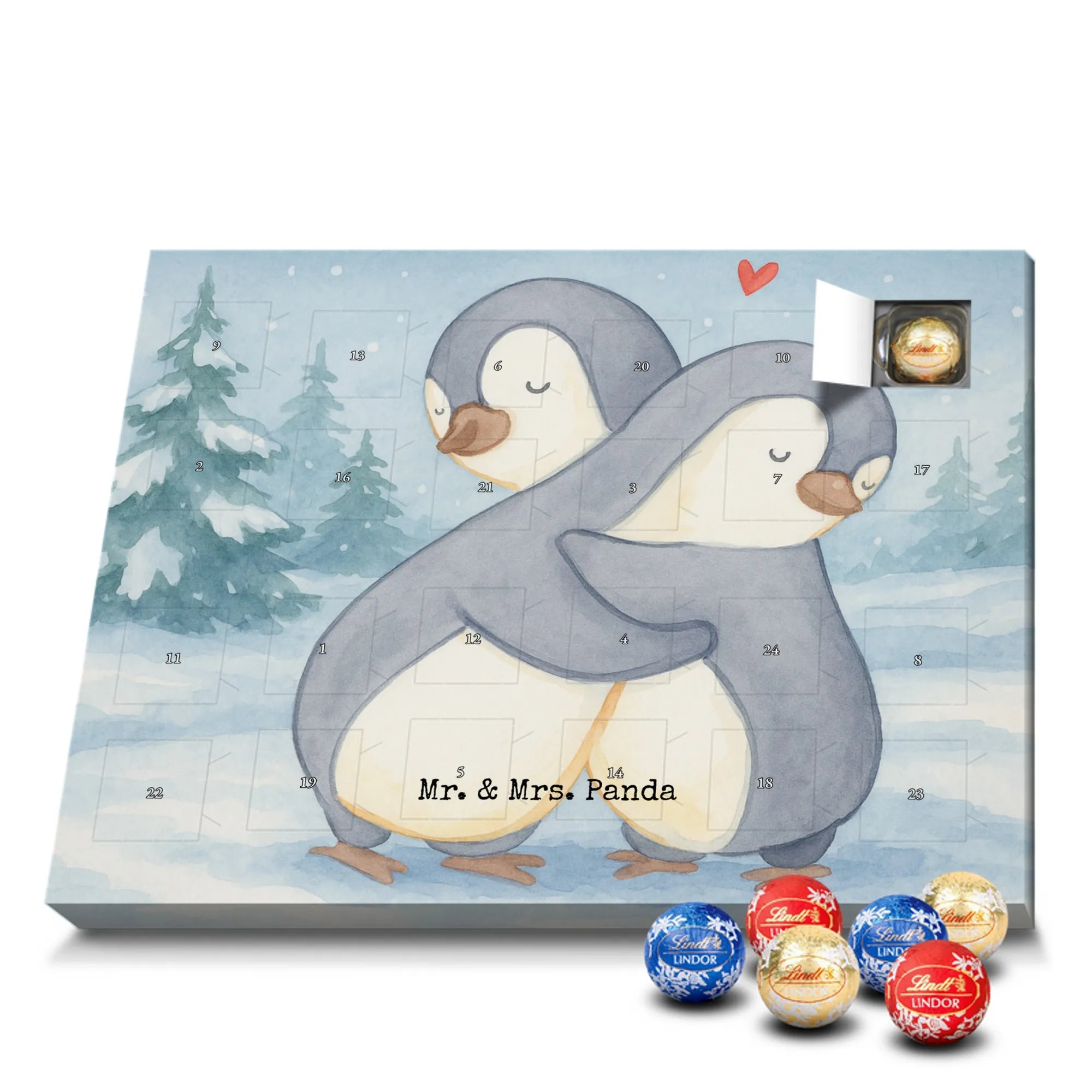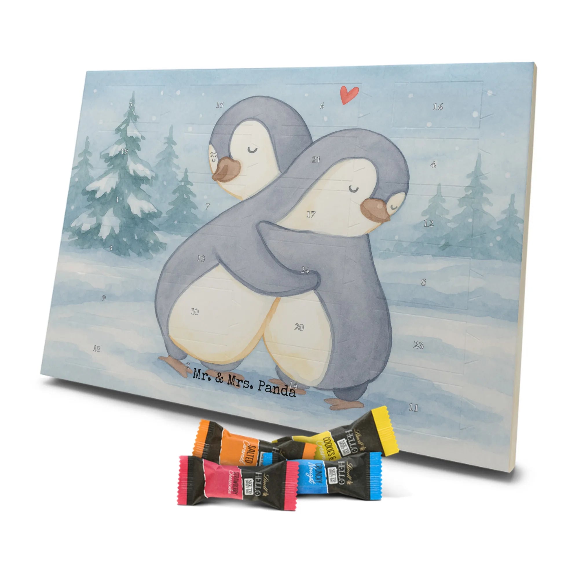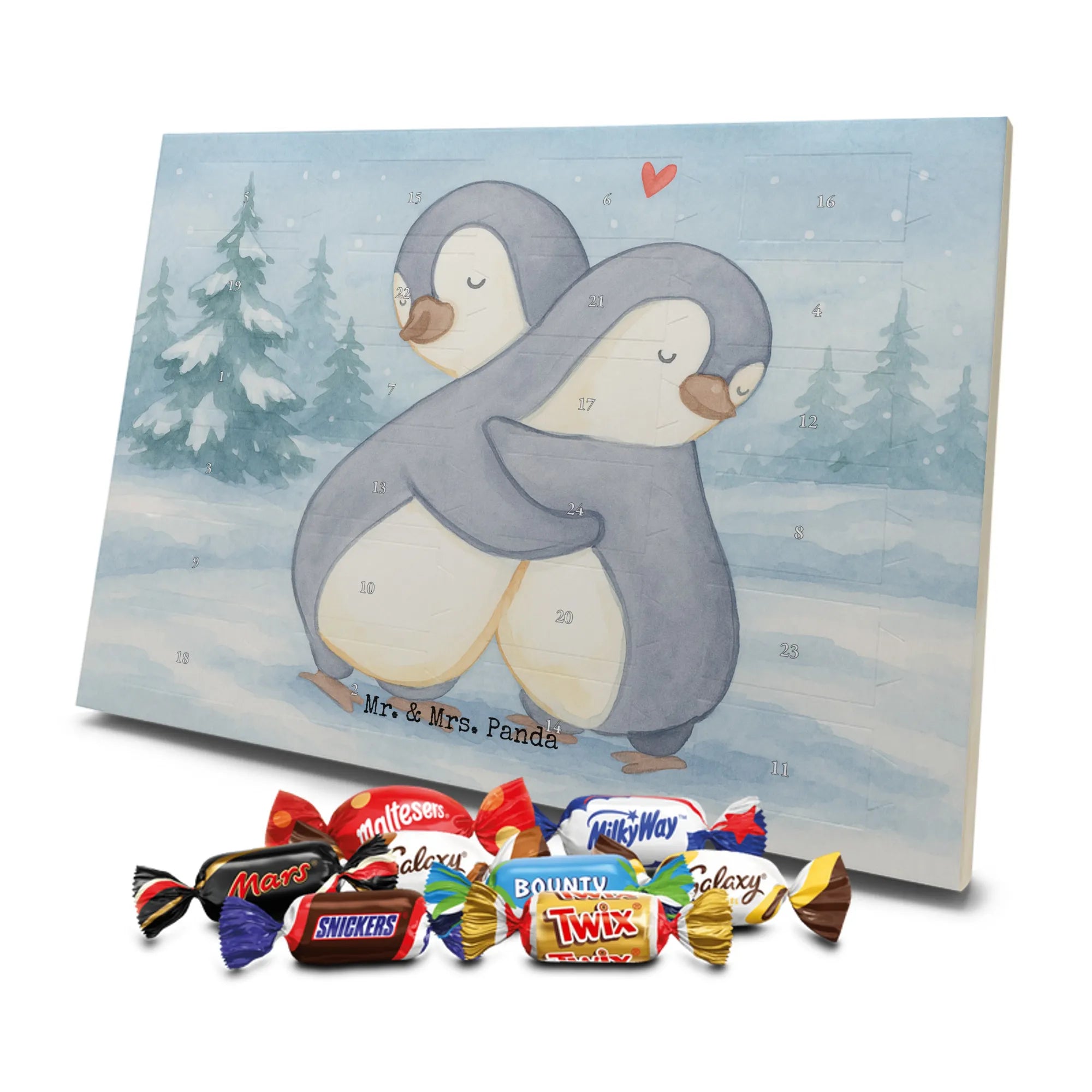 🐼 Schoko Adventskalender mit Mr. & Mrs. Panda Motiven, brillante Druckqualität, nicht personalisierbar.
