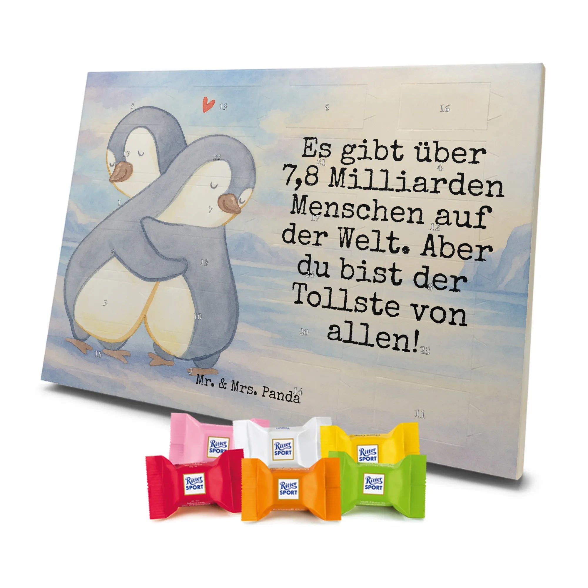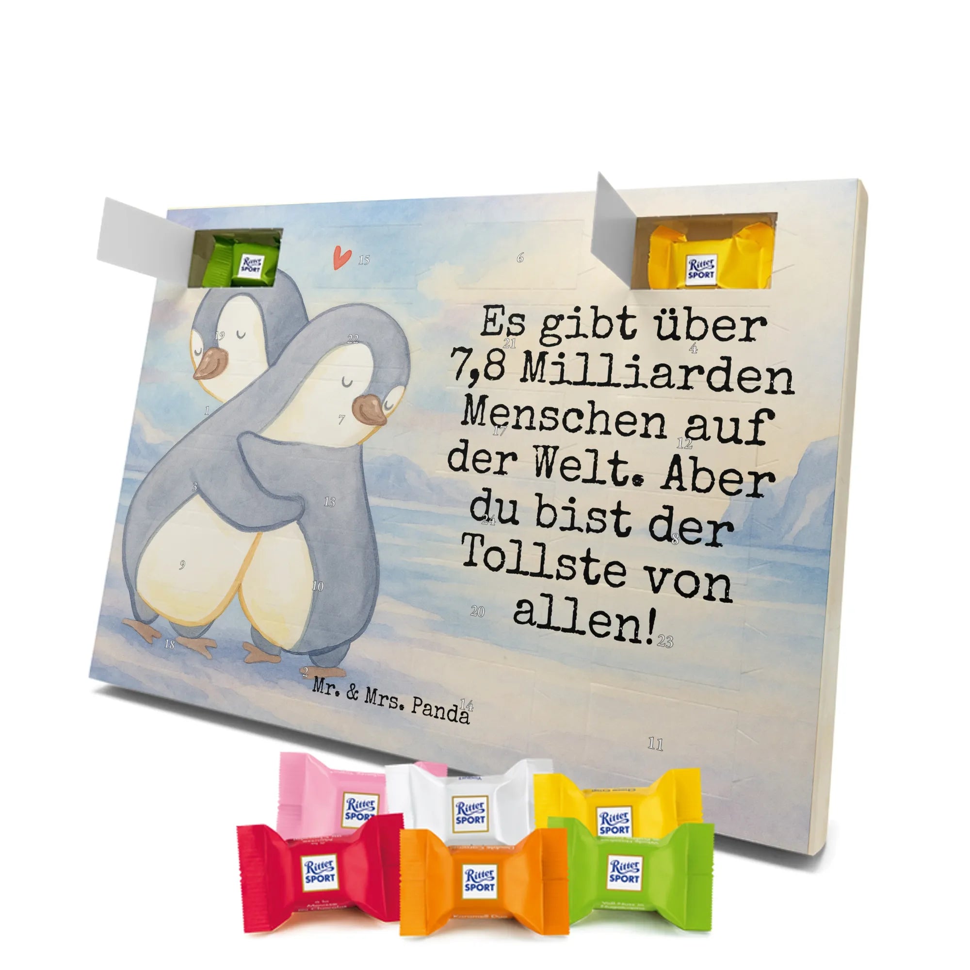 adventskalender süßigkeiten Pinguine Kuscheln Design - Ritter Sport - mit Spruch