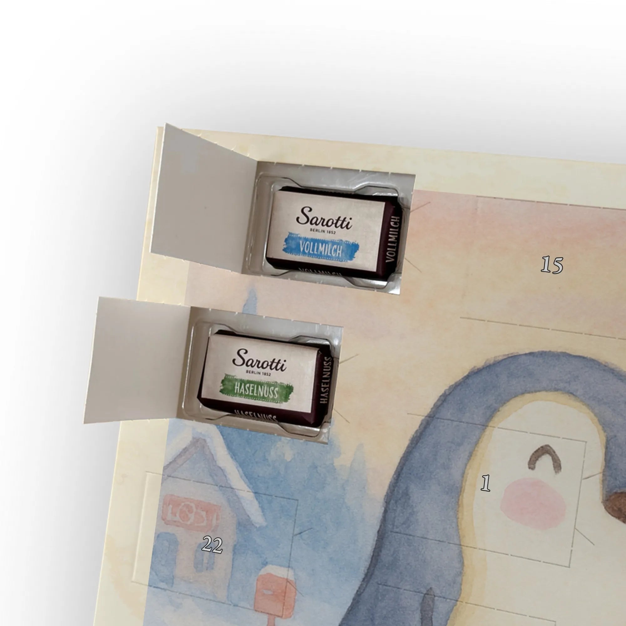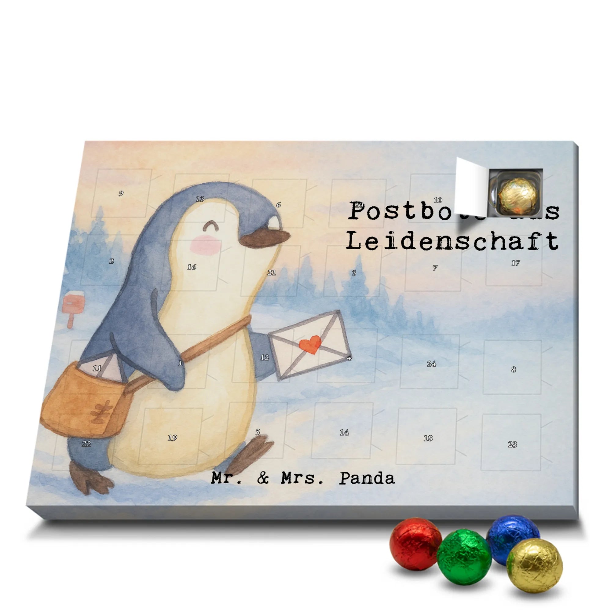 🐼 Schoko-Adventskalender: Liebevolles Design, seidenmatt, brillanter Druck – ein Hingucker.