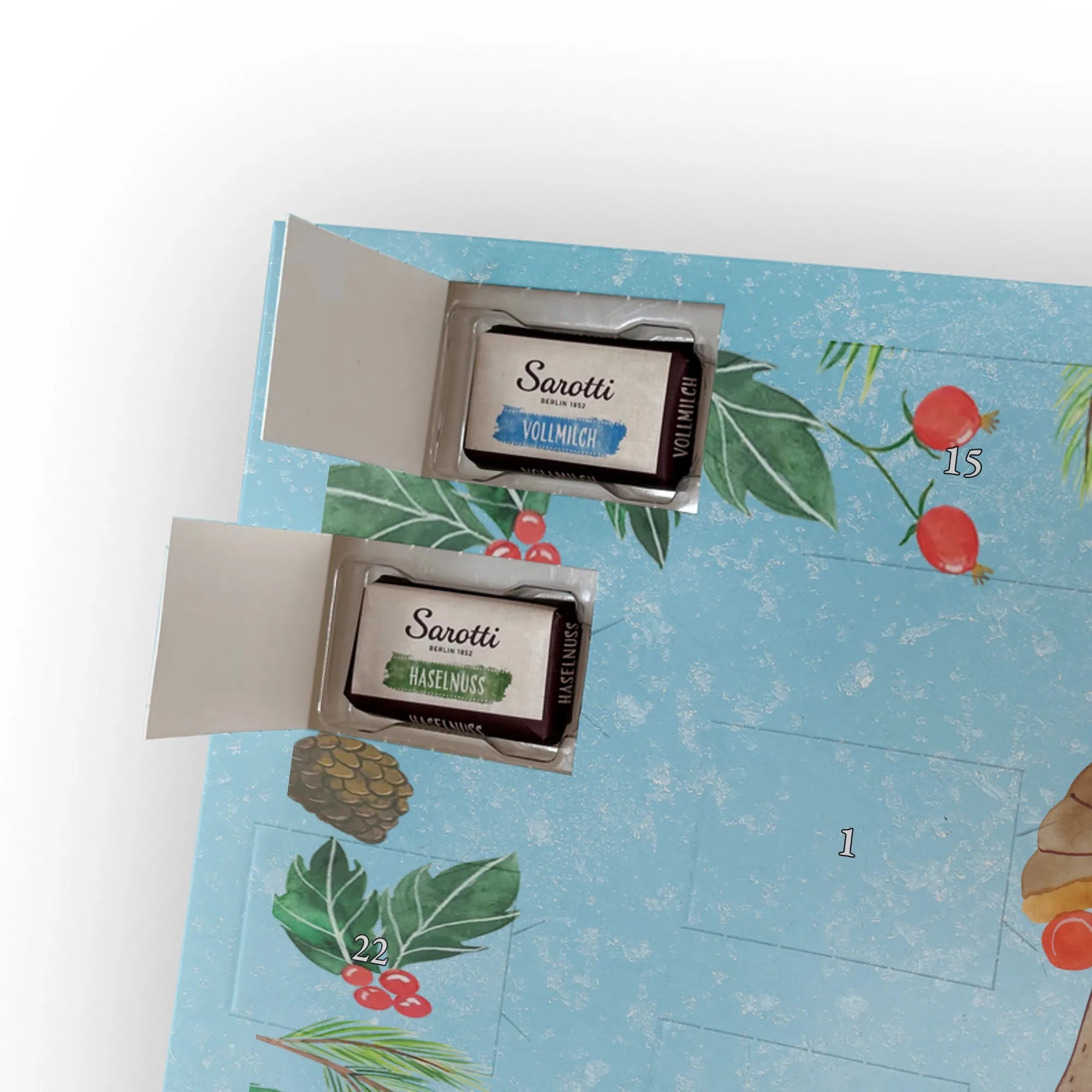 🐼 Adventskalender mit Schokolade, liebevoll bedruckt, seidenmatt veredelt.