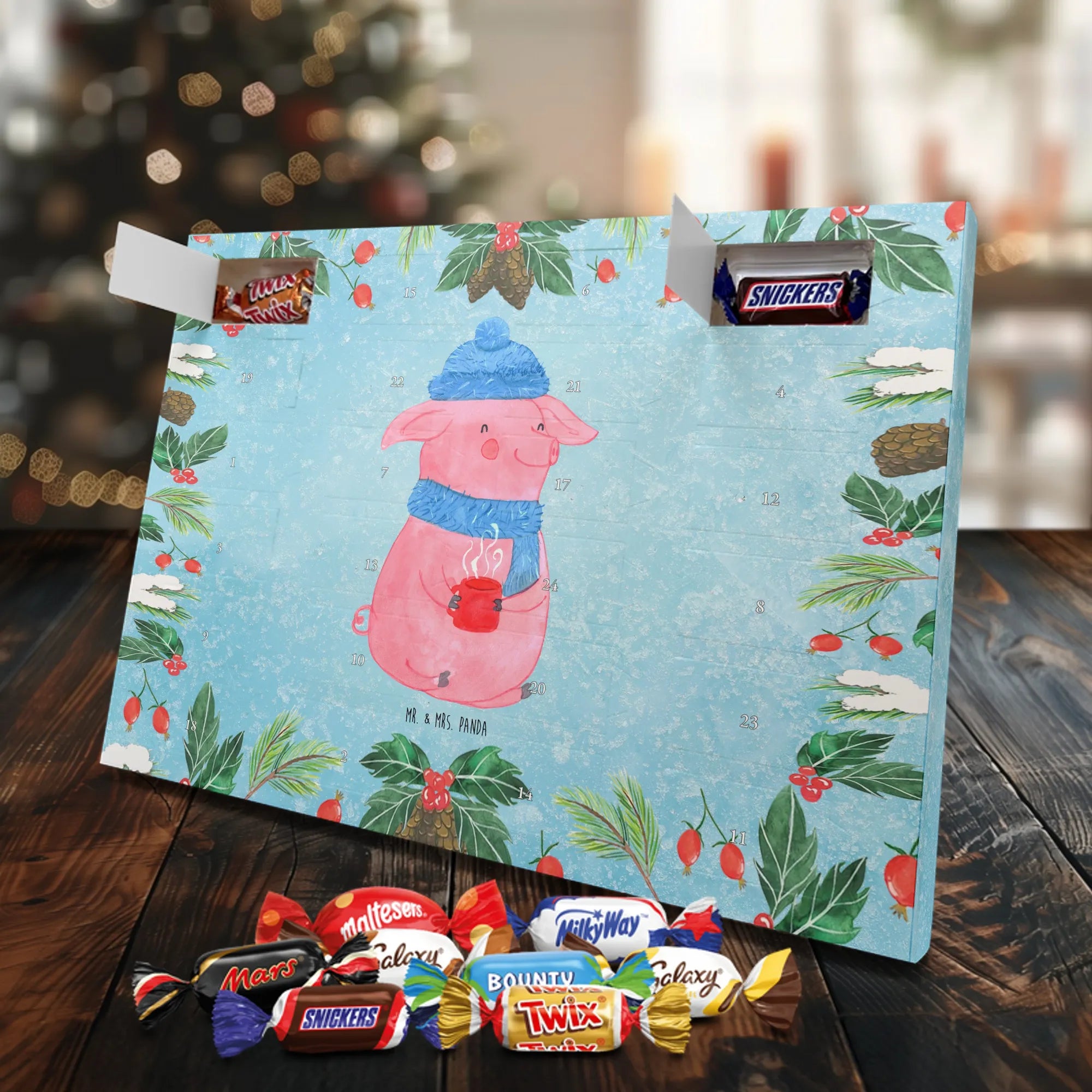 Mach die Adventszeit süßer: Entdecke unseren bedruckten Schokoladen Adventskalender von Mr. & Mrs. Panda und verschenke täglich Freude!