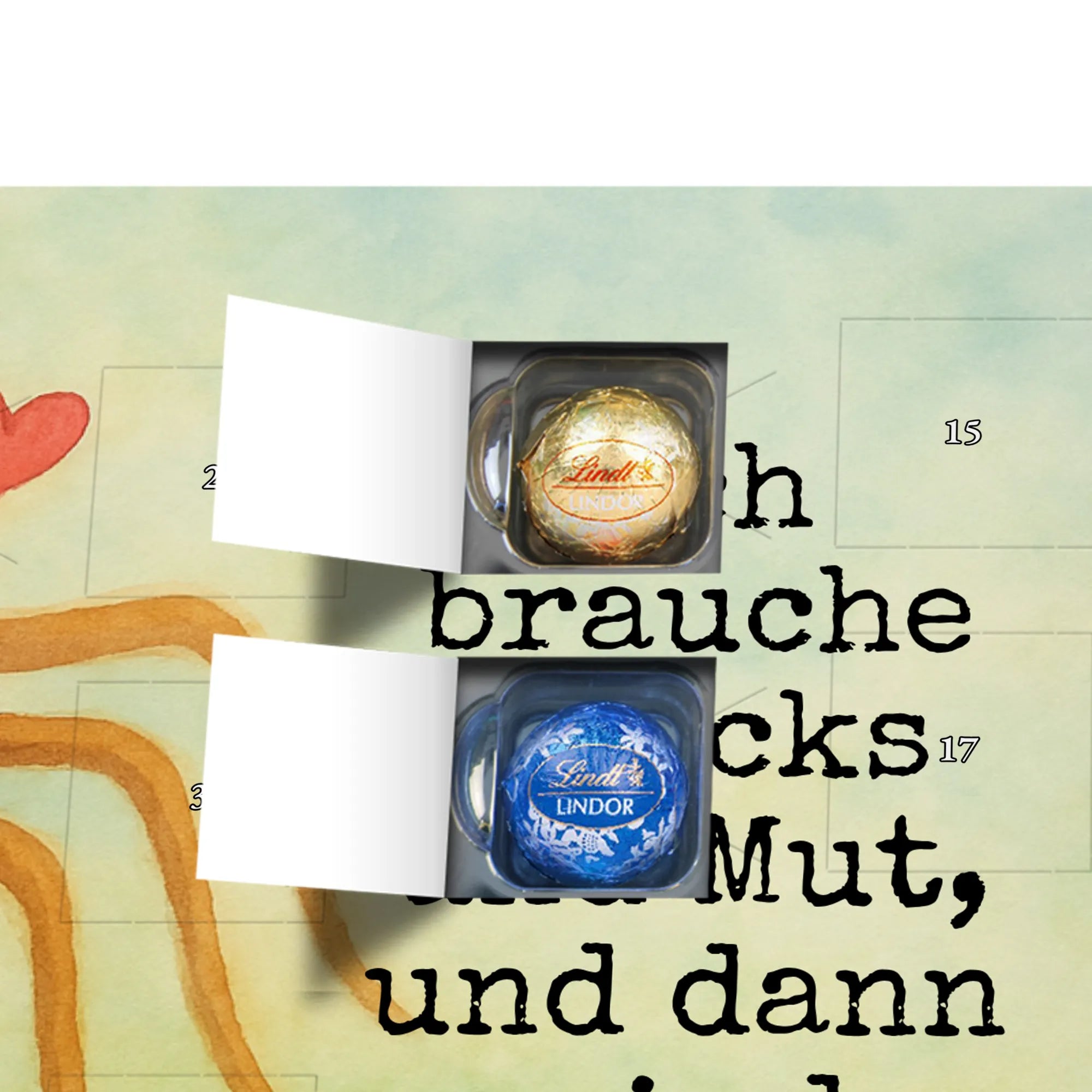 Unser liebevoller Schokoladen Adventskalender von Mr. & Mrs. Panda ist perfekt für alle, die sich eine fröhliche und süße Adventszeit wünschen. Aufwendig bedruckt mit unseren typischen Motiven & Sprüchen, nicht personalisierbar – dafür aber unglaublich hübsch anzusehen. Die brillante Druckqualität mit seidenmatter Oberflächenveredelung verleiht dem Kalender ein edles Aussehen, und die bedruckten Seitenflächen runden das Design ab. Maße: 233 mm x 178 mm x 24 mm. Besonderheit: kann aufgehängt oder aufgestellt werden, so bleibt er flexibel für deinen Deko-Stil. Gefüllt mit Lindt Lindor: 24 einzeln verpackte Markenschokoladen Kugeln in drei leckeren Sorten – Vollmilch, Feinherb und Weiße Schokolade – sorgen für tägliche Genussmomente. Zutaten: Zucker, pflanzliches Fett (Kokosnuss, Palmkern), Kakaobutter, Vollmilchpulver, Kakaomasse, Milchzucker, Magermilchpulver, Butterreinfett, Emulgator (Sojalecithin), Gerstenmalzextrakt, Aromen. Besondere Hinweise: Kann Haselnüsse und Mandeln enthalten. Ein tolles Geschenk oder eine hübsche Dekoration – unser Schokoladen Adventskalender macht die Wartezeit bis Weihnachten noch schöner!