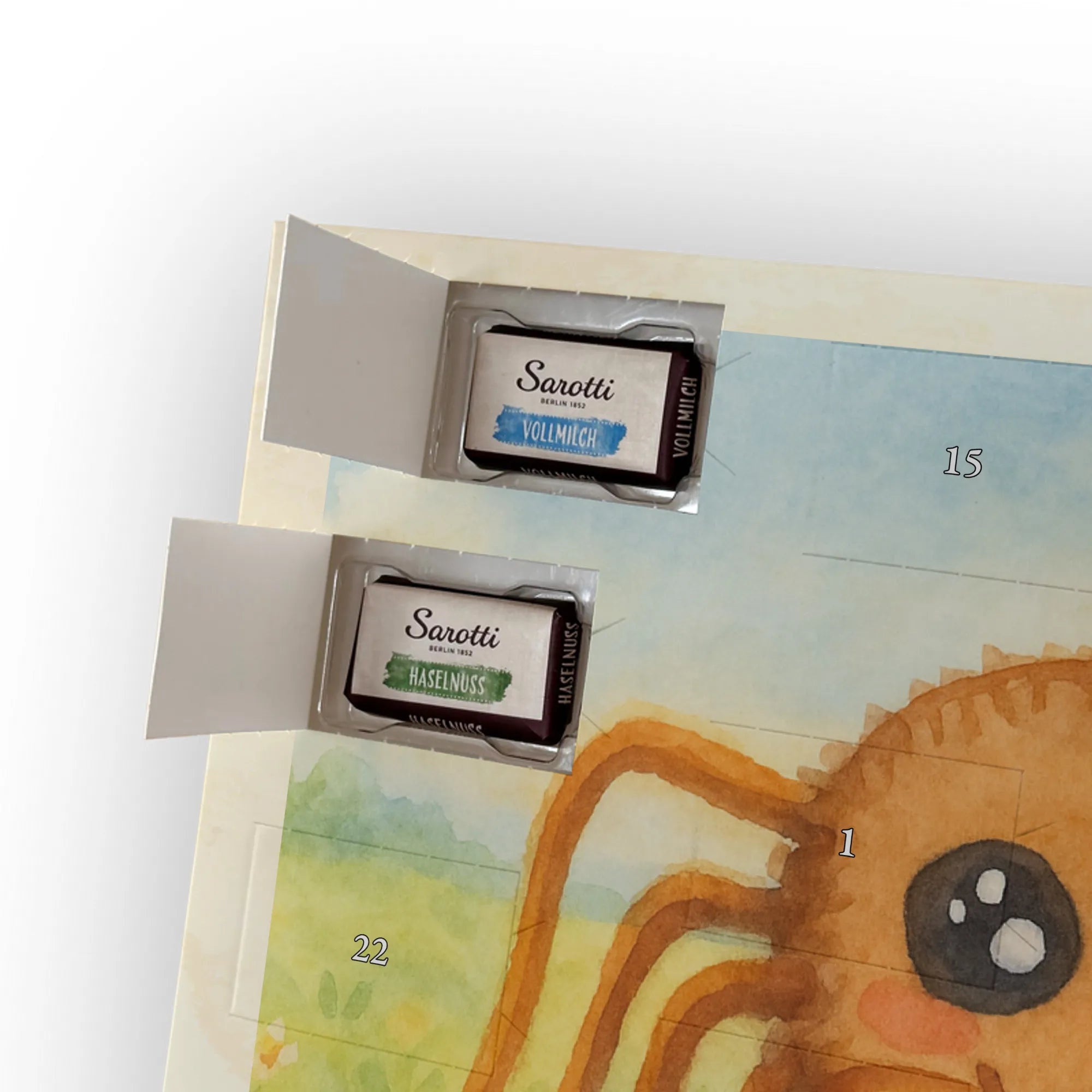 🐼 Adventskalender mit Schokolade, liebevoll bedruckt, seidenmatt veredelt.