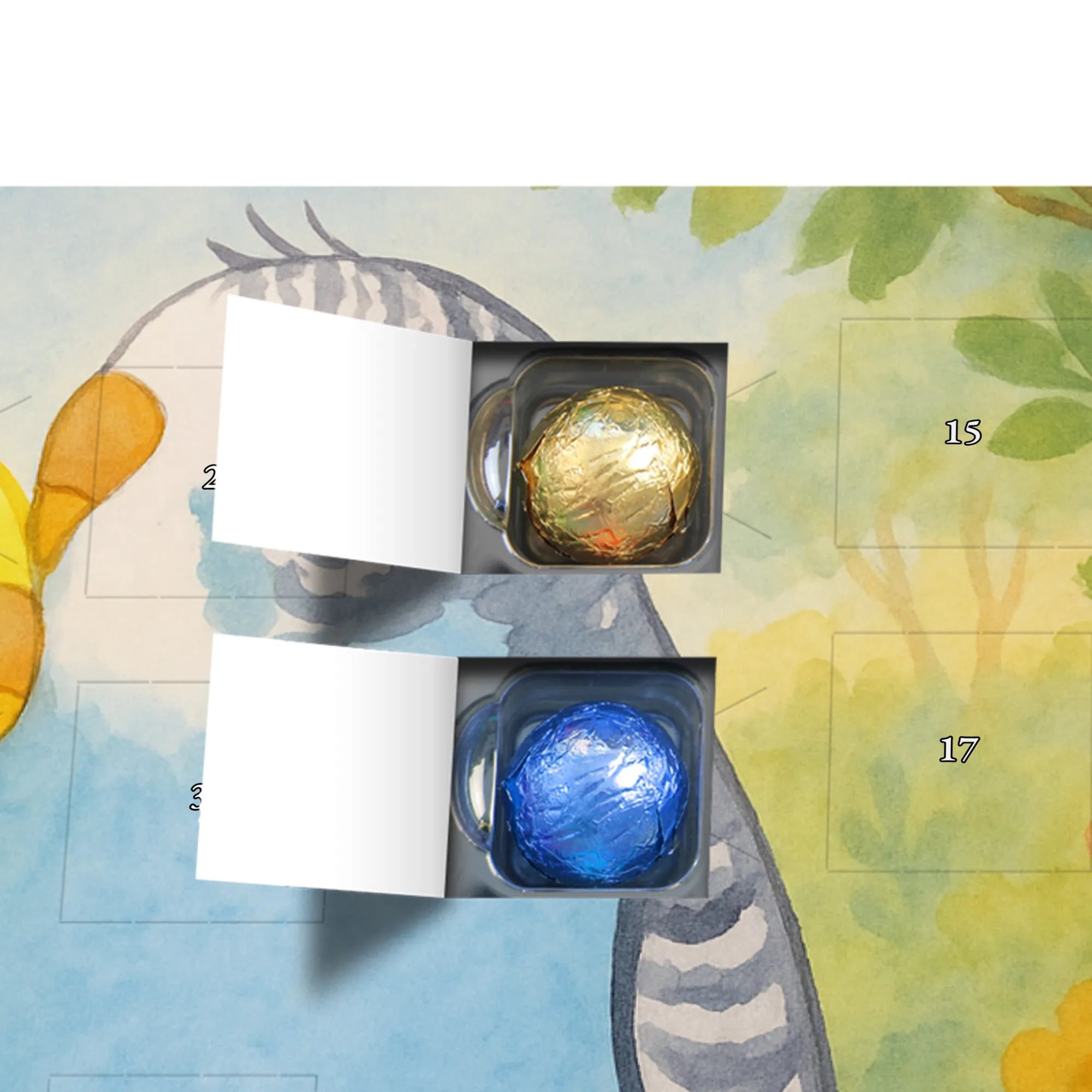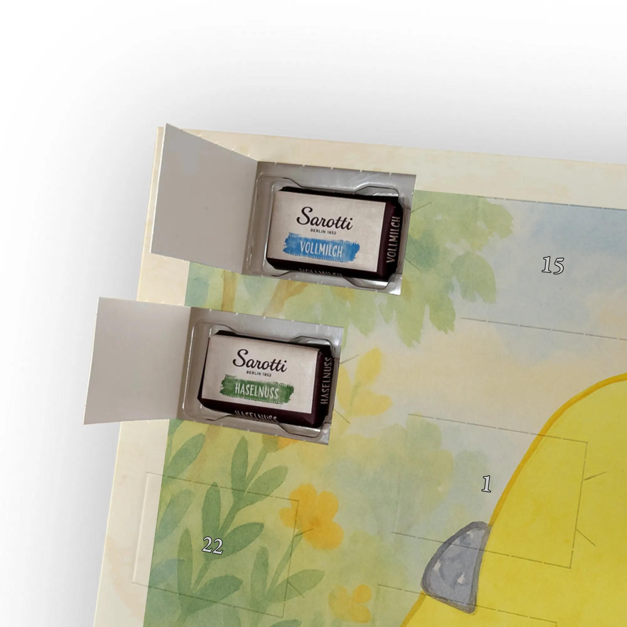 🐼 SCHOKOLADEN-ADVENTSKALENDER: Edler, seidenmatter Druck mit liebevollen Illustrationen.