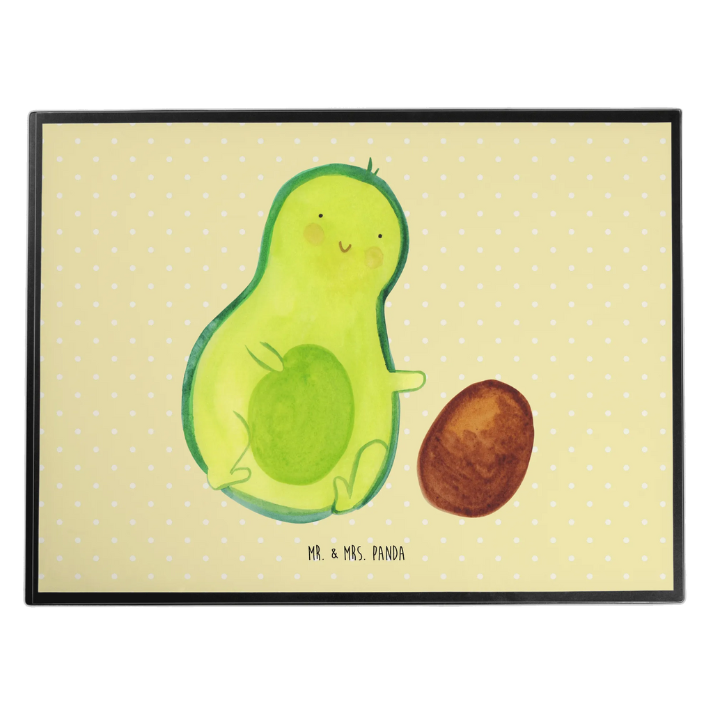 Schreibtischunterlage Avocado Kern rollt - mit Spruch - Gelb Pastell