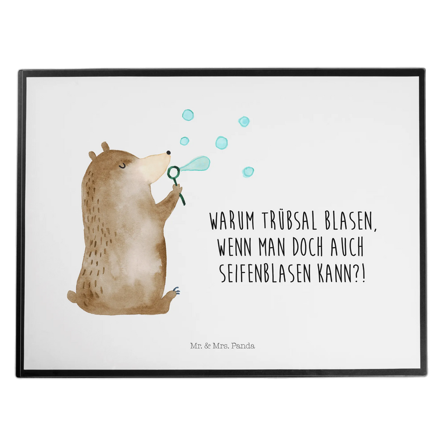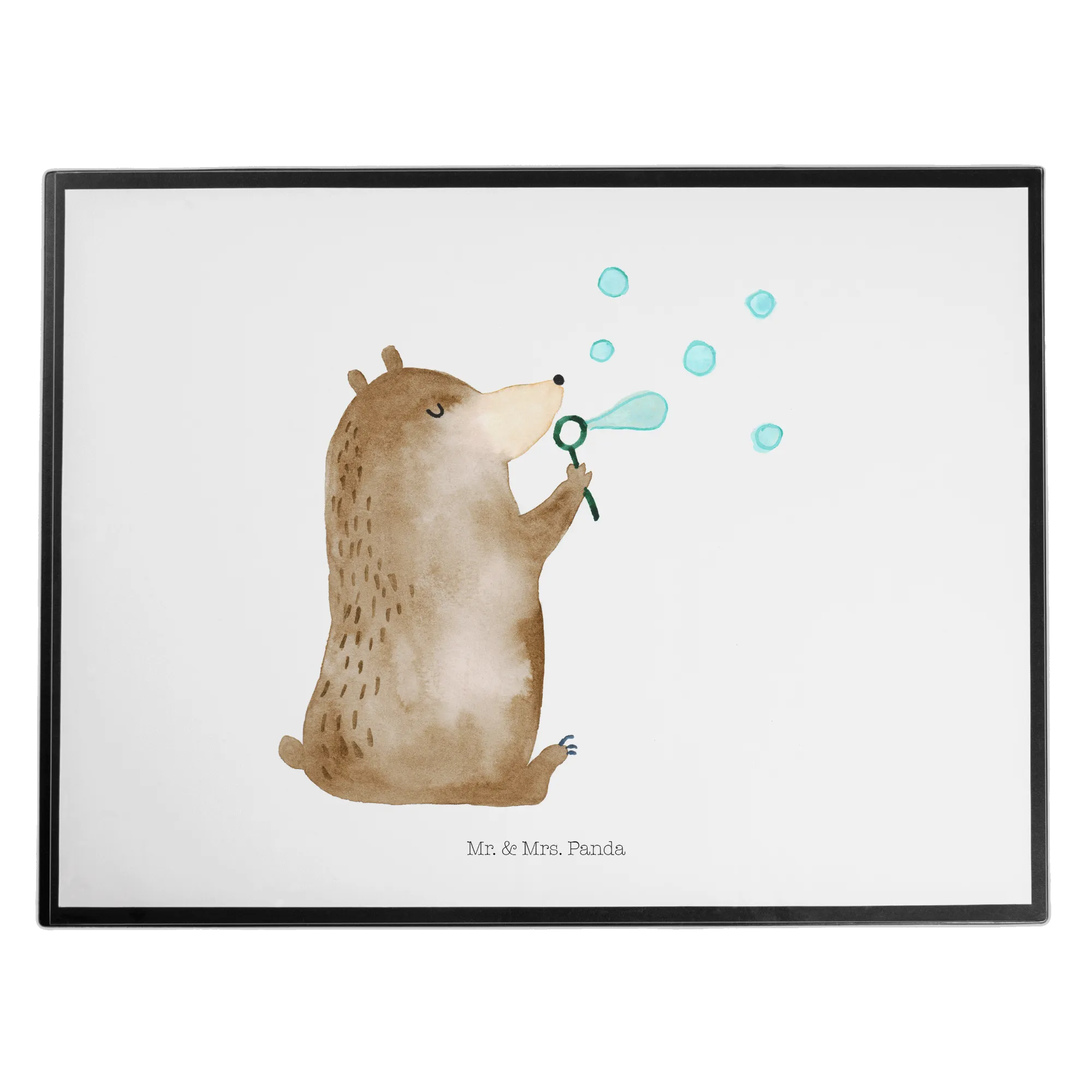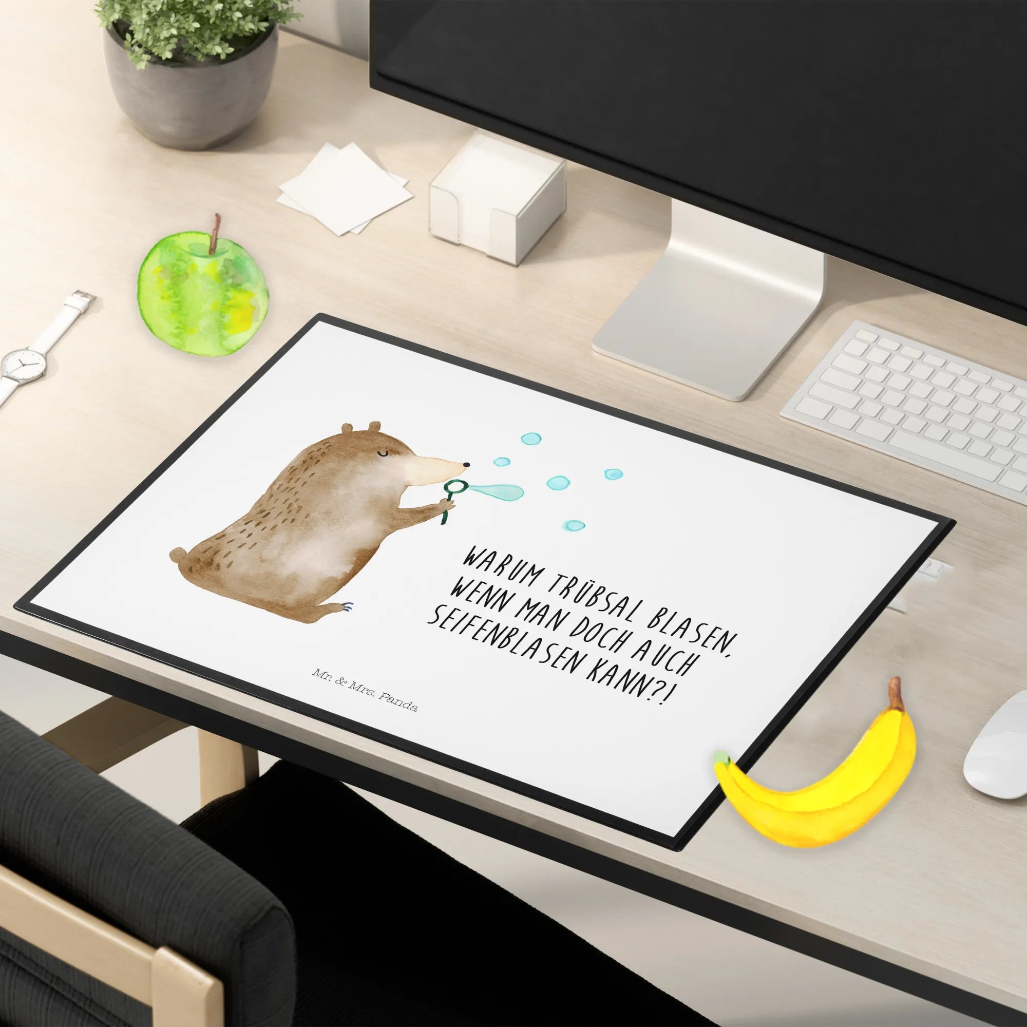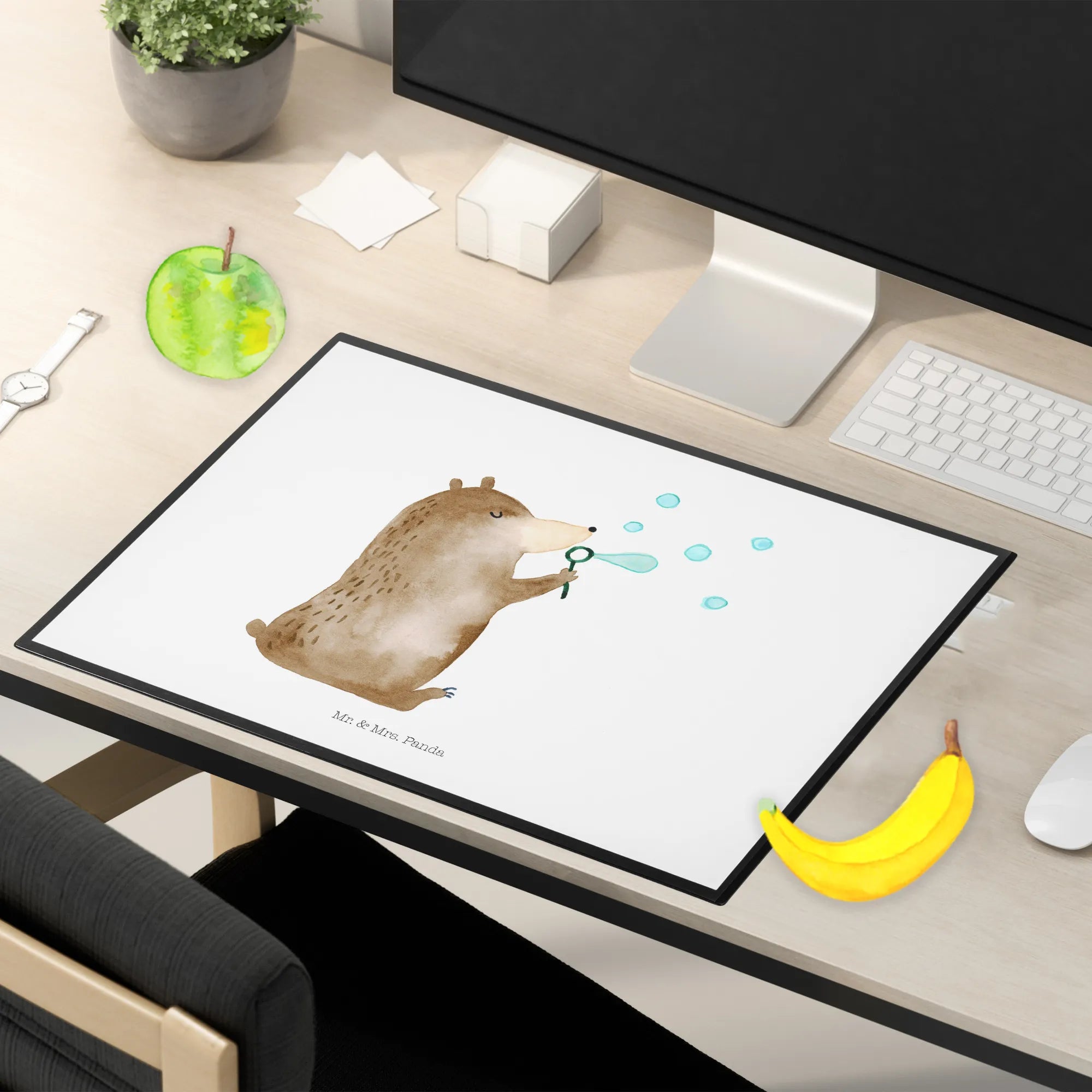 Schreibtischunterlage Bär Seifenblasen - mit Spruch - Weiß
