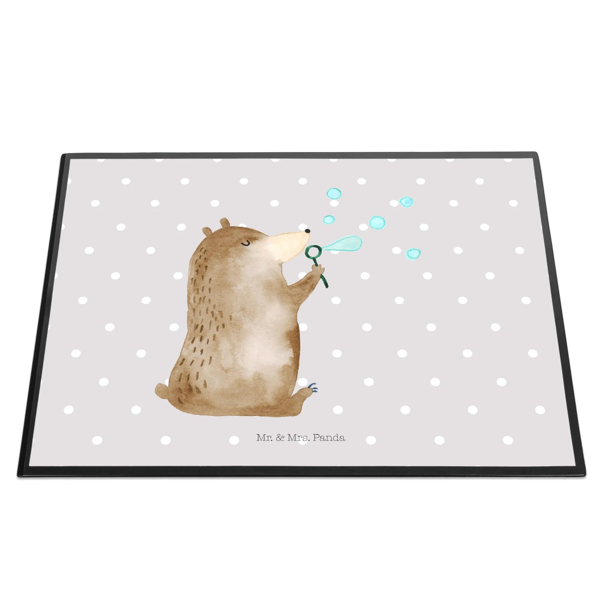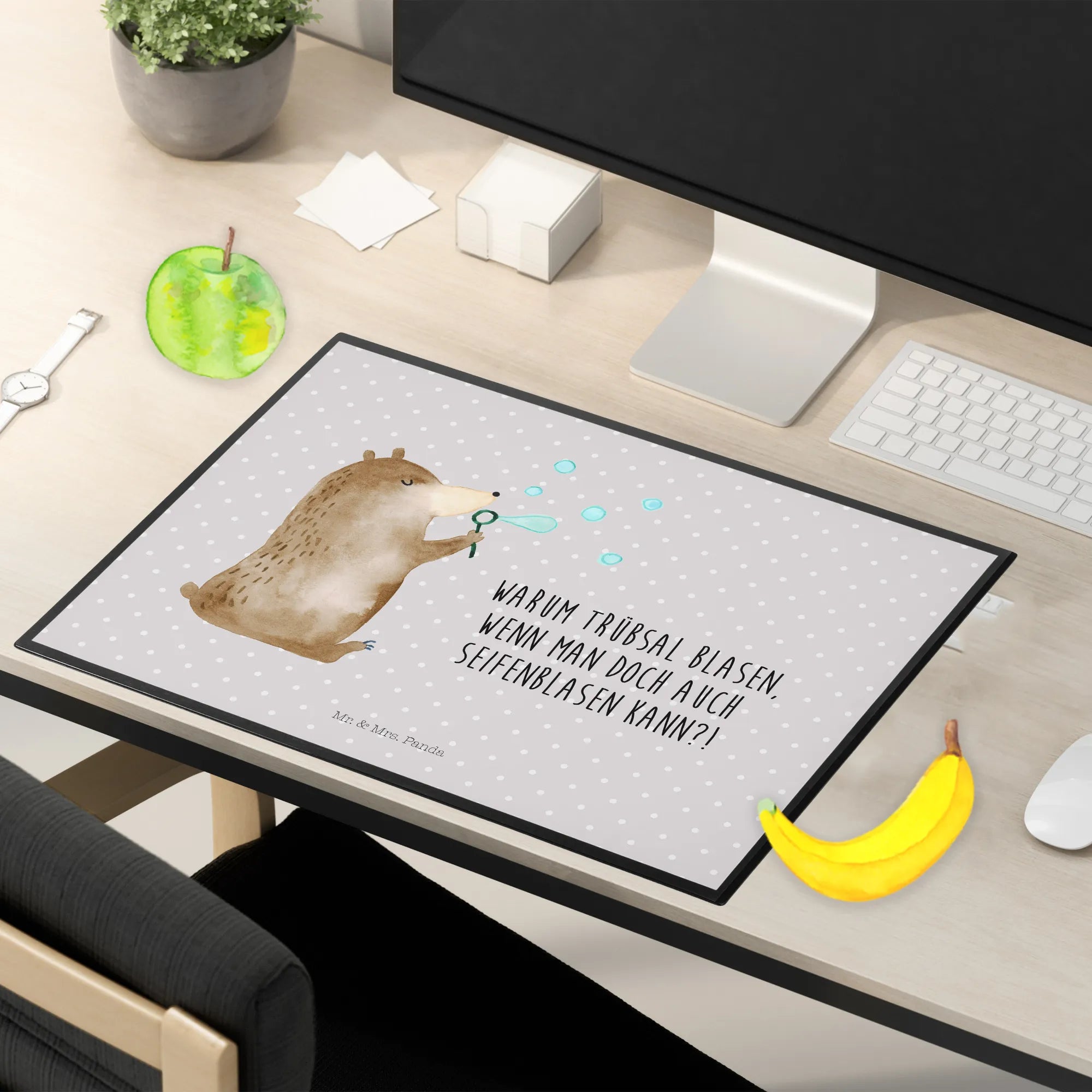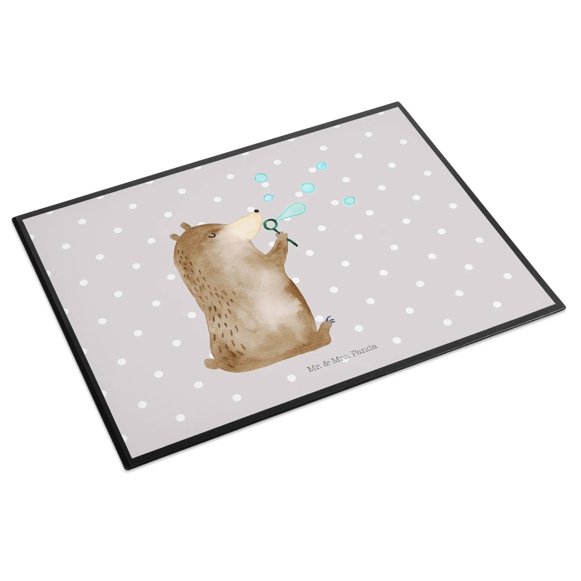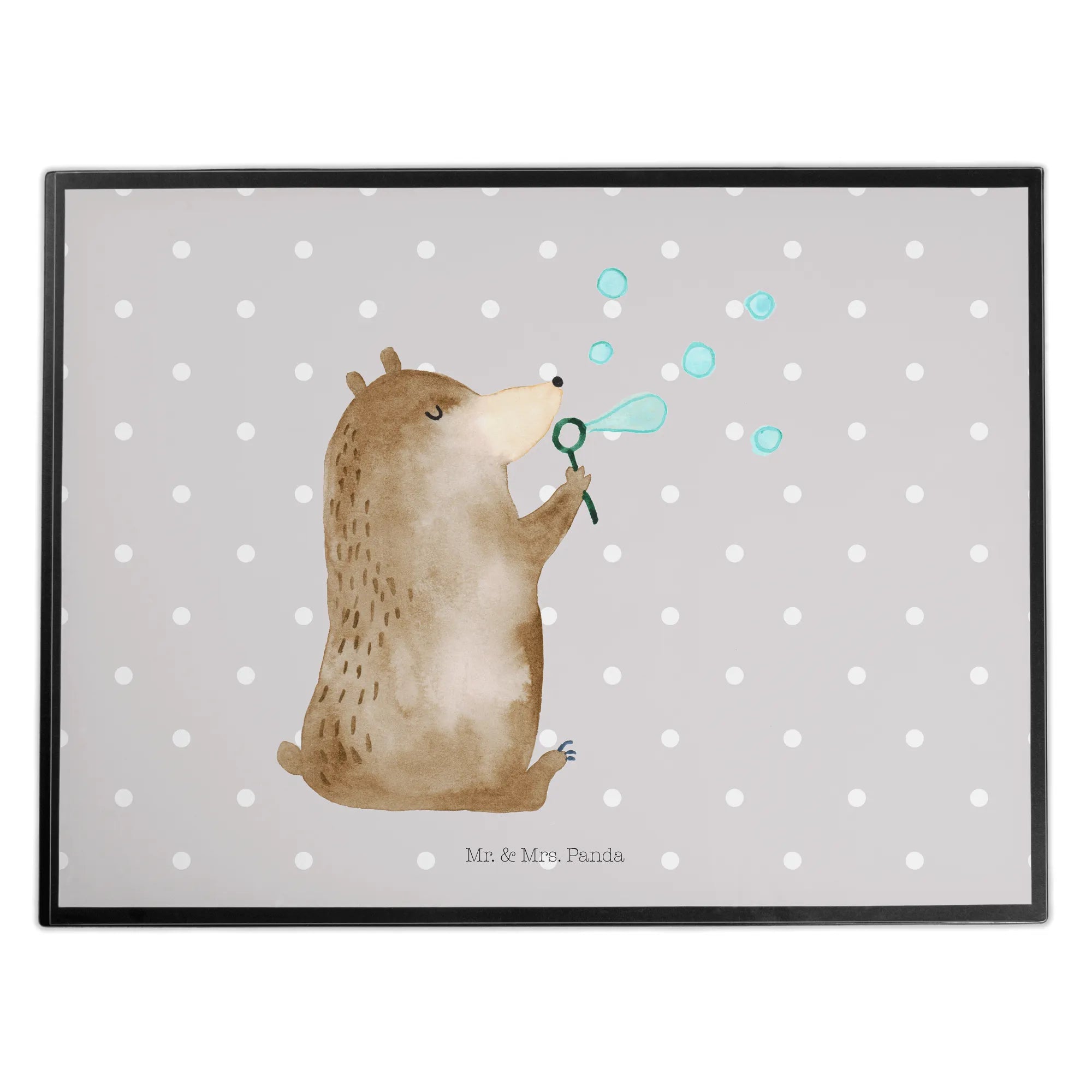 Schreibtischunterlage Bär Seifenblasen - mit Spruch - Weiß