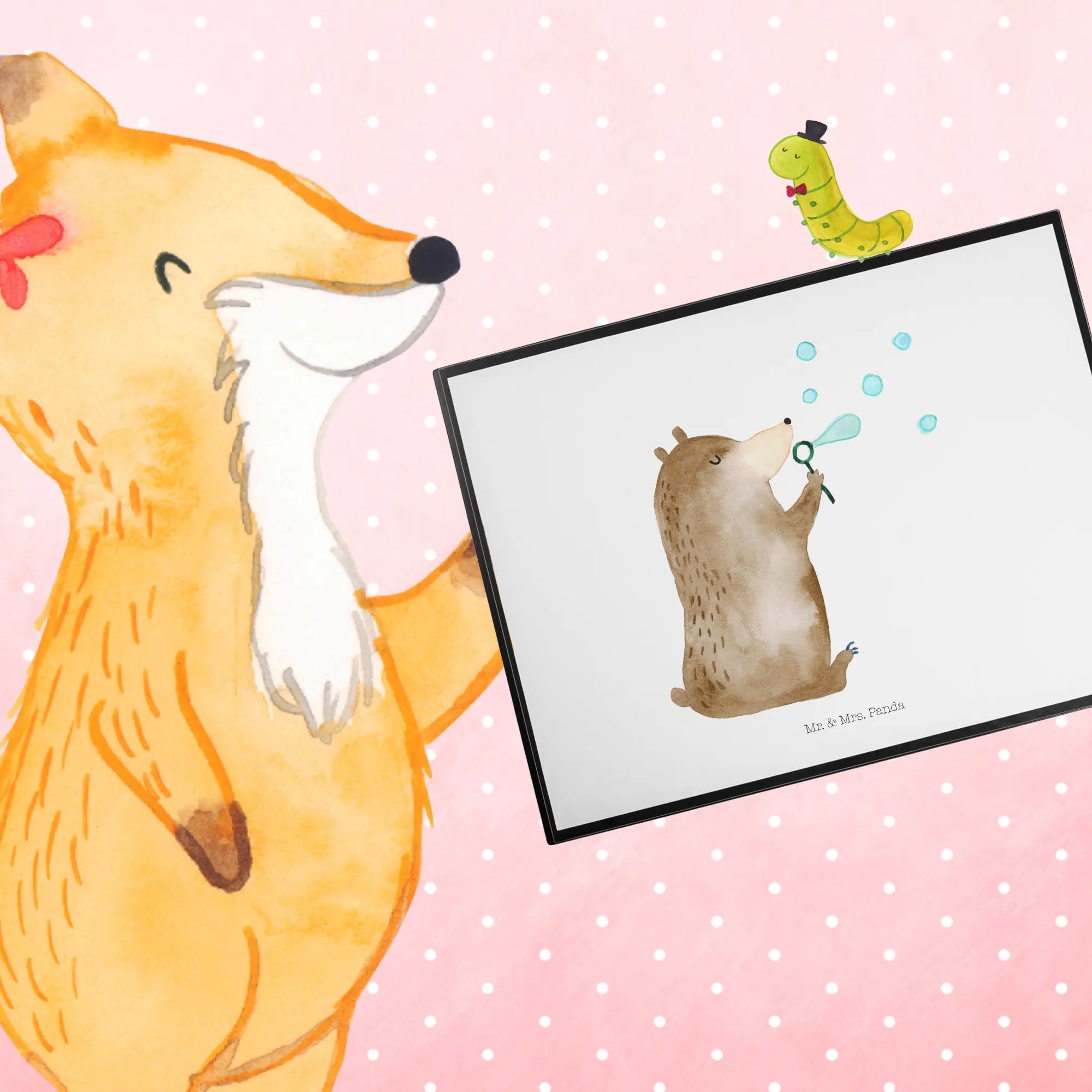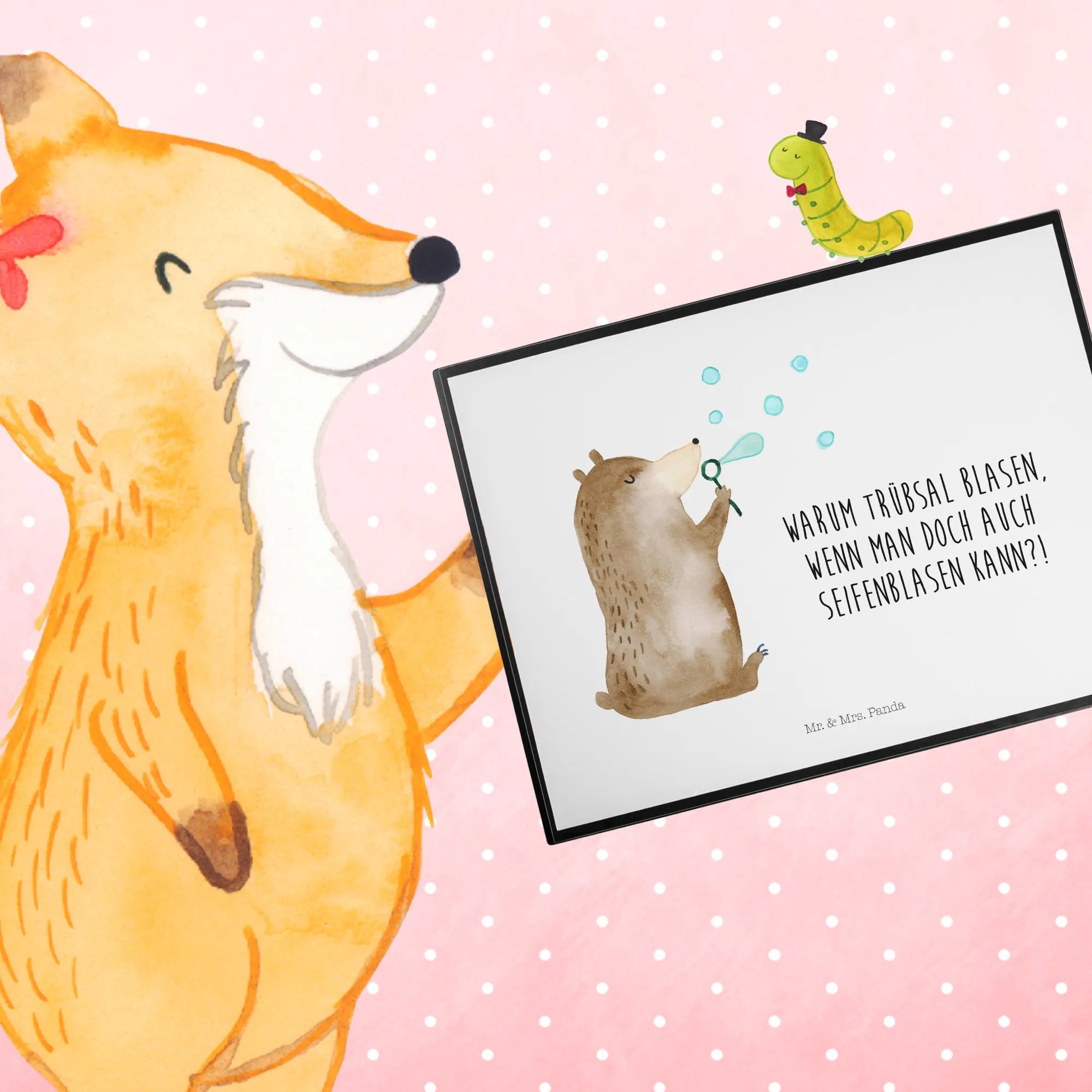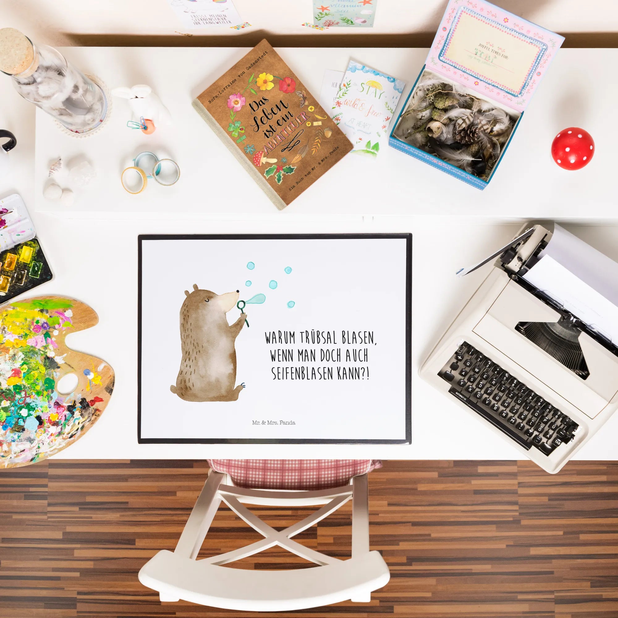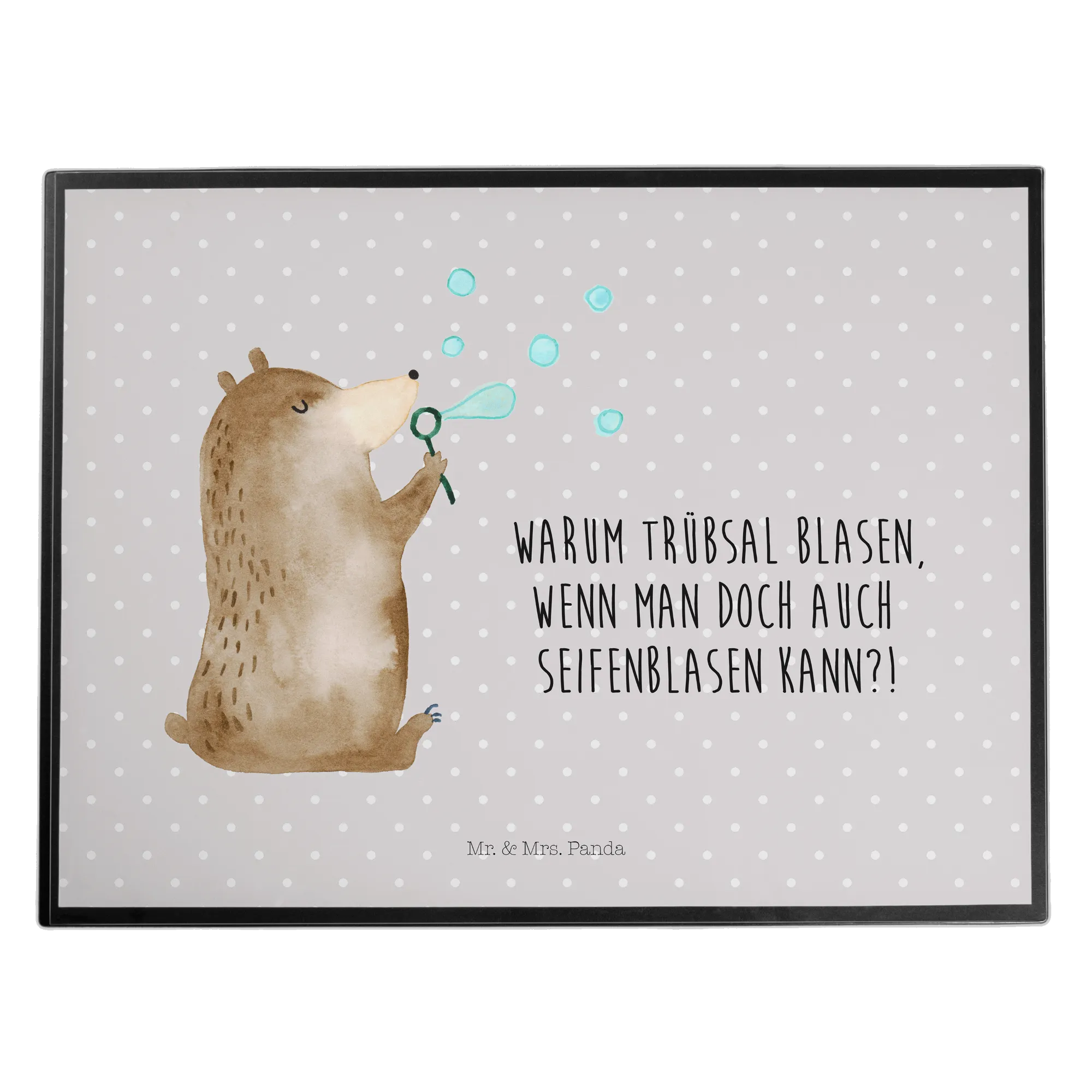 Schreibtischunterlage Bär Seifenblasen - mit Spruch - Weiß