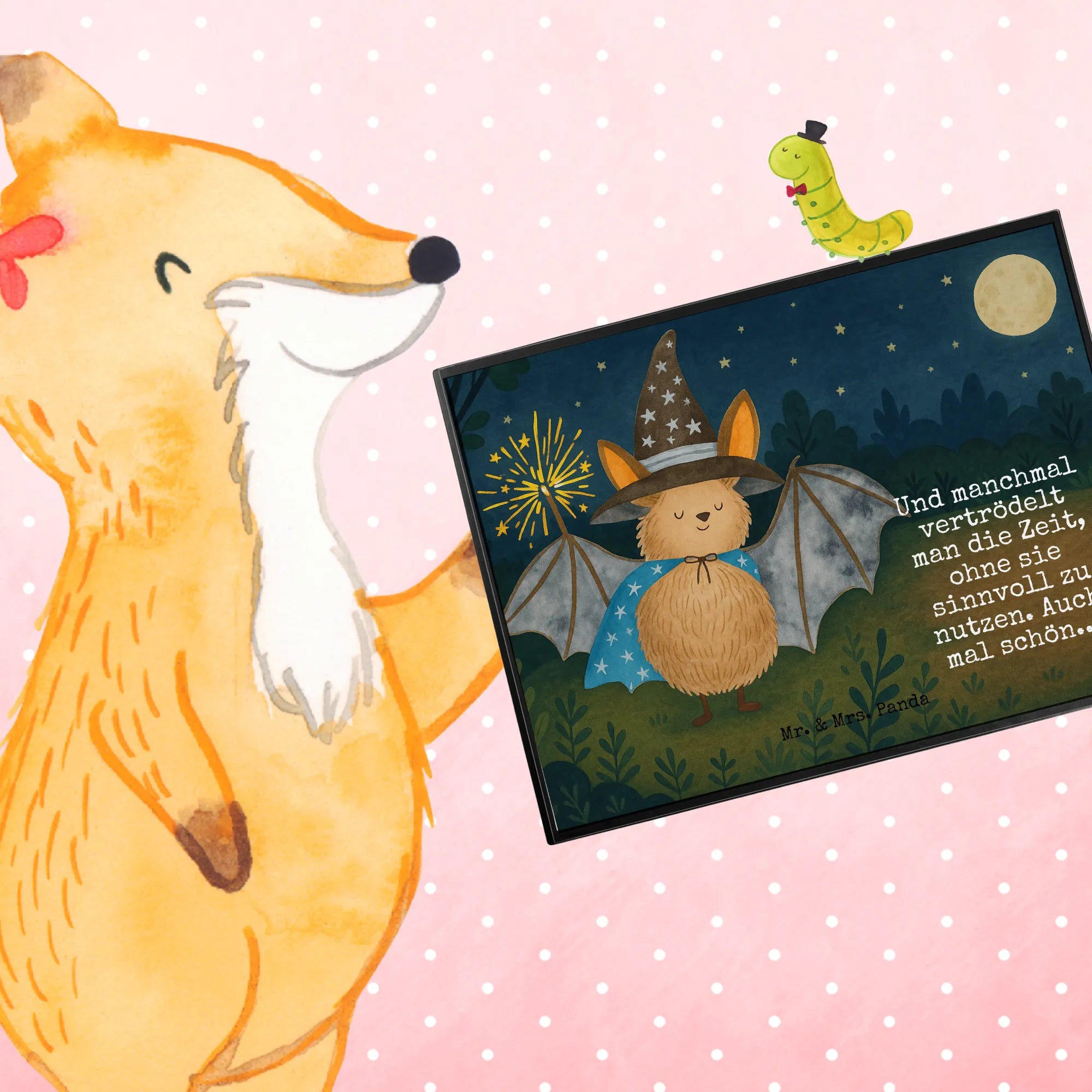 In der Small World Kollektion hat Mrs. Panda dieses zauberhafte Motiv mit viel Liebe und Aquarellfarben zum Leben erweckt. Die Fledermaus sitzt gemütlich auf einem Ast, bereit, den grauen Alltag mit ein wenig Magie zu vertreiben. 🪄 Der beigefügte Spruch 'Und manchmal vertrödelt man die Zeit, ohne sie sinnvoll zu nutzen. Auch mal schön...' erinnert dich sanft daran, dass Produktivität nicht alles im Leben ist. Manchmal ist das bewusste Nichtstun, das Träumen und das einfache Genießen des Augenblicks genau das, was wir brauchen.