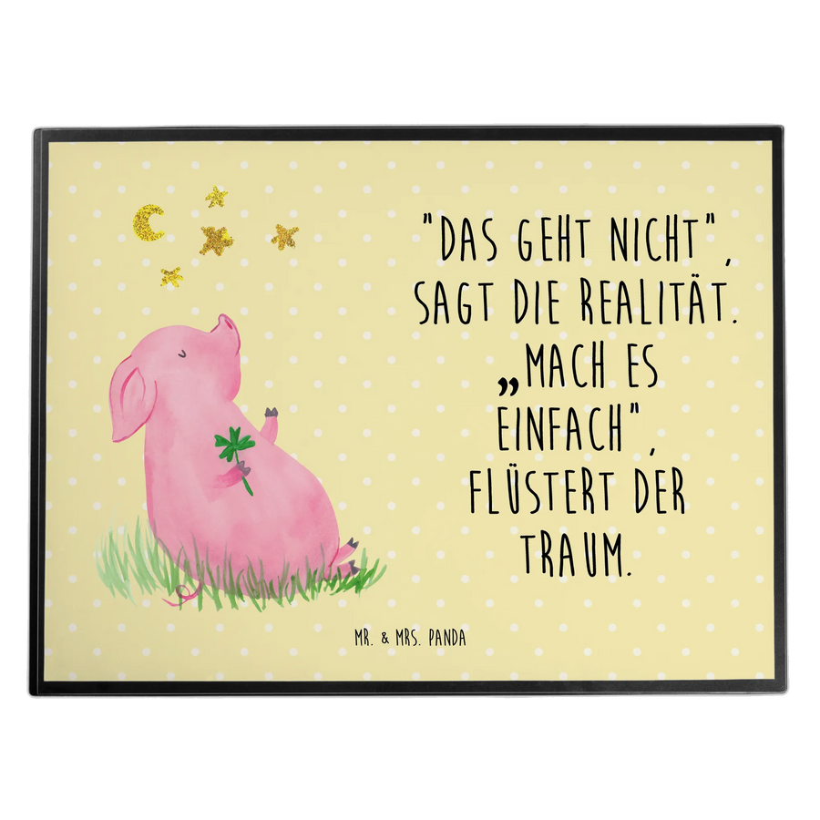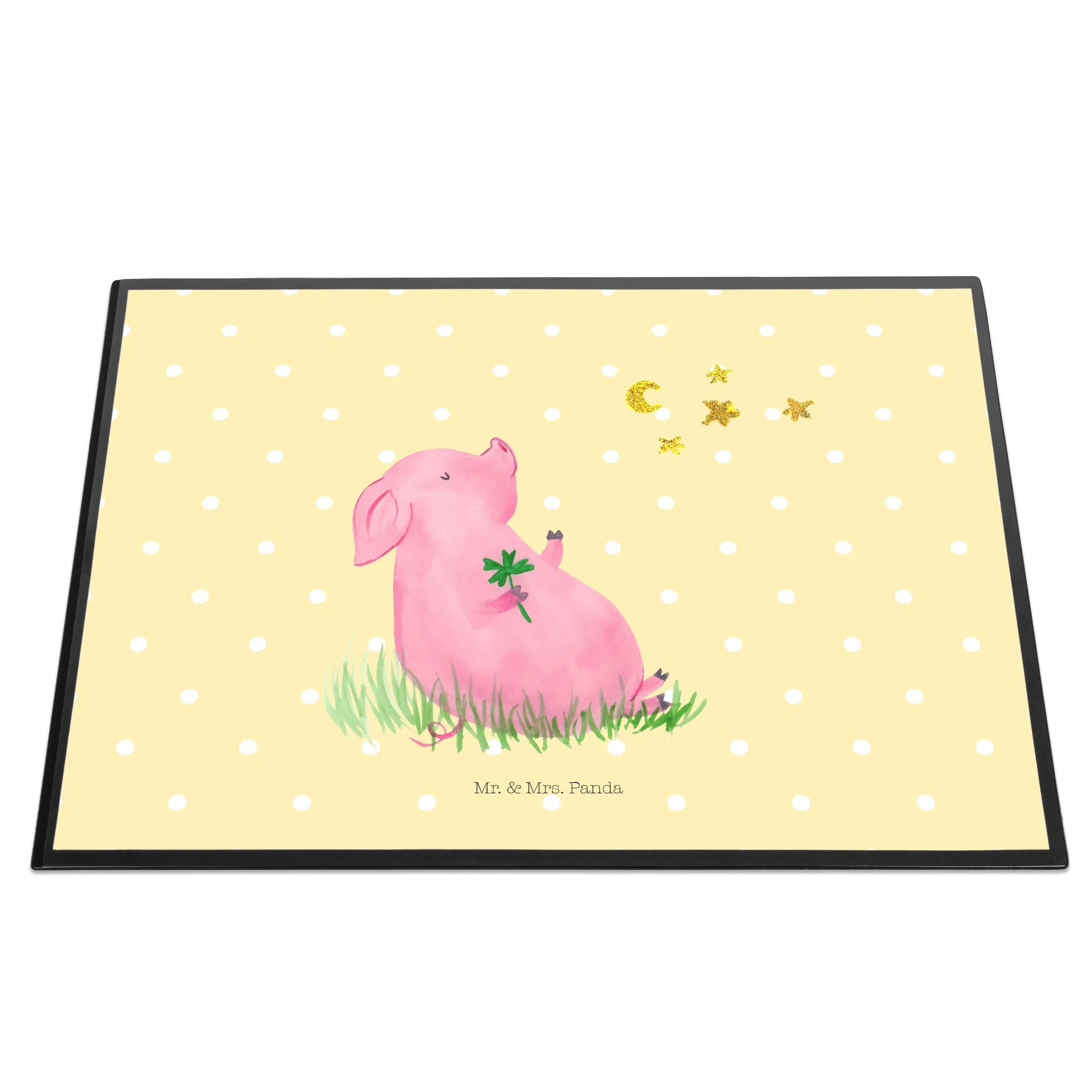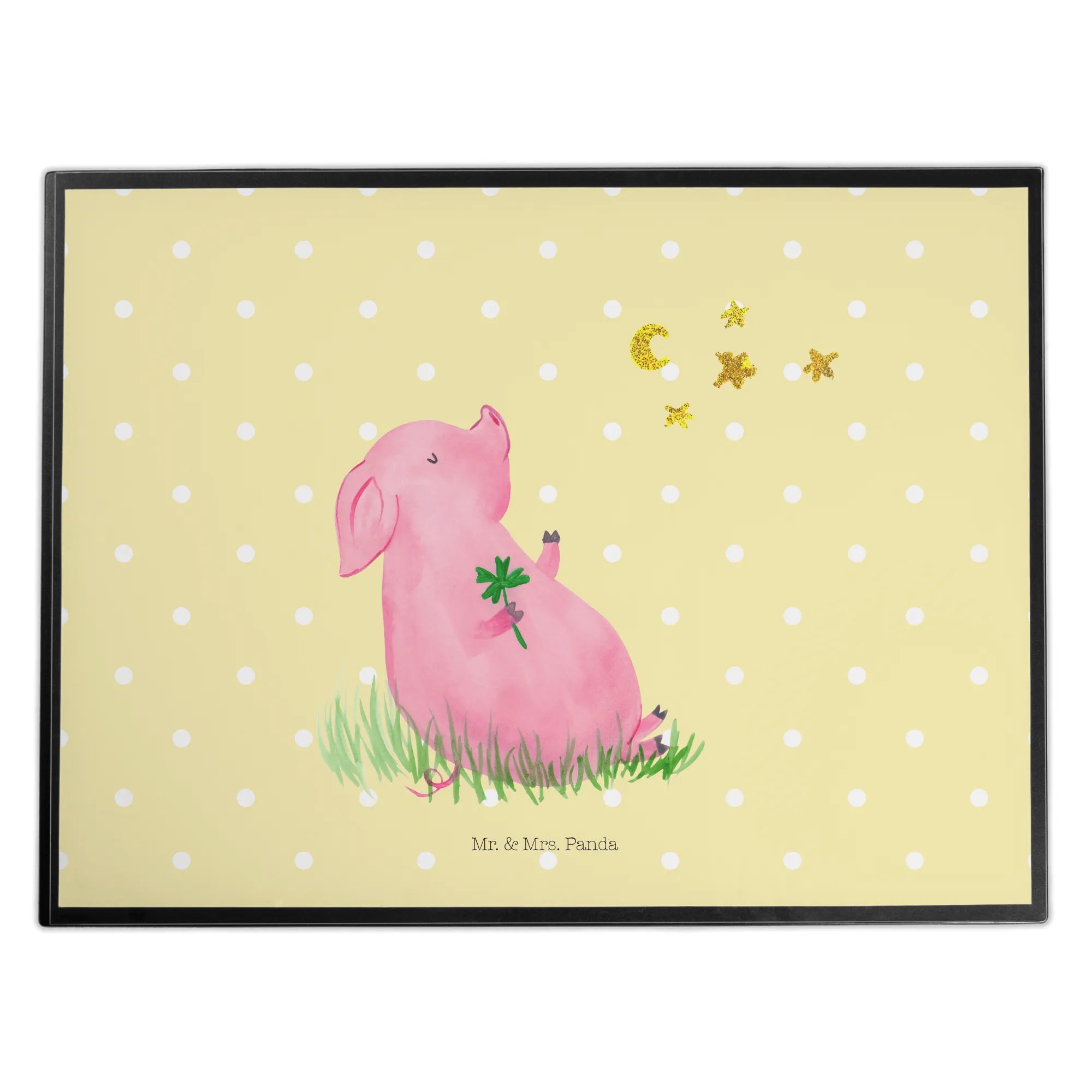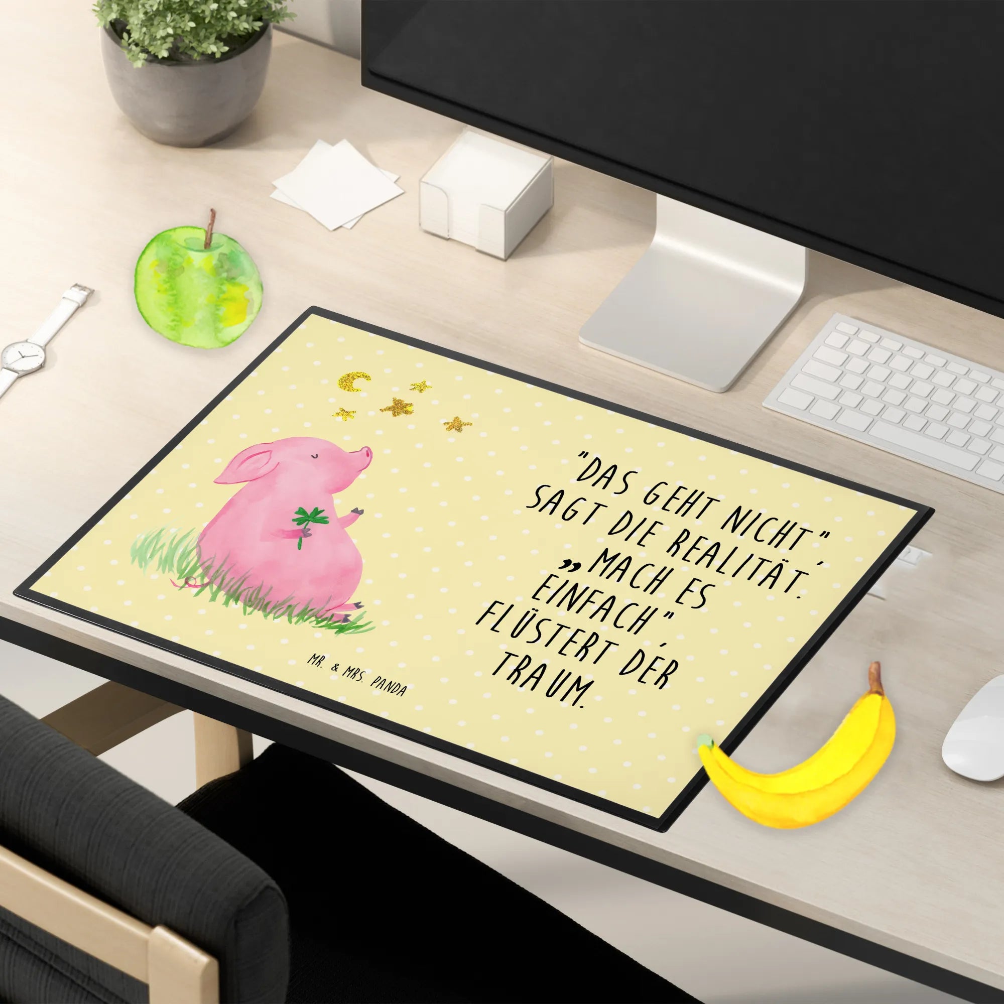 Schreibtischunterlage Schwein Glück - mit Spruch - Gelb Pastell