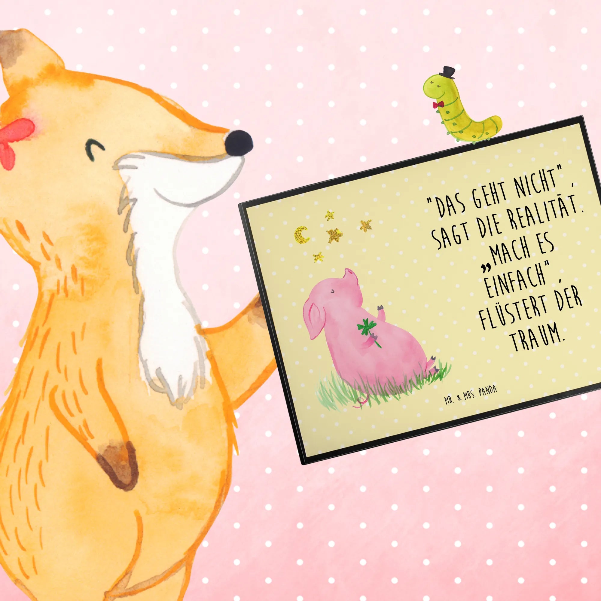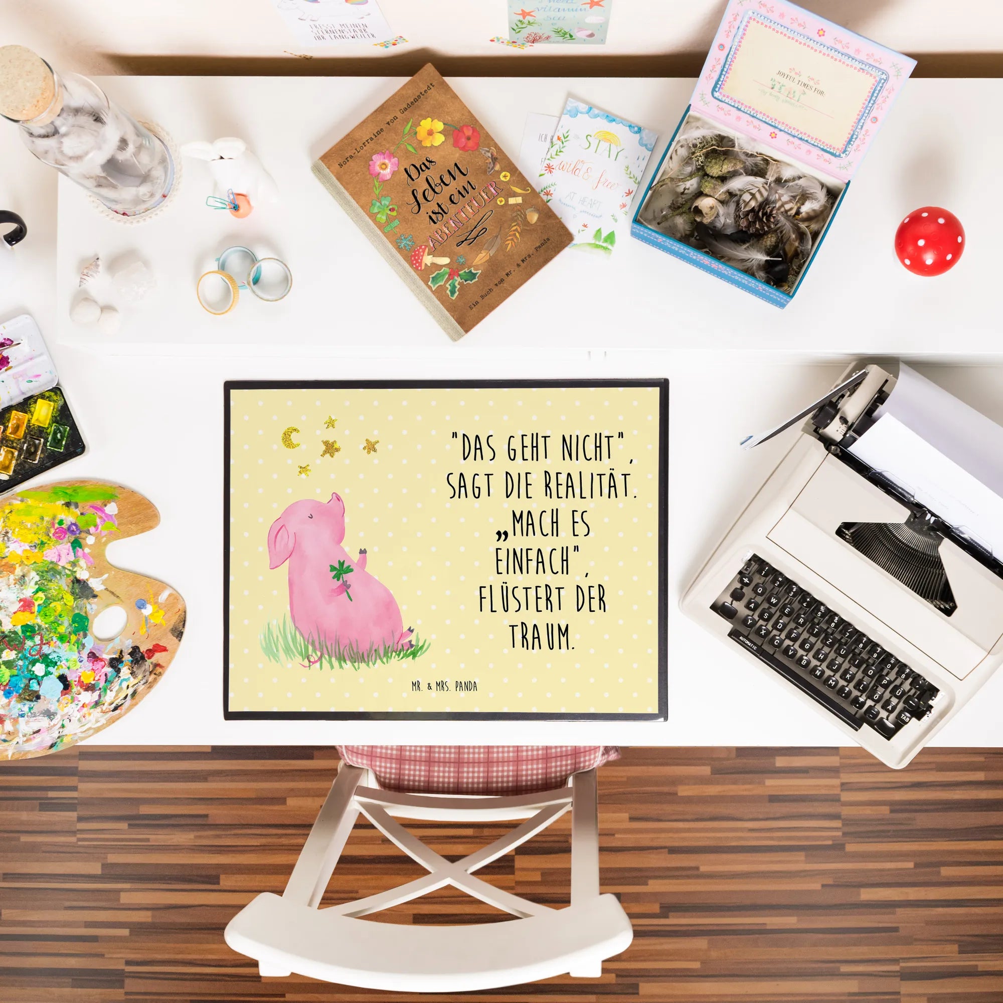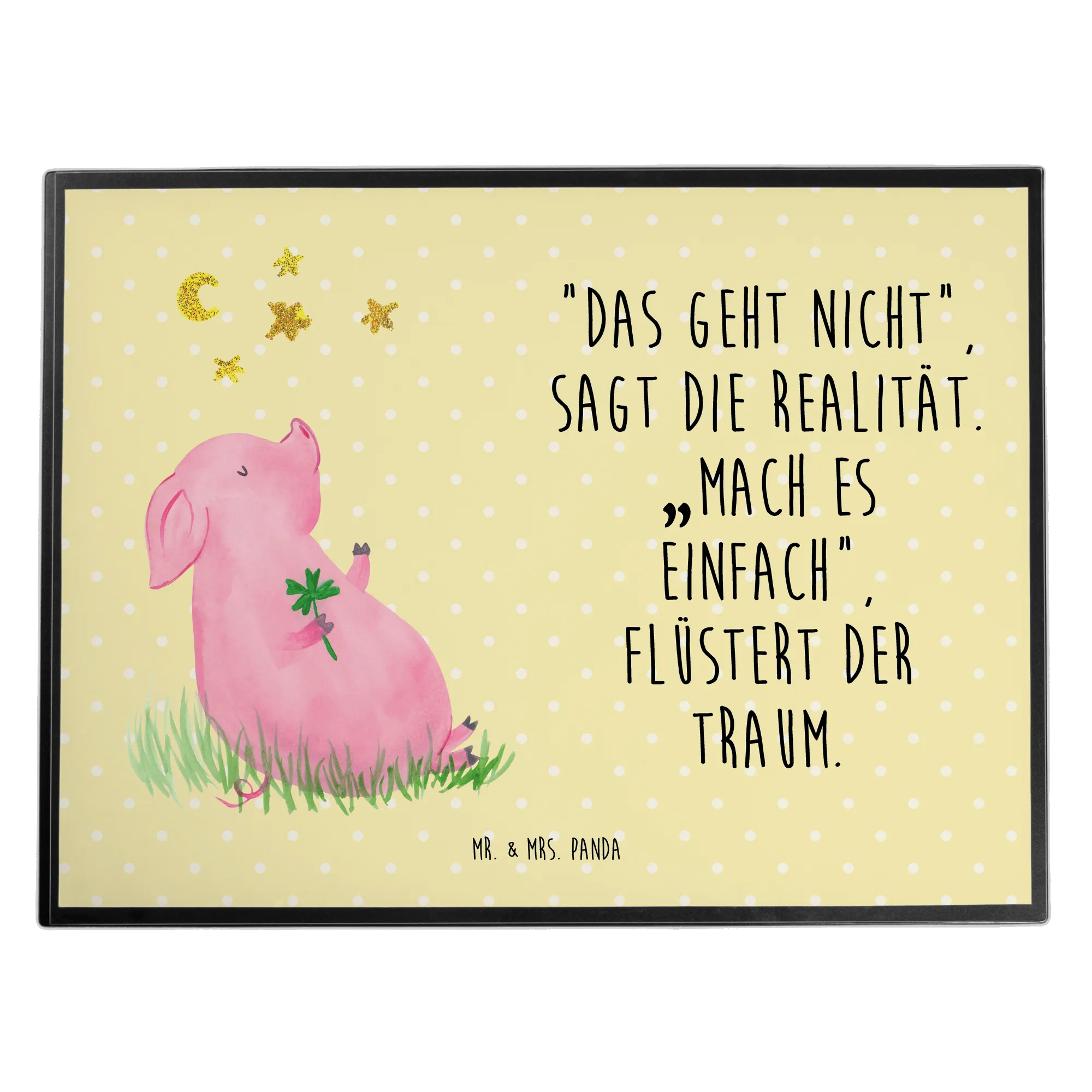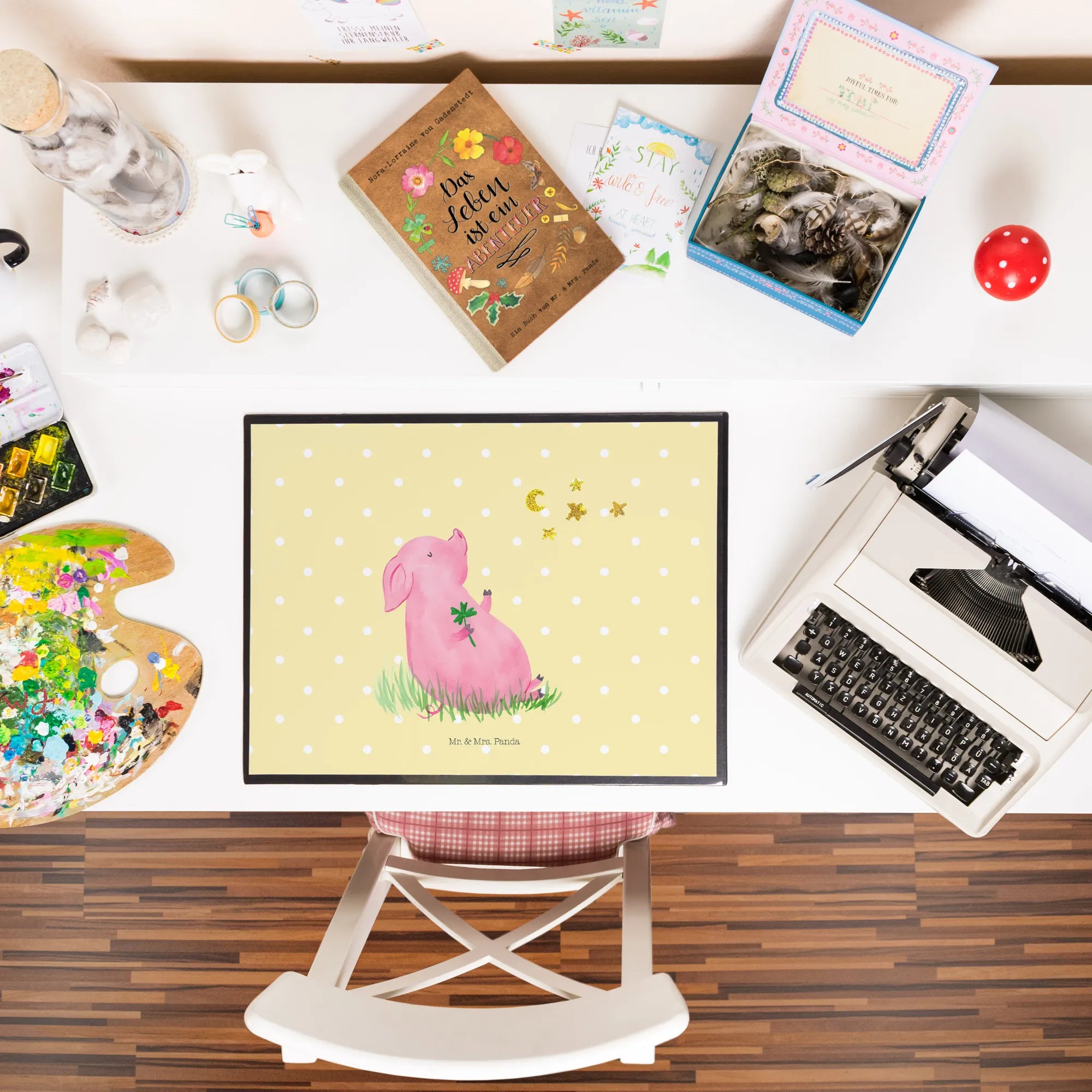 Schreibtischunterlage Schwein Glück - mit Spruch - Gelb Pastell