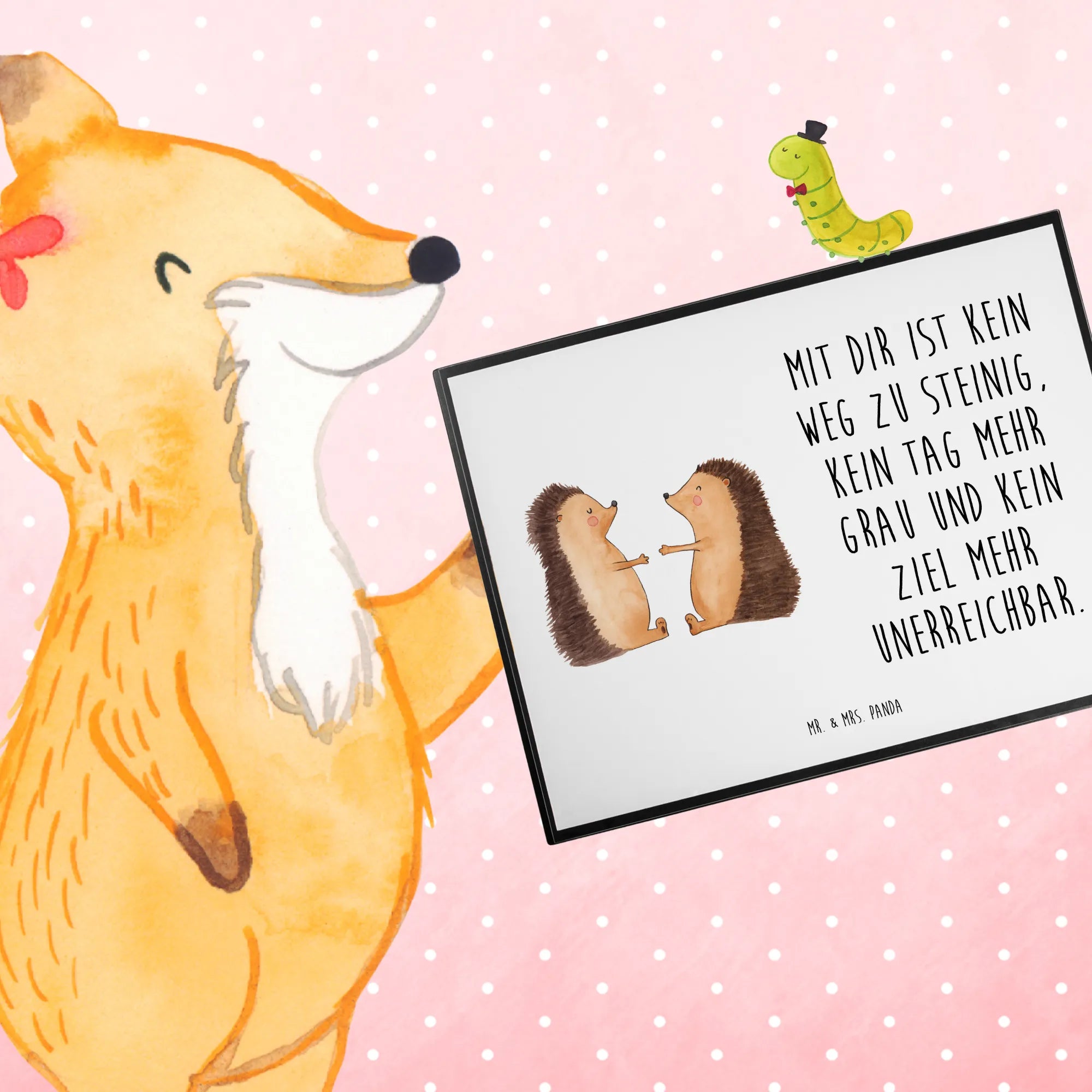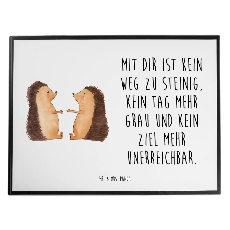 Die süßen, handgemalten Igelchen, die sich in inniger Zweisamkeit gegenüberstehen, übermitteln eine romantische Botschaft: "Mit dir ist kein Weg zu steinig, kein Tag mehr grau und kein Ziel mehr unerreichbar." Egal ob Du diese Schreibtischauflage für Dich selbst oder als Geschenk für Deinen Partner, Deine Freundin oder Deinen Ehemann kaufst, sie sorgt für ein angenehmes Schreibgefühl und hält Deinen Schreibtisch gleichzeitig sauber und geschützt.
