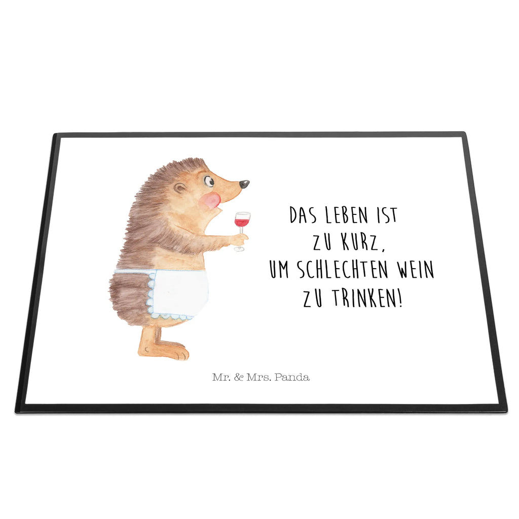 Schreibtischunterlage Igel mit Wein - mit Spruch - Weiß