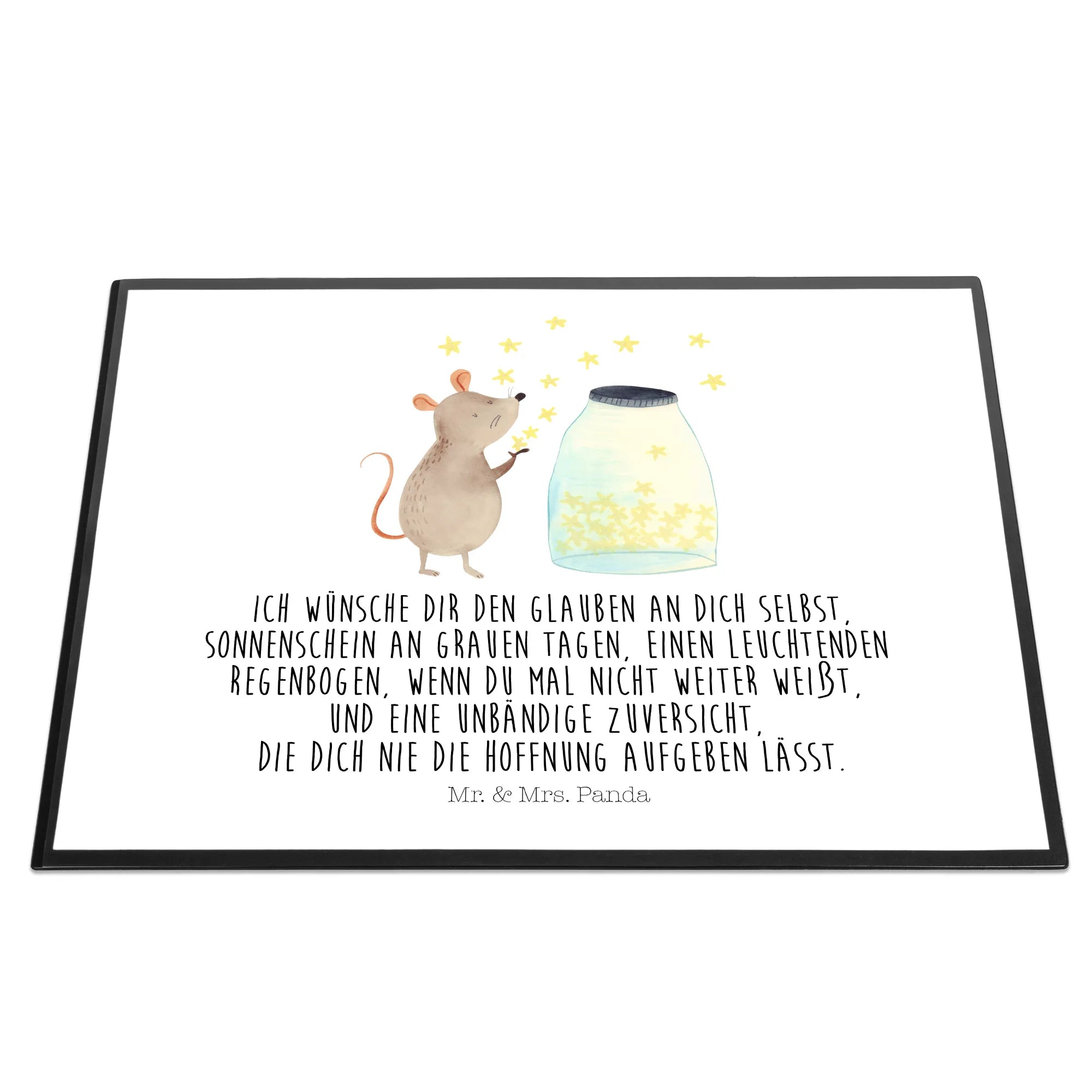 Die liebevoll gestaltete Schreibtischunterlage "Maus Sterne" von Mr. & Mrs. Panda ist das perfekte Geschenk für jeden Arbeitsplatz. Diese durchdachte Schreibtischauflage bringt nicht nur Farbe und Freude in den Alltag, sondern bietet auch einen funktionalen Schutz für deinen Schreibtisch. Mit den Maßen von 400 mm x 530 mm passt sie ideal auf jeden Tisch und sorgt für ein angenehmes Schreibgefühl. Das niedliche Motiv der kleinen Maus, die vor einem Glas voller funkelnder Sterne sitzt, entführt dich auf eine magische Reise durch das Universum. Die Maus träumt von Abenteuern und fliegen lässt sie die Sterne, was nicht nur Kinderaugen strahlen lässt, sondern auch Erwachsene zum Schmunzeln bringt.