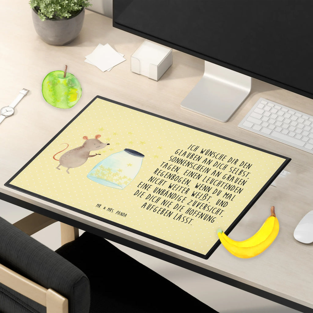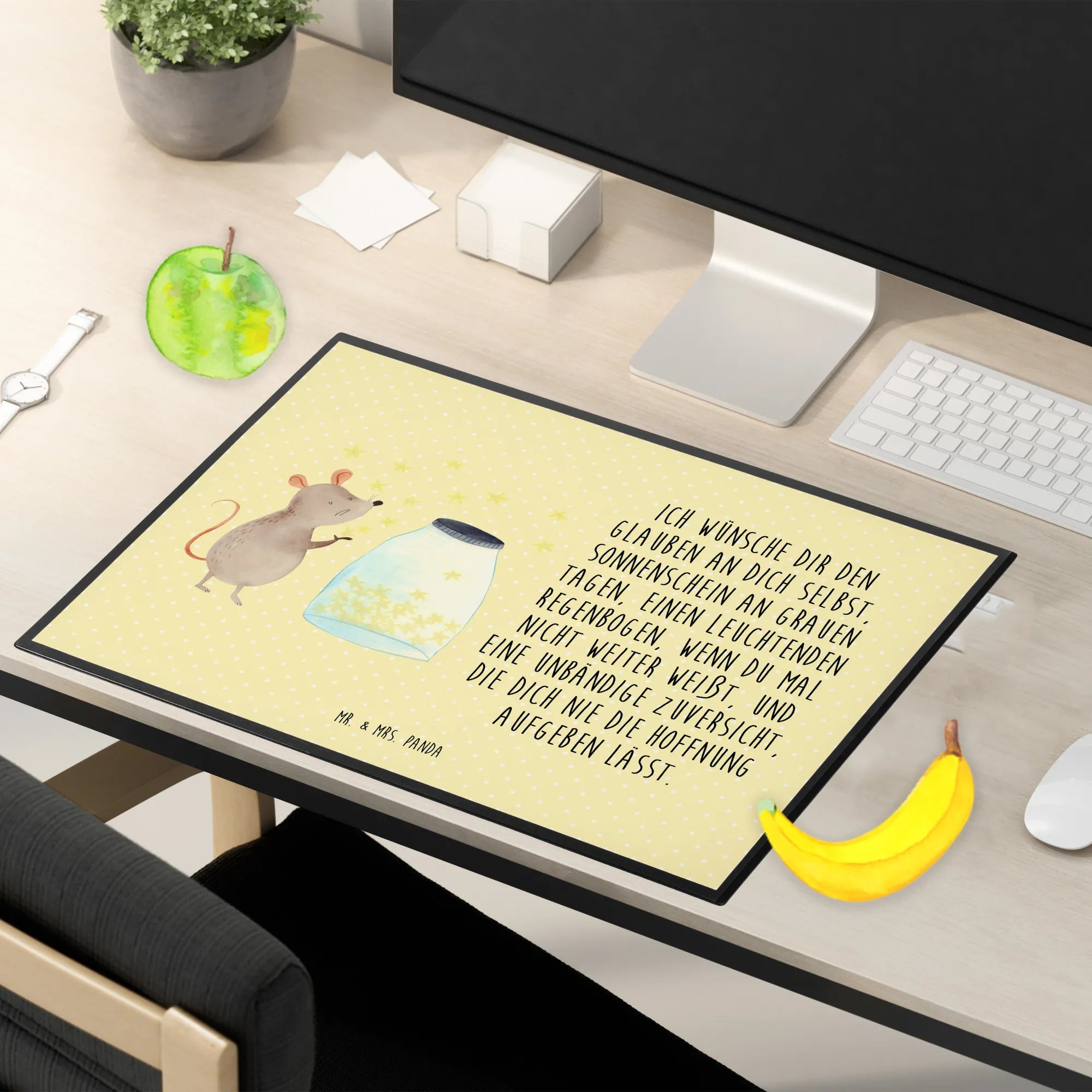 Schreibtischunterlage Maus Sterne - mit Spruch - Gelb Pastell