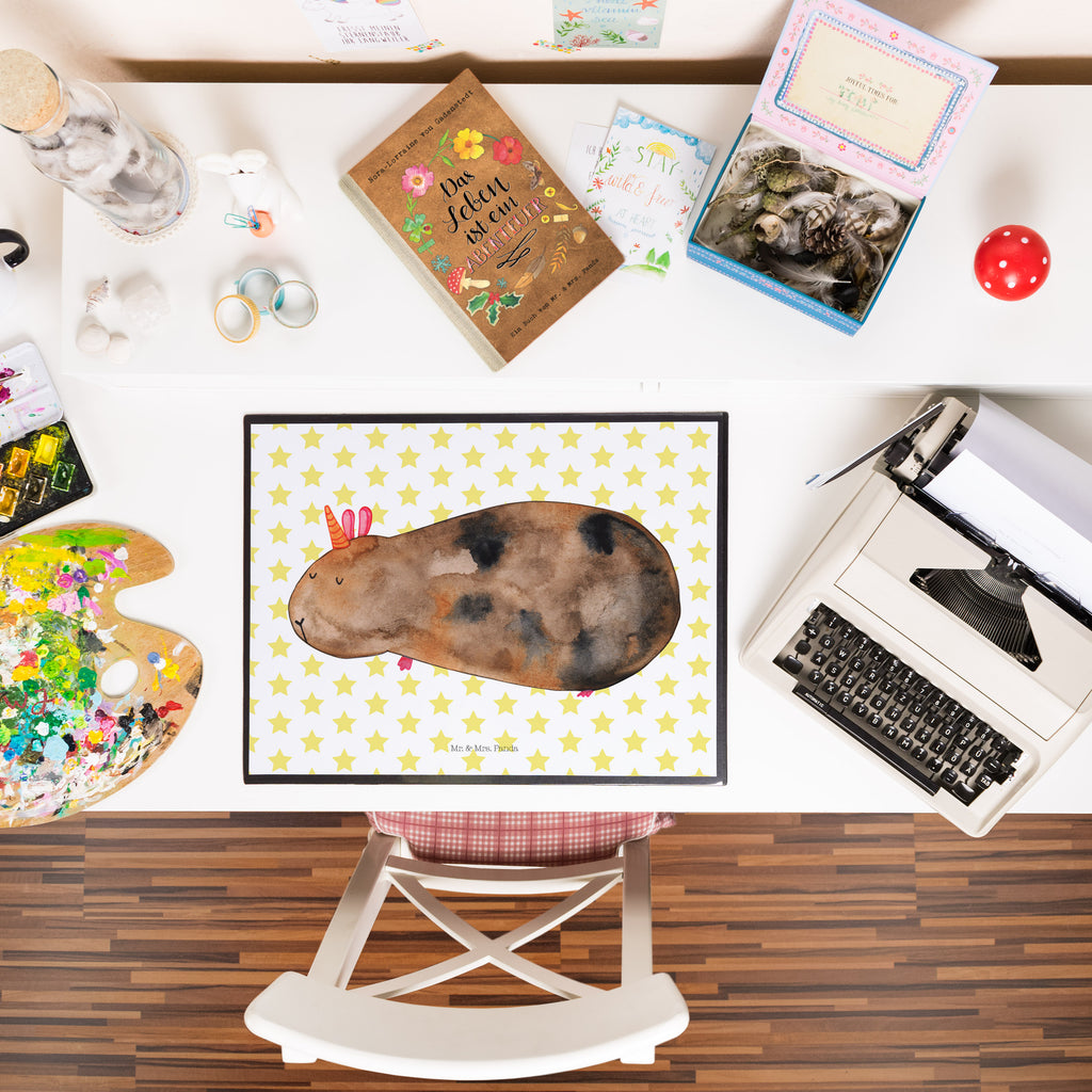 Zauberhaft, praktisch und mit viel Herz: Die Mr. & Mrs. Panda Schreibtischunterlage Meerhörnchen aus der Einhorn - Kollektion bringt ein Lächeln an jeden Arbeitsplatz. Das süße Meerschweinchen mit Horn und der charmante Spruch „Sie sagten, ich könnte alles sein. Also wurde ich ein Meerhörnchen.“ vereinen Humor und Niedlichkeit und machen die Schreibtischmatte zum perfekten Geschenk für Kinder, Jugendliche und Einhorn-Liebhaber.