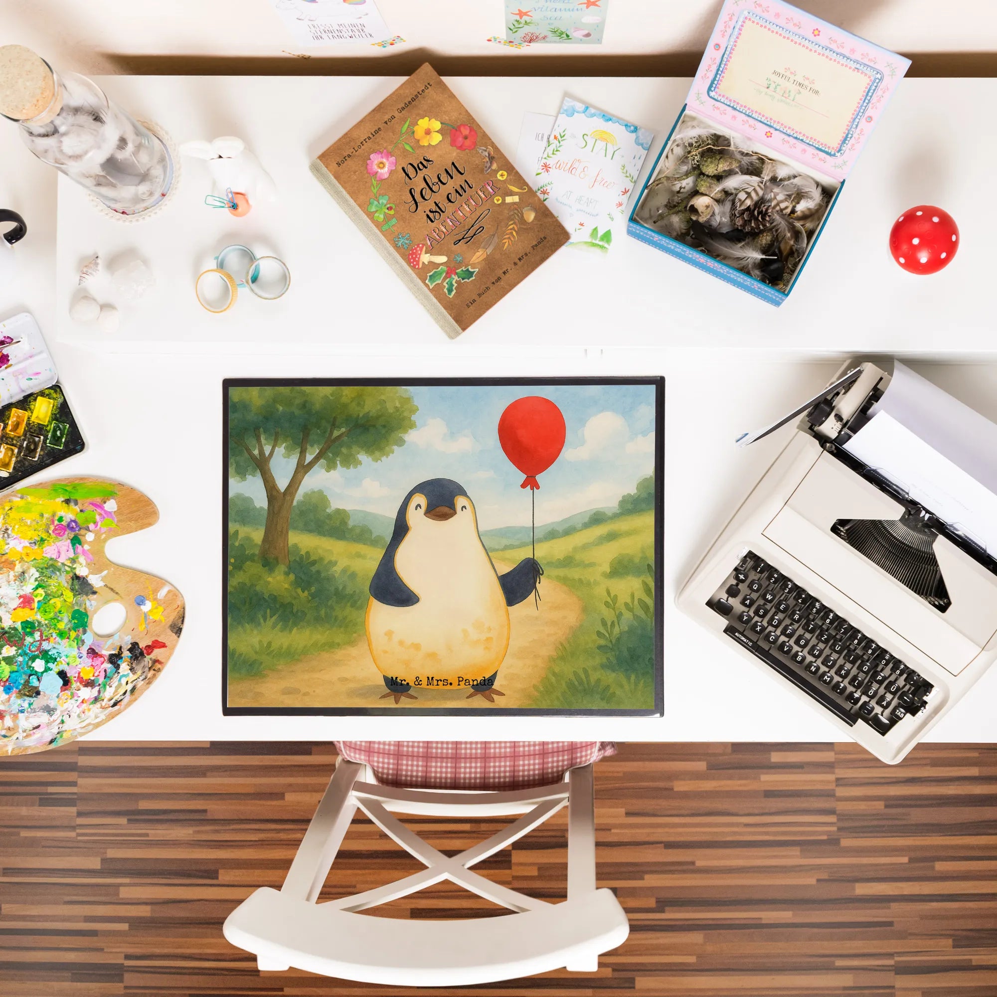 Stell dir vor, du setzt dich an deinen Schreibtisch und das Erste, was dich begrüßt, ist ein kleines, flauschiges Wesen mit einem bunten Luftballon in der Hand. Unsere Mr. & Mrs. Panda Schreibtischunterlage mit dem zauberhaften Pinguin-Luftballon-Motiv verwandelt deinen Arbeitsplatz in einen Ort voller Lebenslust und Inspiration. 🐧🎈