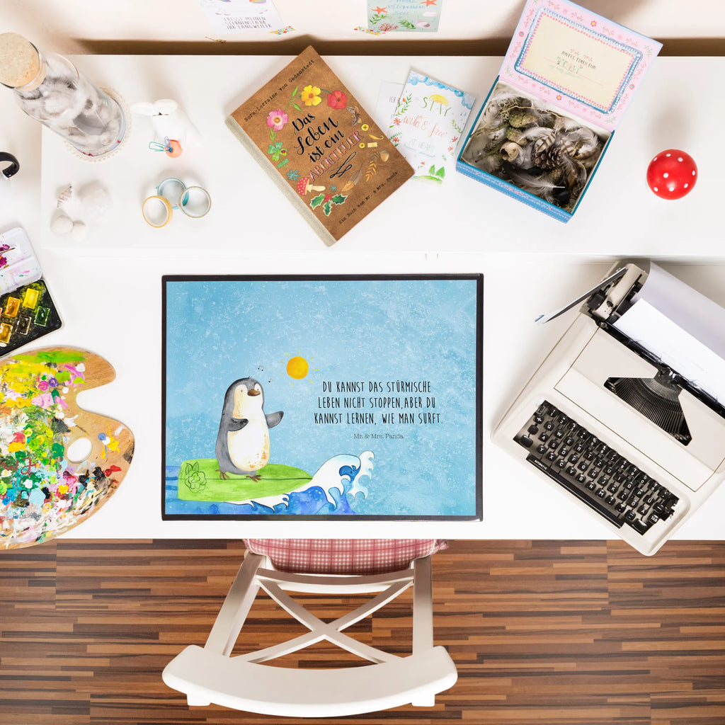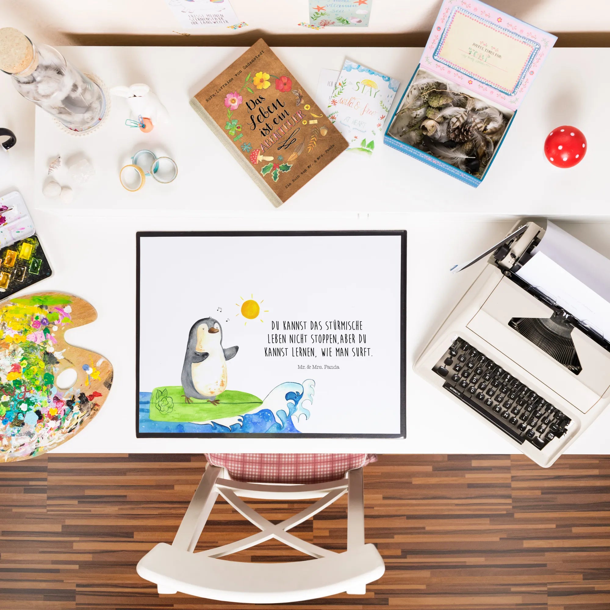 Entdecke die perfekte Schreibtischunterlage von Mr. & Mrs. Panda mit dem süßen Motiv des Pinguin Surfers! Diese Schreibtischauflage ist nicht nur ein praktisches Bürozubehör, sondern auch ein echter Hingucker, der dein Arbeitsumfeld aufhellt. Mit der Botschaft "Du kannst das stürmische Leben nicht stoppen, aber du kannst lernen, wie man surft" inspiriert dieser Pinguin–Surfer dazu, das Beste aus jeder Herausforderung zu machen, die dir das Leben bietet. Egal, ob du im Home Office, im Kindergarten oder in der Schule bist, diese Schreibtischunterlage sorgt für ein angenehmes Schreibgefühl und schützt deinen Tisch gleichzeitig vor unschönen Kratzern und Flecken.