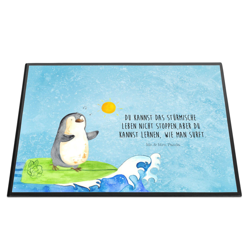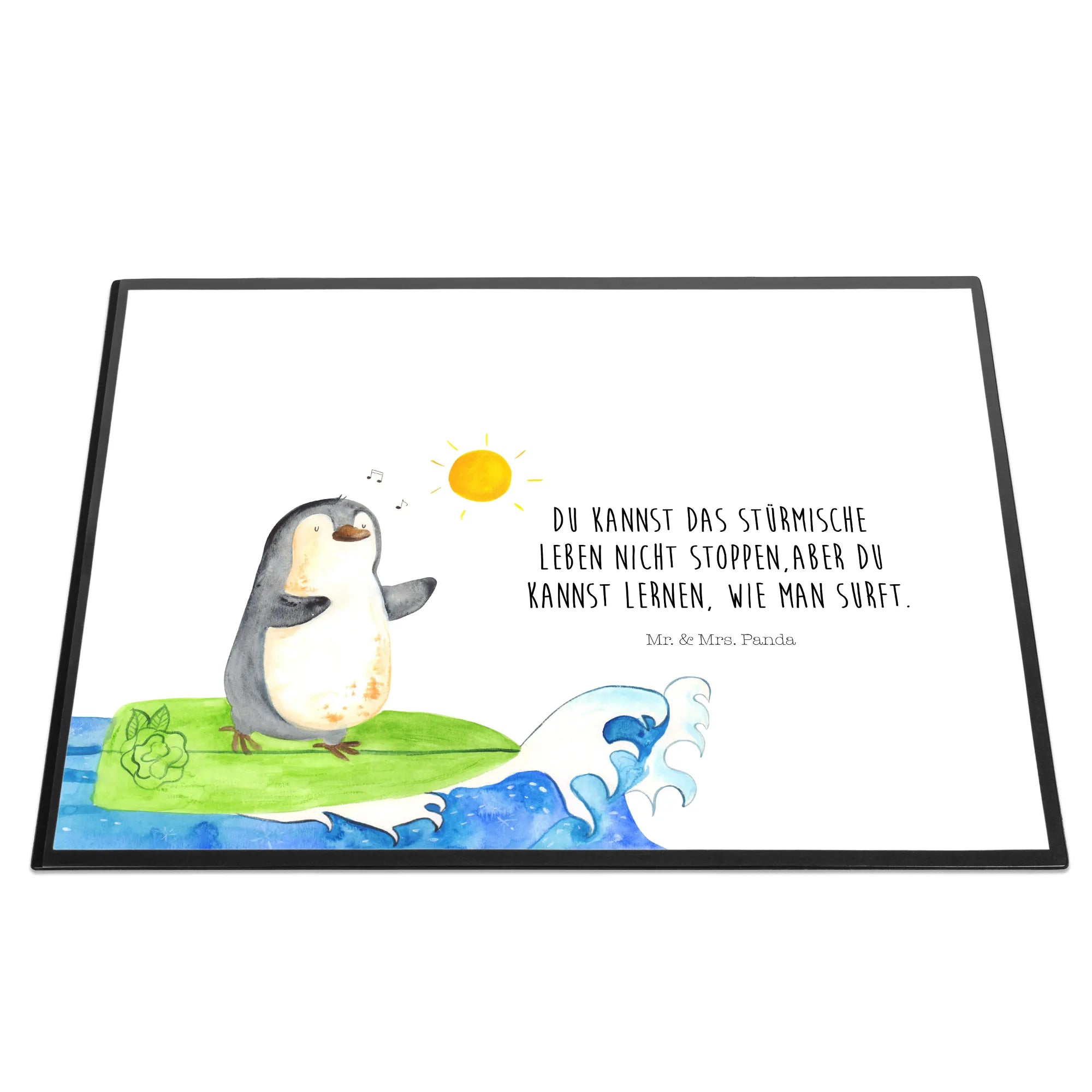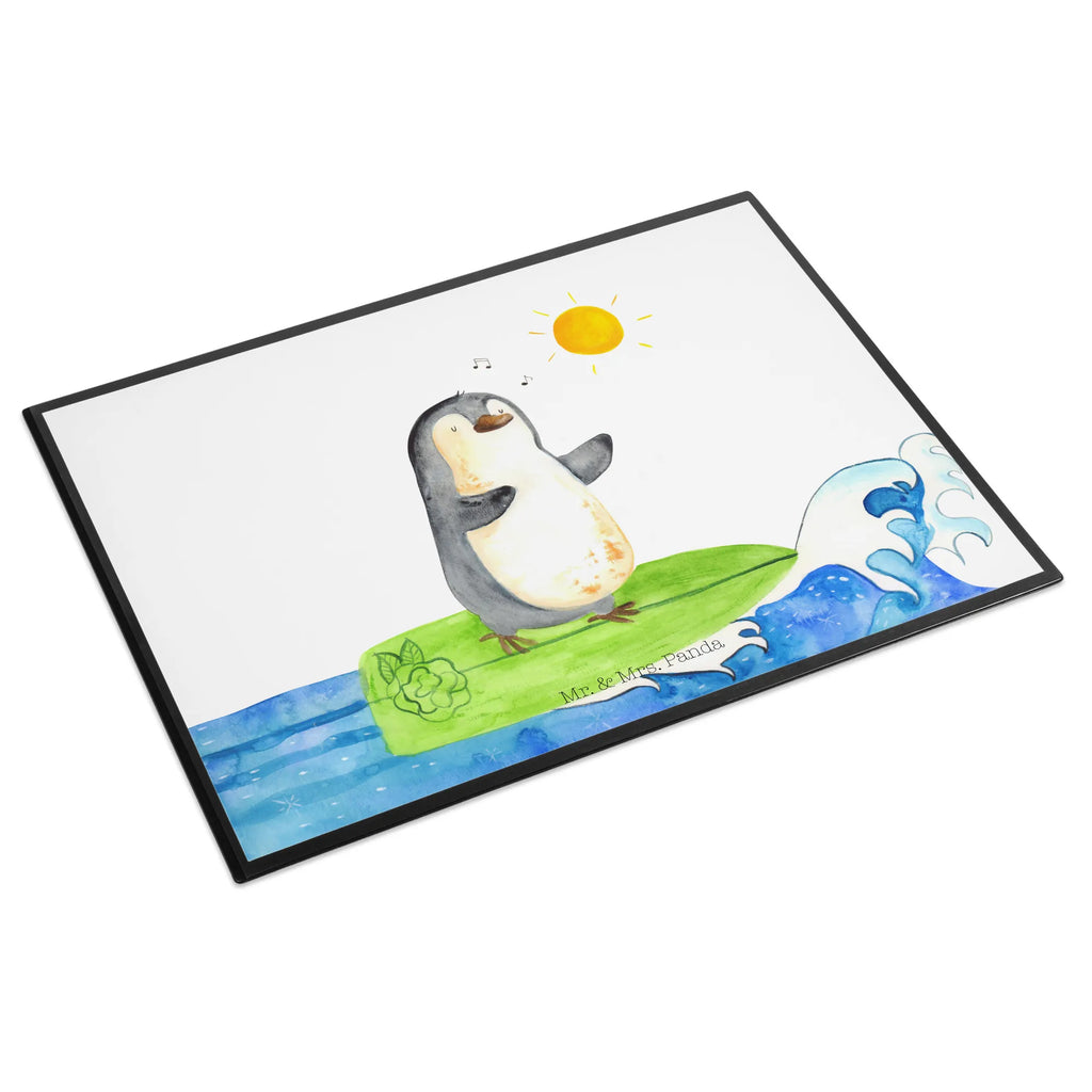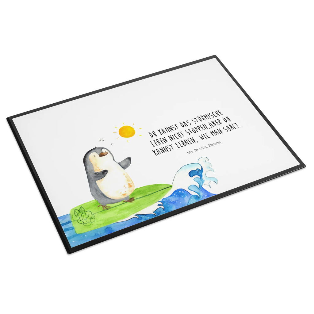 Schreibtischunterlage Pinguin Surfer - mit Spruch - Weiß