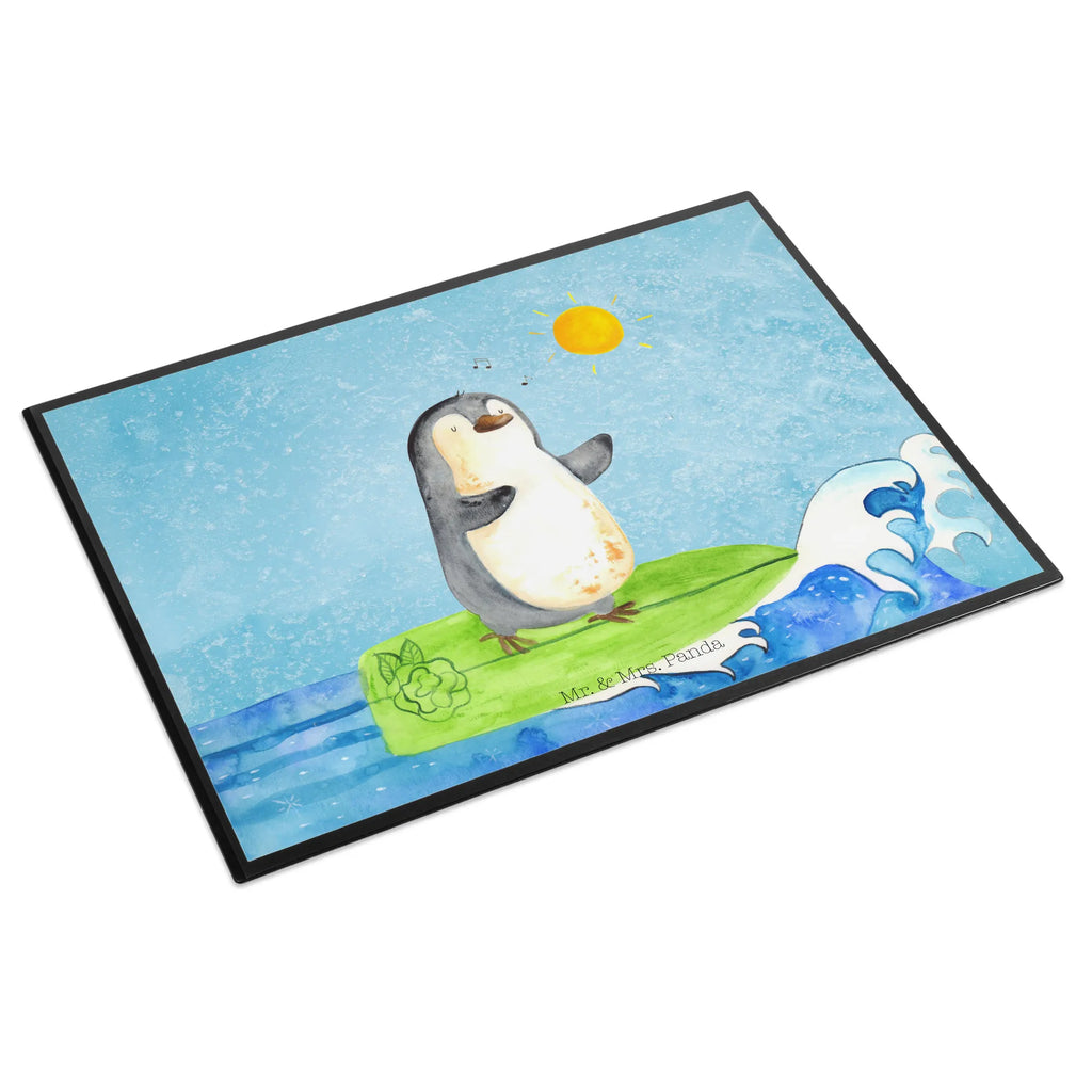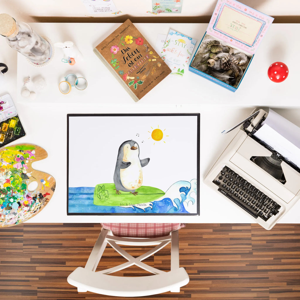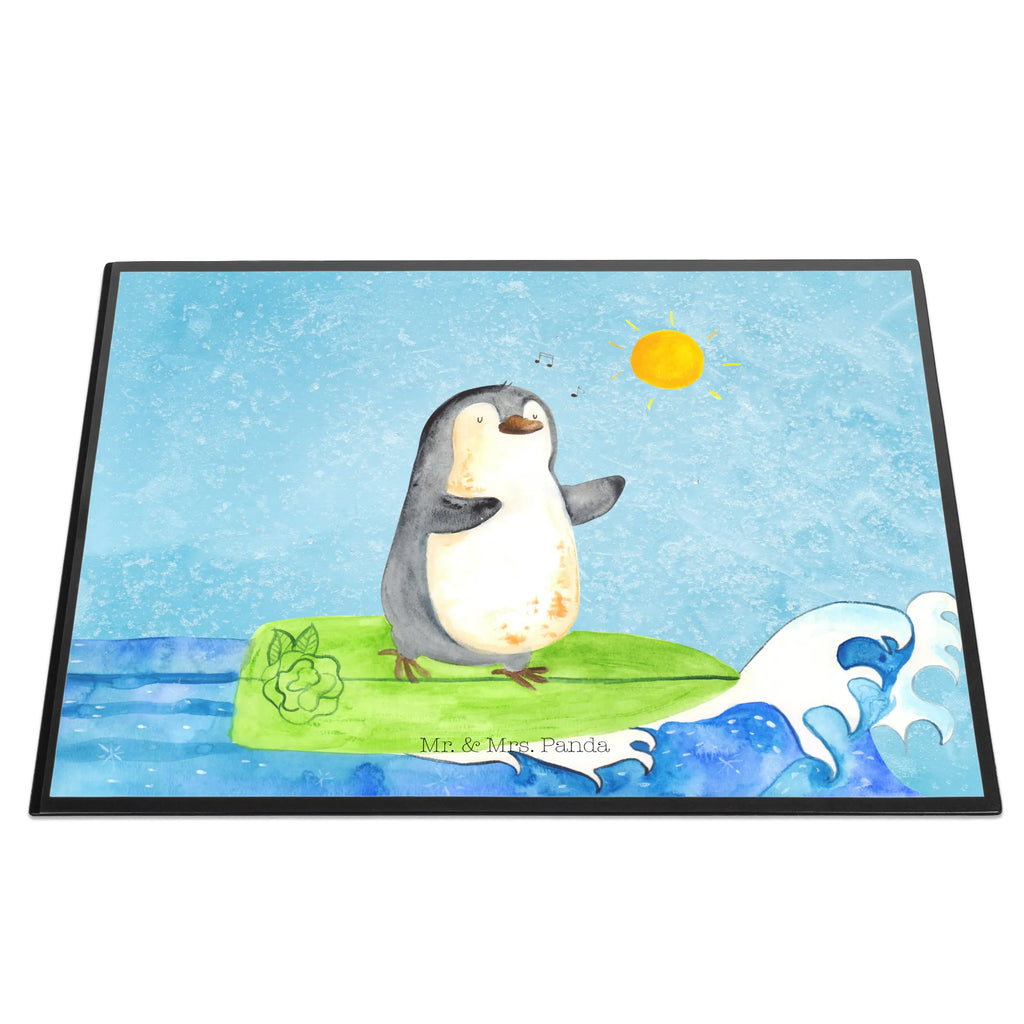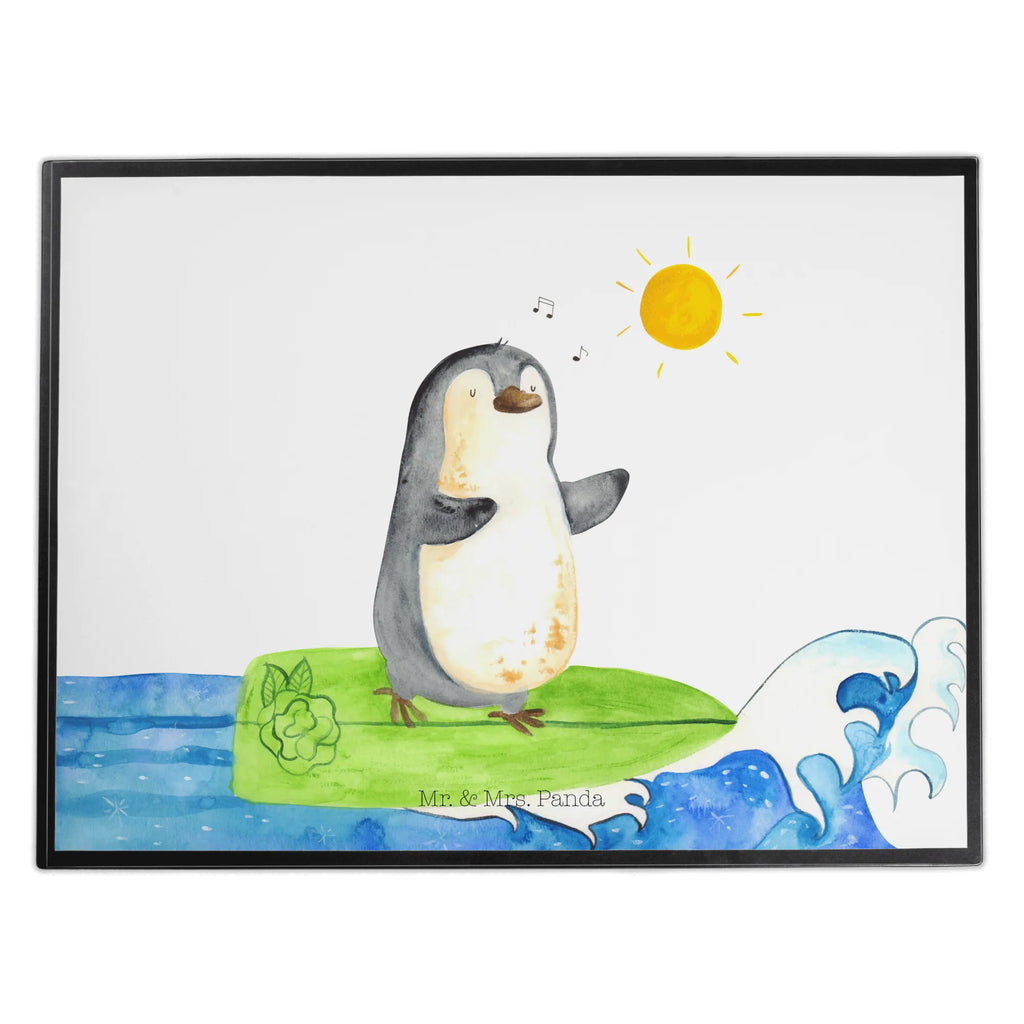 Schreibtischunterlage Pinguin Surfer - mit Spruch - Weiß