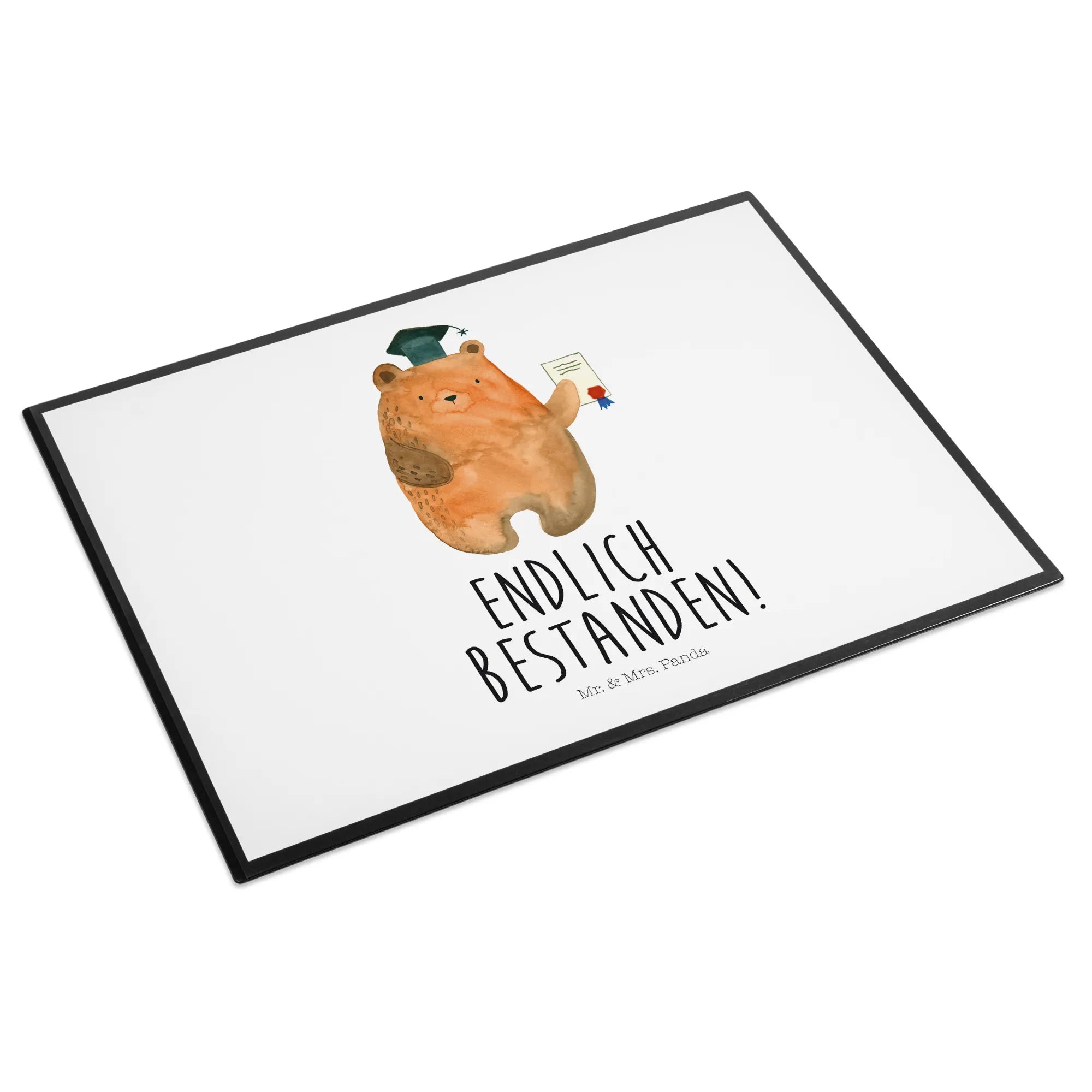 Schreibtischunterlage Prüfungsbär - mit Spruch - Weiß