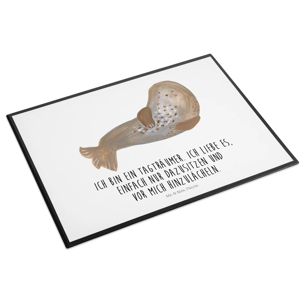 Schreibtischunterlage Robbe lachend - mit Spruch - Weiß