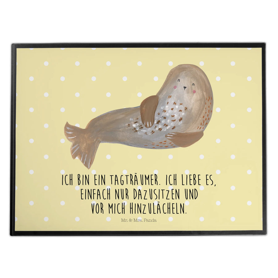 Schreibtischunterlage Robbe lachend - mit Spruch - Gelb Pastell