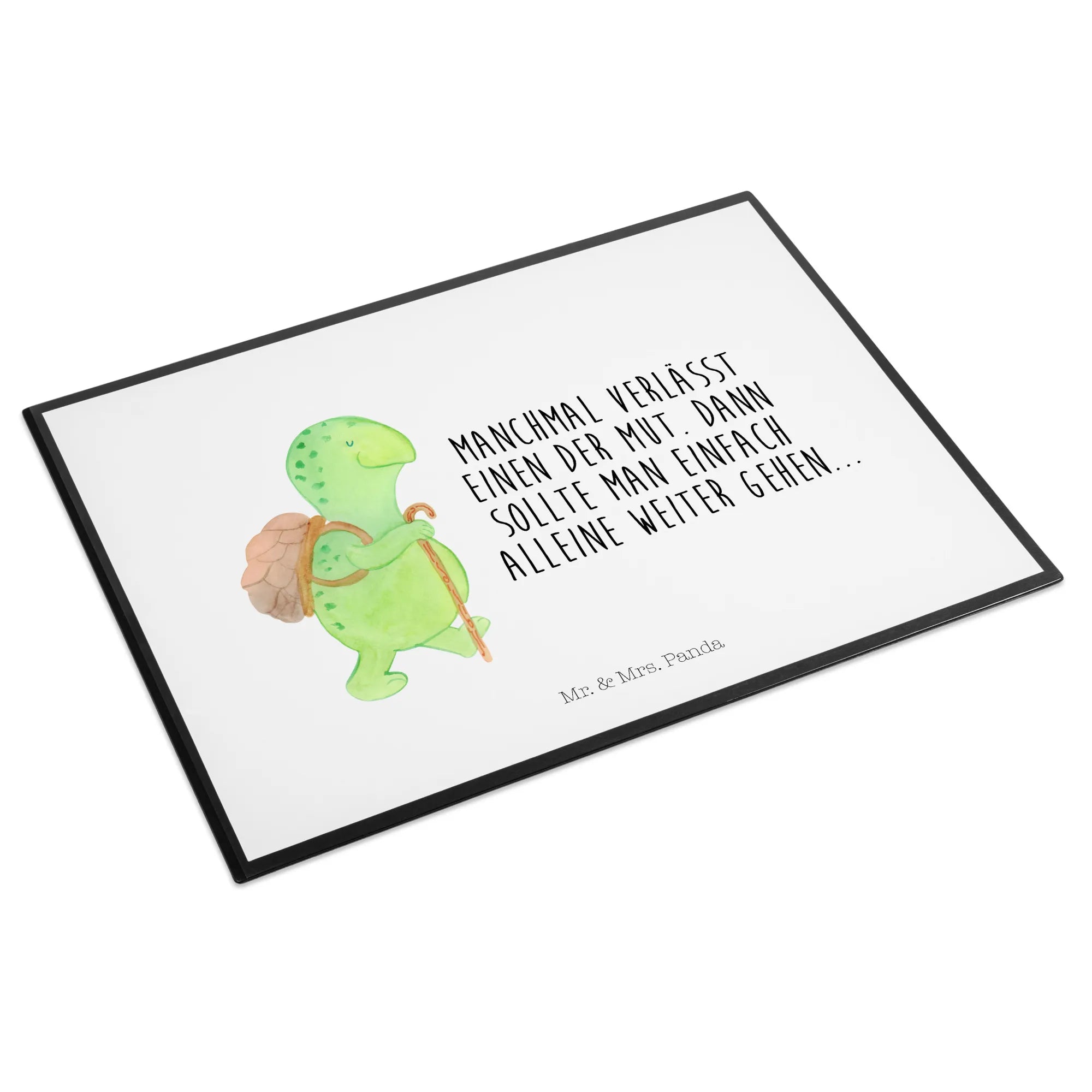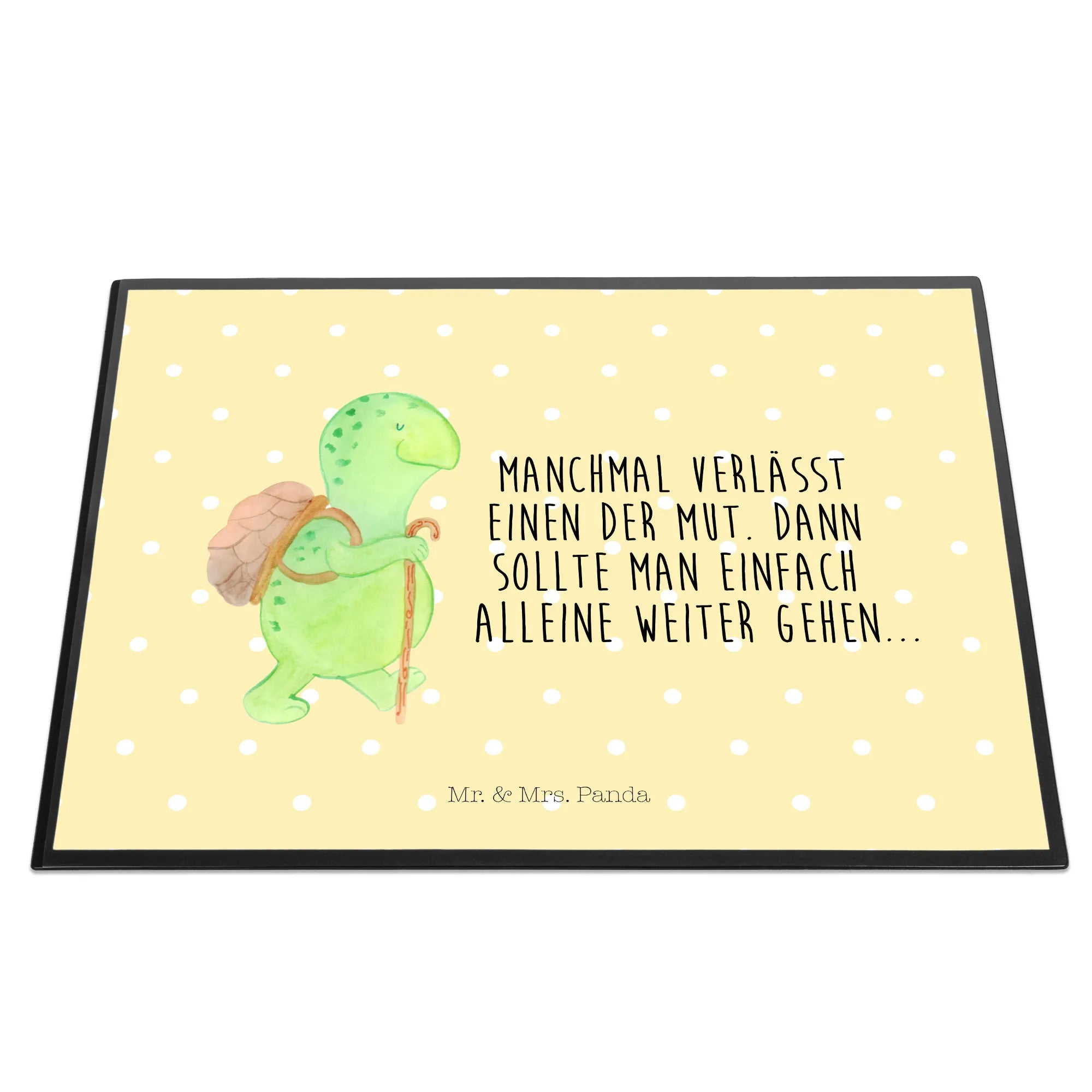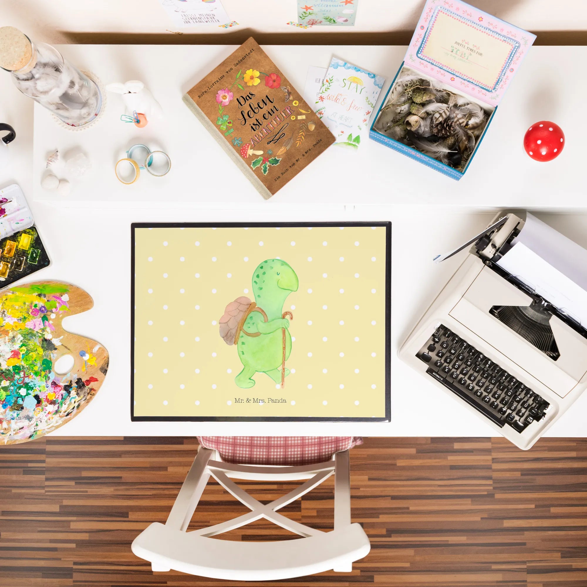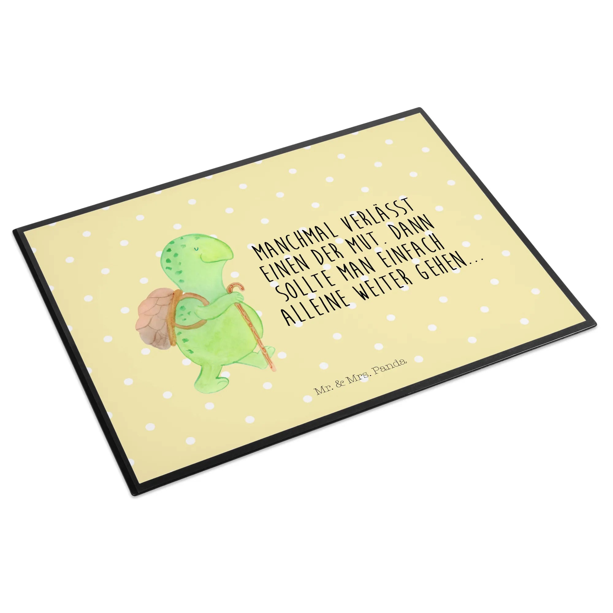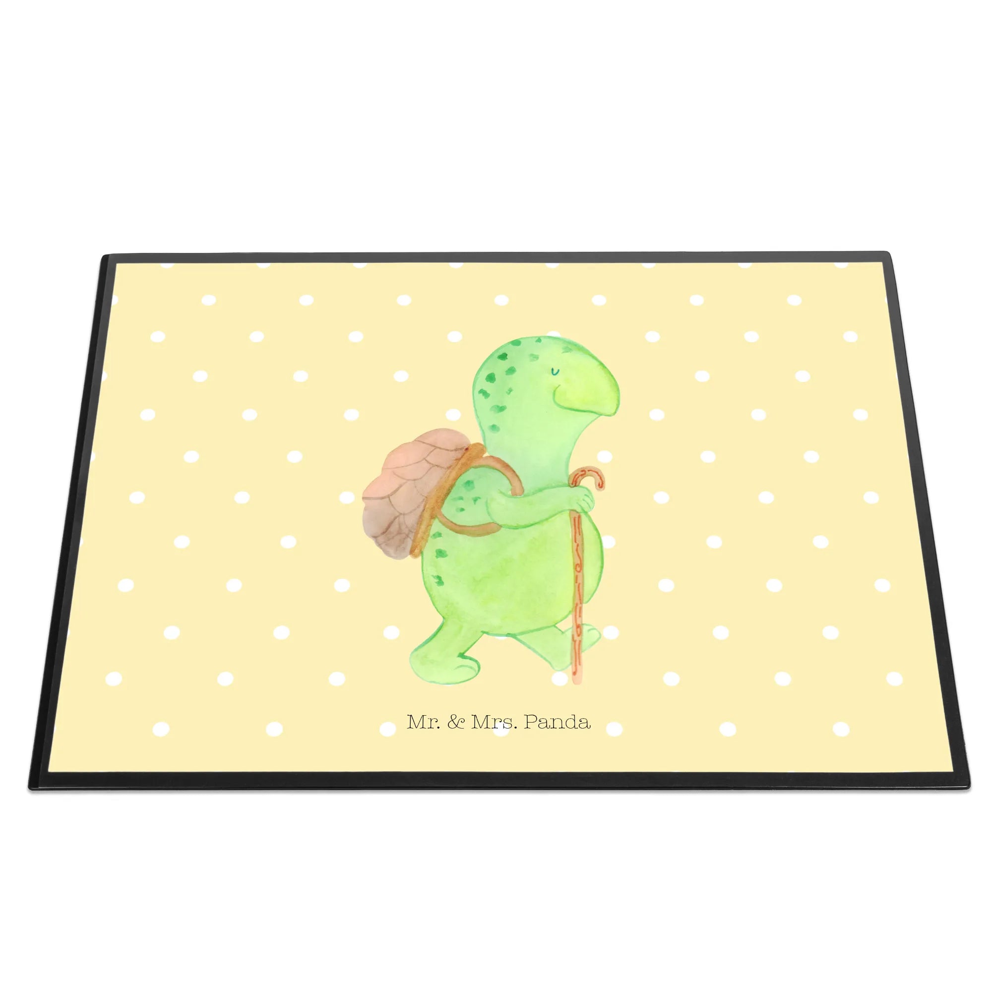 Schreibtischunterlage Schildkröte Wanderer - mit Spruch - Gelb Pastell
