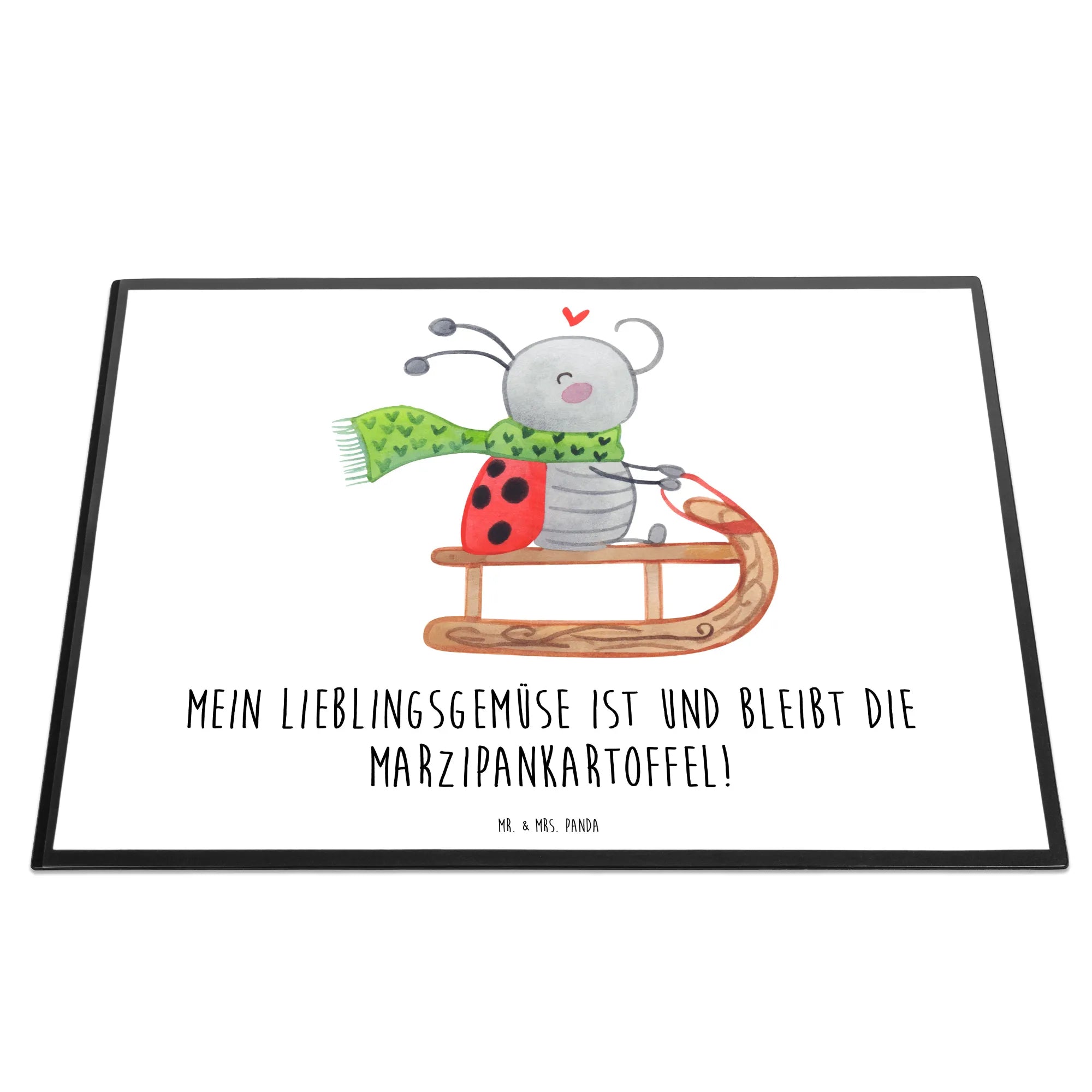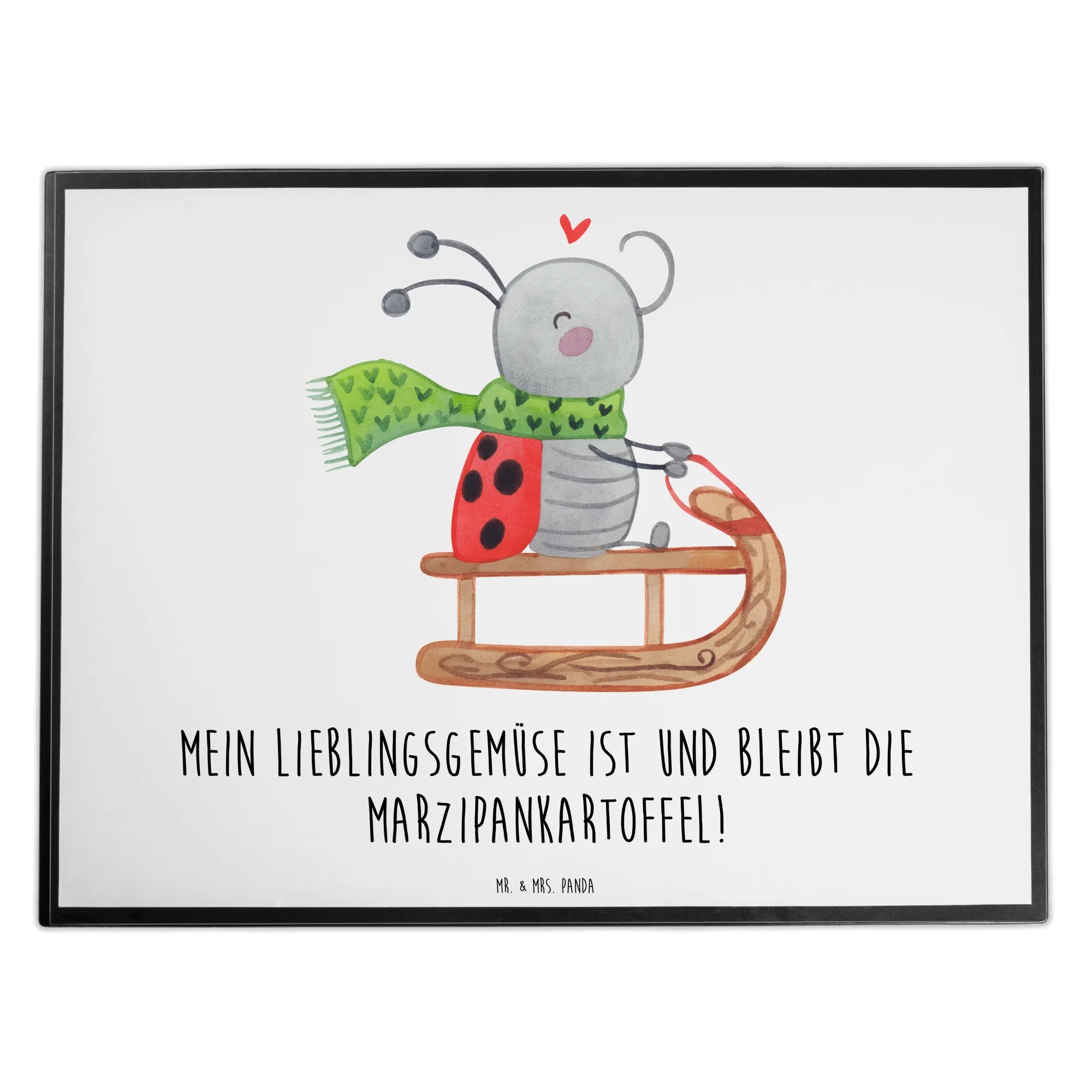 Lass den Winterspaß beginnen mit unserem fröhlichen Marienkäfer Smörle, der auf seinem bunten Schlitten durch die verschneite Landschaft flitzt. Mit seinem grünen Schal, verziert mit Herzchen, bringt er nicht nur Wärme, sondern auch jede Menge Freude und Spaß. Sein kleiner Herzchen über dem Kopf unterstreicht die heitere Stimmung und erinnert uns daran, einfach das Leben zu genießen! "Mein Lieblingsgemüse ist und bleibt die Marzipankartoffel!" – eine charmante Andeutung darauf, dass es im Leben viele süße Freuden gibt, die wir entdecken dürfen.