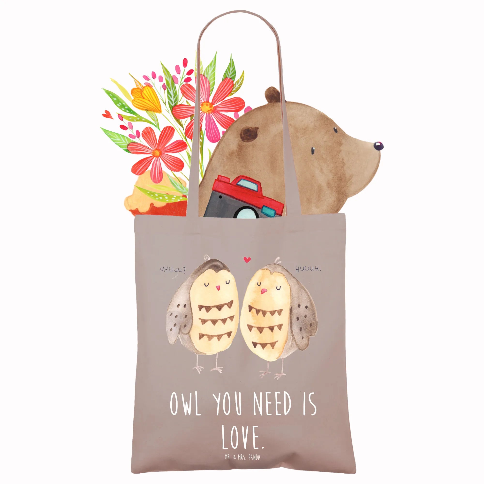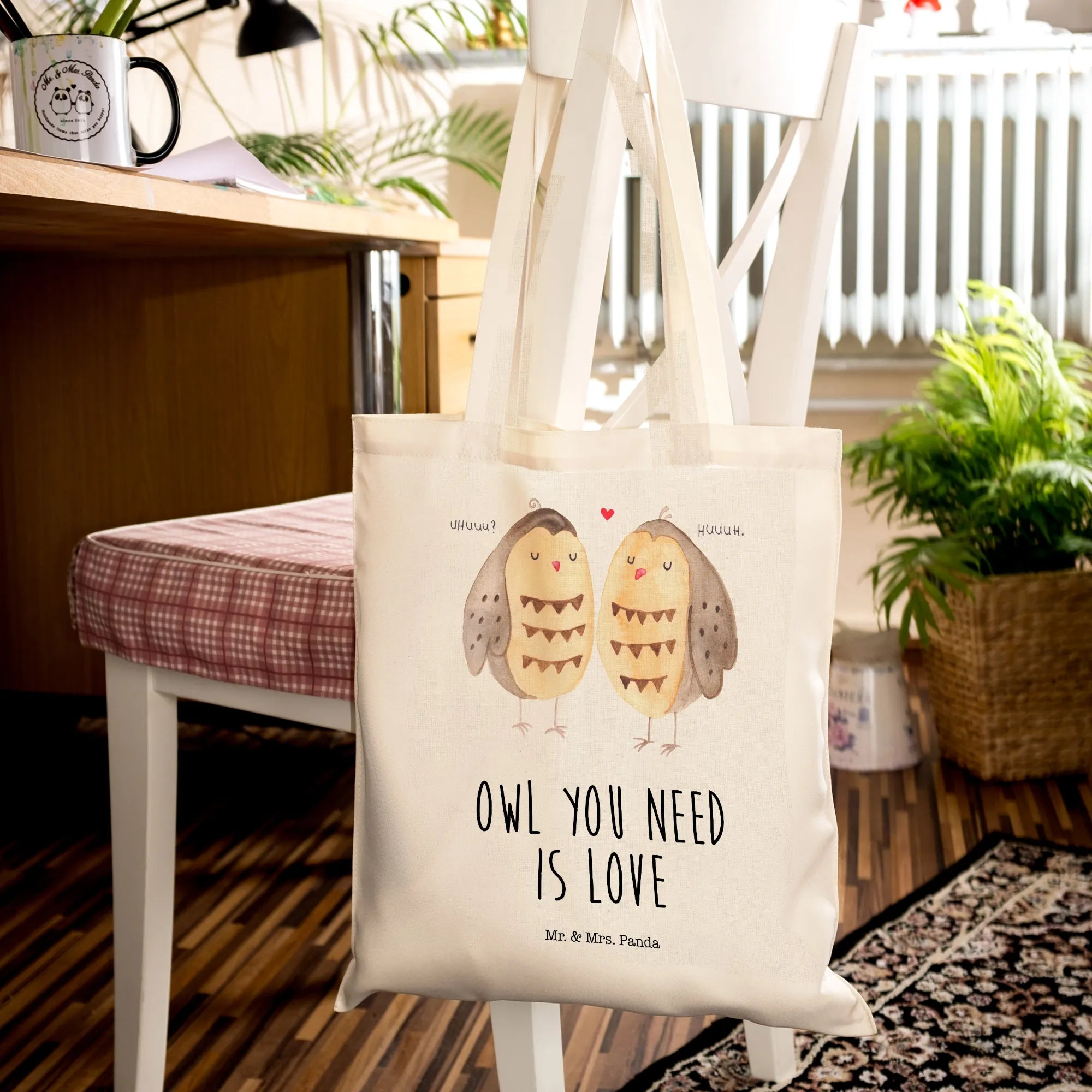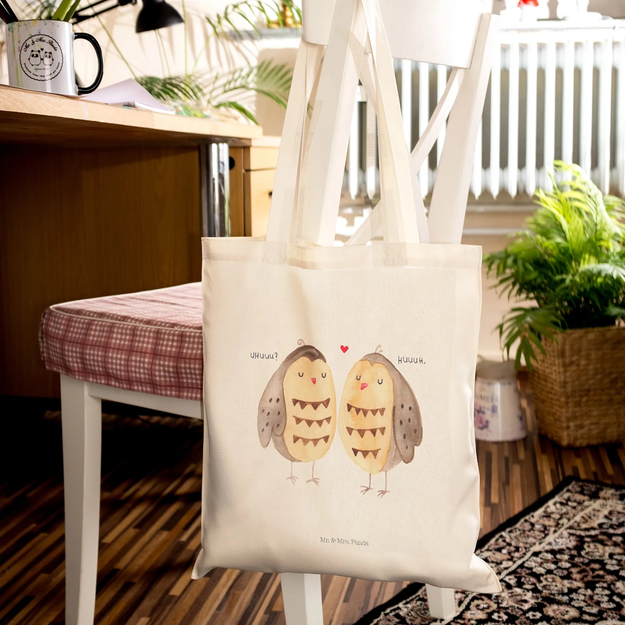 Mr. & Mrs. Panda Tragetasche „Eule Liebe“ – ein Herz voller Flügel und ein Beutel voller Charme. Die beiden verliebten Eulen auf dem Ast zaubern ein Lächeln auf jedes Gesicht und machen die Tasche zum perfekten Geschenk für Freundinnen, den Partner oder zur Hochzeit. Ideal als Einkaufstasche, Jutebeutel, Shopper oder Strandtasche. 🦉💞