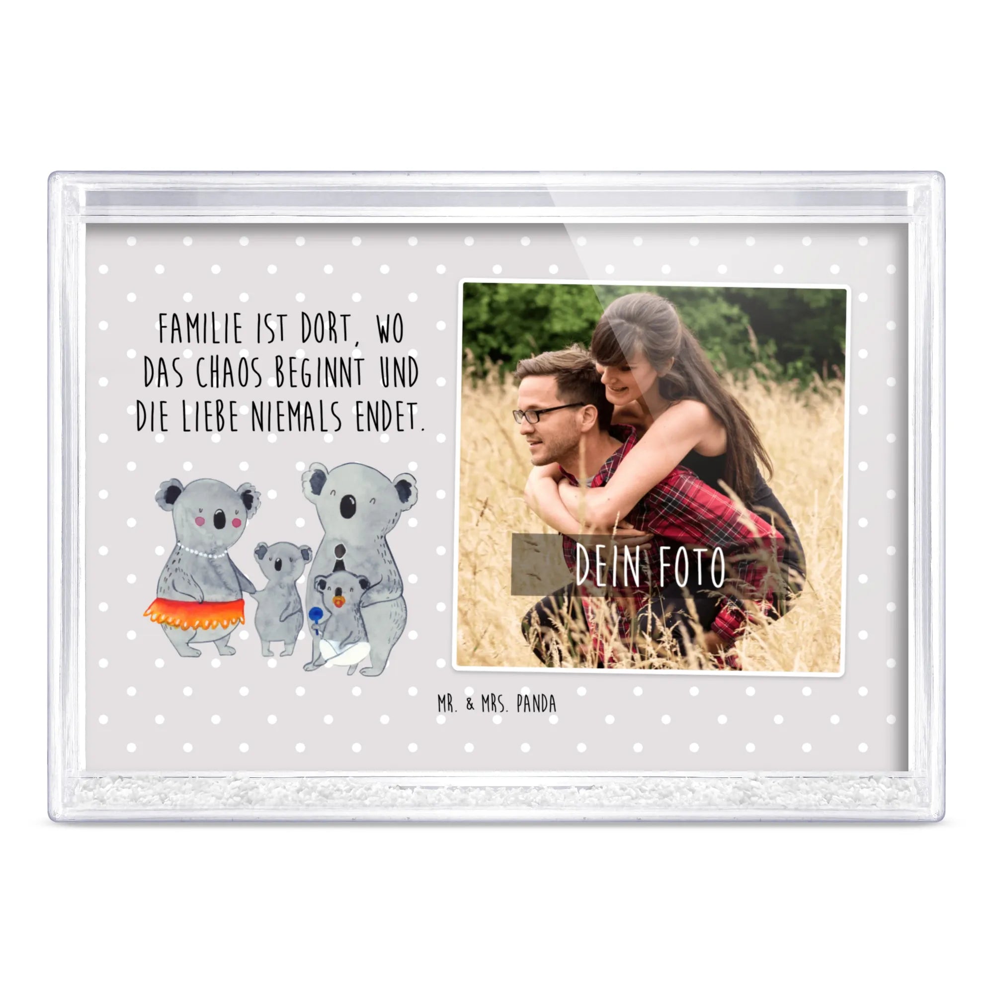 Der Schüttelrahmen mit dem süßen Motiv der Koala Familie von Mr. & Mrs. Panda ist das perfekte Fotogeschenk für alle, die ihre Liebe zur Familie auf besondere Weise ausdrücken möchten. Mit einem durchdachten Design, das nicht nur ein schönes Bild hält, sondern auch die besonderen Momente im Familienleben festhält, ist dieser Rahmen ideal für jedes Zuhause. Das Motiv zeigt eine fröhliche Koala Familie, bestehend aus zwei größeren und zwei kleineren Koalas. Diese kochend, eine liebevolle Verbindung symbolisierend, stehen sie für die Zuneigung und das Chaos, das eine Familie manchmal mit sich bringt.