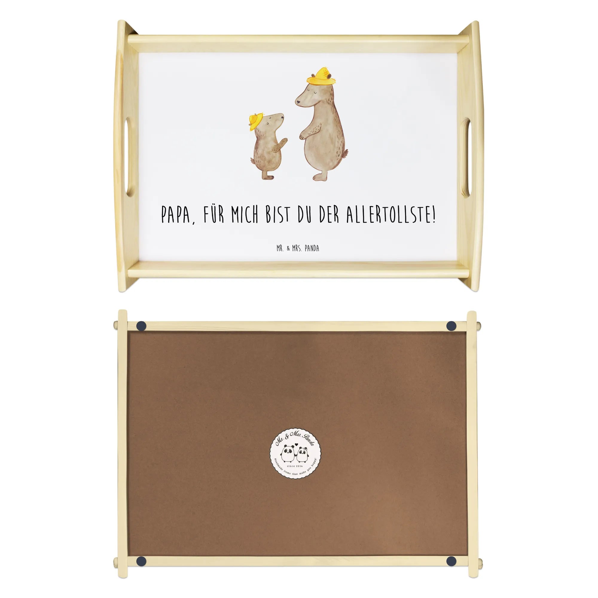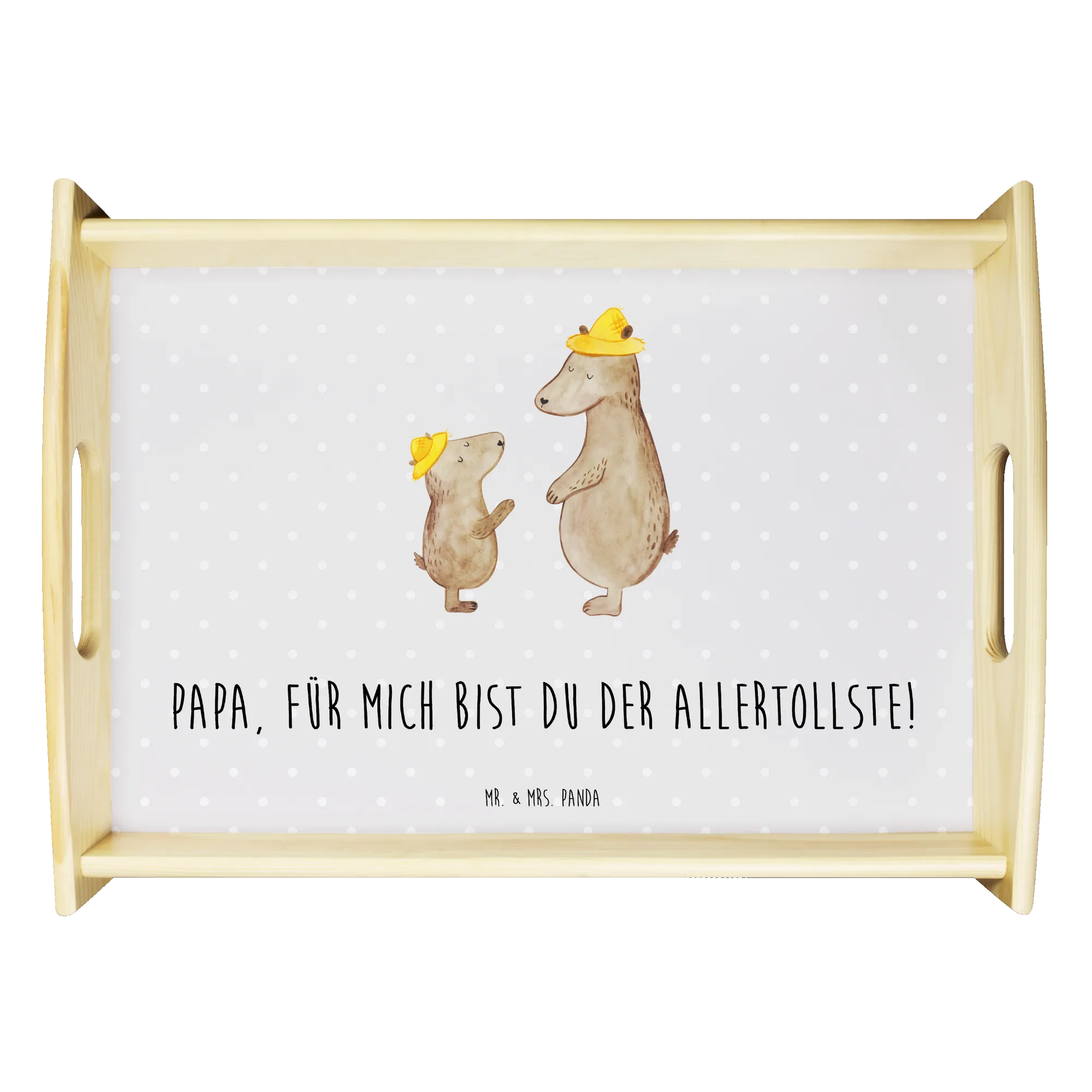 Verwöhne Deine Liebsten mit unserem bezaubernden Serviertablett von Mr. & Mrs. Panda! Mit den Maßen von 480 mm x 480 mm x 65 mm und einem gewicht von 925 g ist es nicht nur hübsch, sondern auch praktisch. Aus lasiertem Echtholz gefertigt, begeistert es mit einem lebendigen Druck, der gute Stimmung verbreitet. Egal ob beim Frühstück im Bett oder beim gemütlichen Abendessen auf dem Sofa – die seitlichen Griffmulden ermöglichen ein einfaches Tragen. Die Anti-Rutsch Pads auf der Unterseite sorgen dafür, dass alles sicher an seinem Platz bleibt. Dank der kratzfesten Oberfläche bleibt dein Tablett nach jeder Benutzung in bestem Zustand – einfach mit einem feuchten Tuch und Spülmittel abwischen, aber nicht einweichen! Beachte bitte die längere Anfertigungszeit aufgrund der besonderen Verarbeitung.