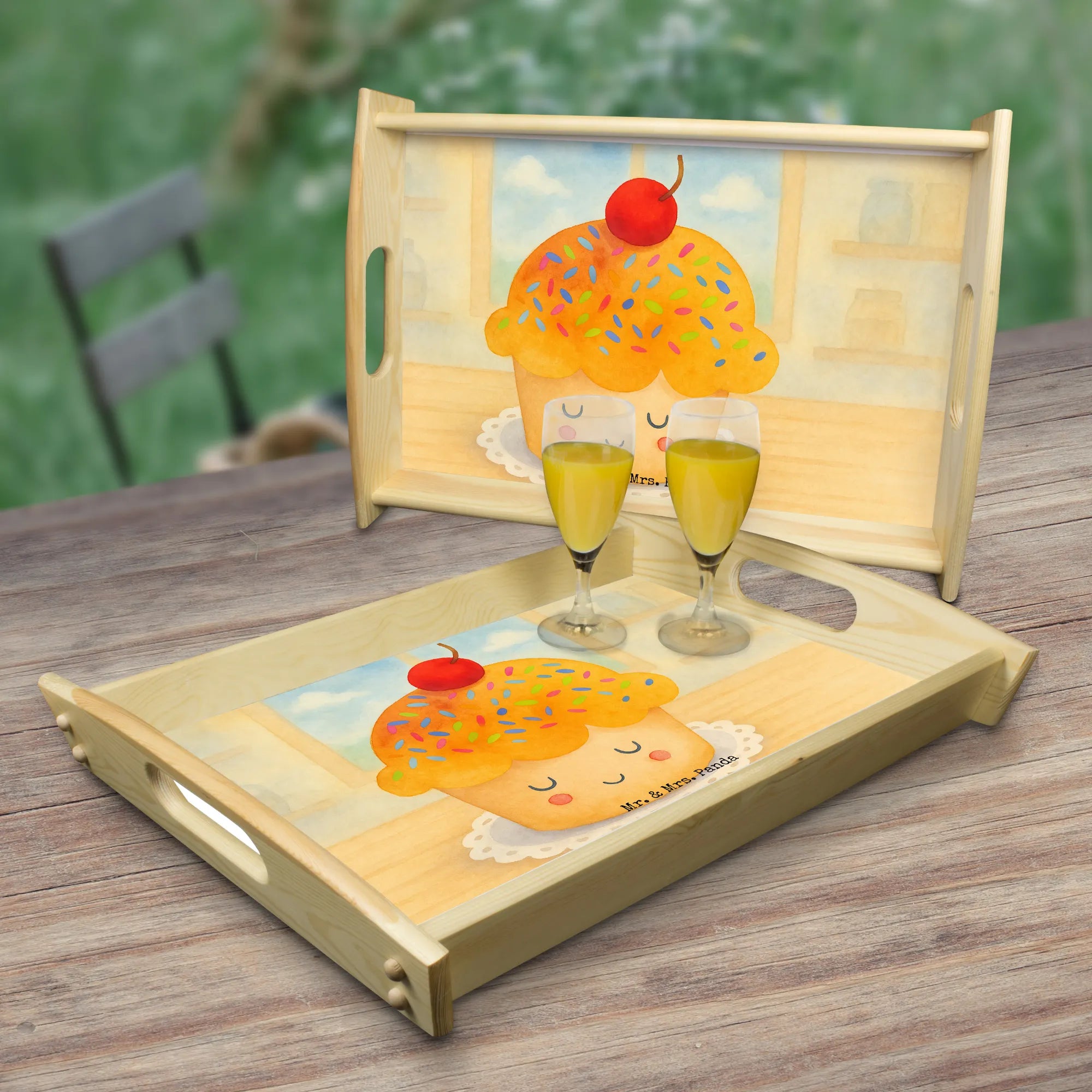 Das atemberaubende Serviertablett von Mr. & Mrs. Panda ist das ideale Geschenk für jeden Frühstücksliebhaber! Mit den Maßen von 480 mm x 480 mm x 65 mm und einem Gewicht von 925 g ist es ein perfekter Begleiter für den Tag. Hergestellt aus hochwertigem, lasiertem Echtholz, setzt es sich durch einen strahlenden Druck in Szene. Ob für Frühstück im Bett oder beim Picknick auf der Terrasse, die seitlichen Griffmulden sorgen für eine angenehme Handhabung. Gleichermaßen punktet das Tablett mit seinen Anti-Rutsch Pads, die für einen sicheren Stand sorgen. Es ist zudem kratzfest und einfach zu reinigen – wisch einfach mit einem feuchten Tuch darüber. Bitte nicht einweichen!Achtung: Die Anfertigung dauert etwas länger, da wir viel Liebe ins Detail stecken.