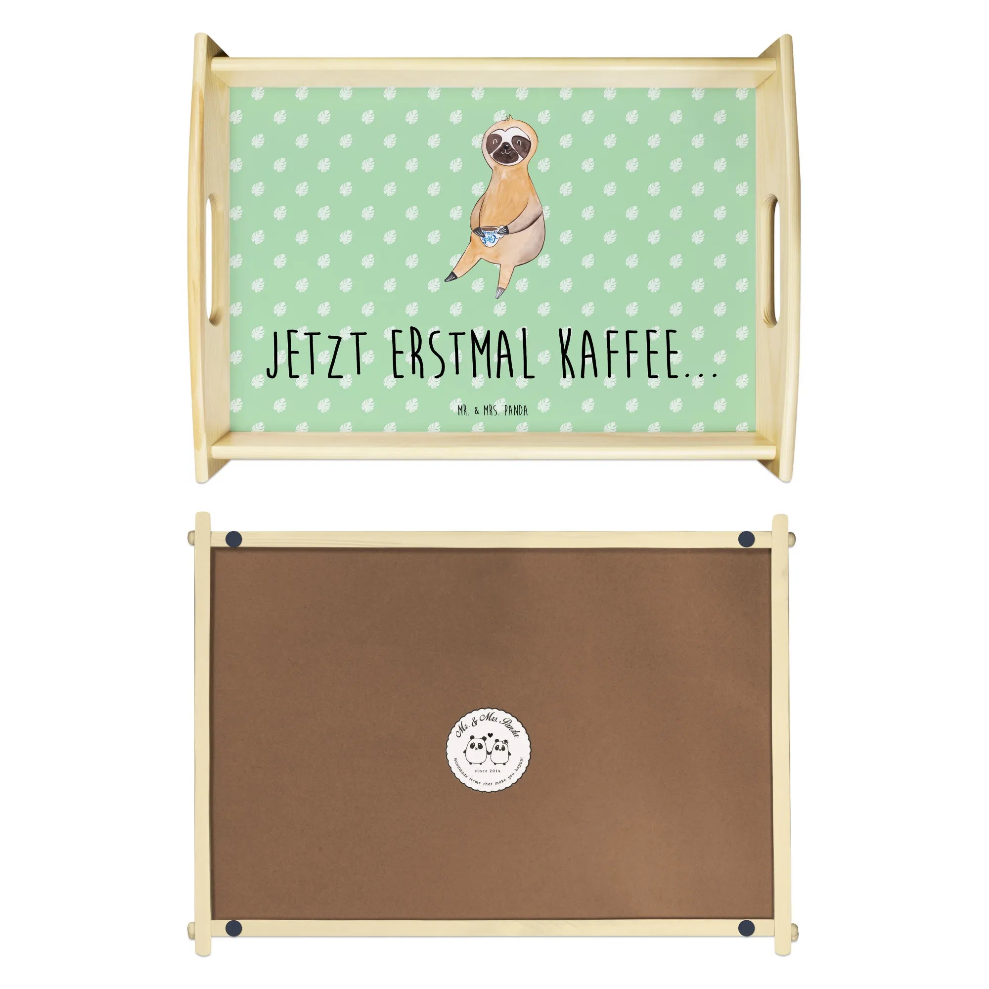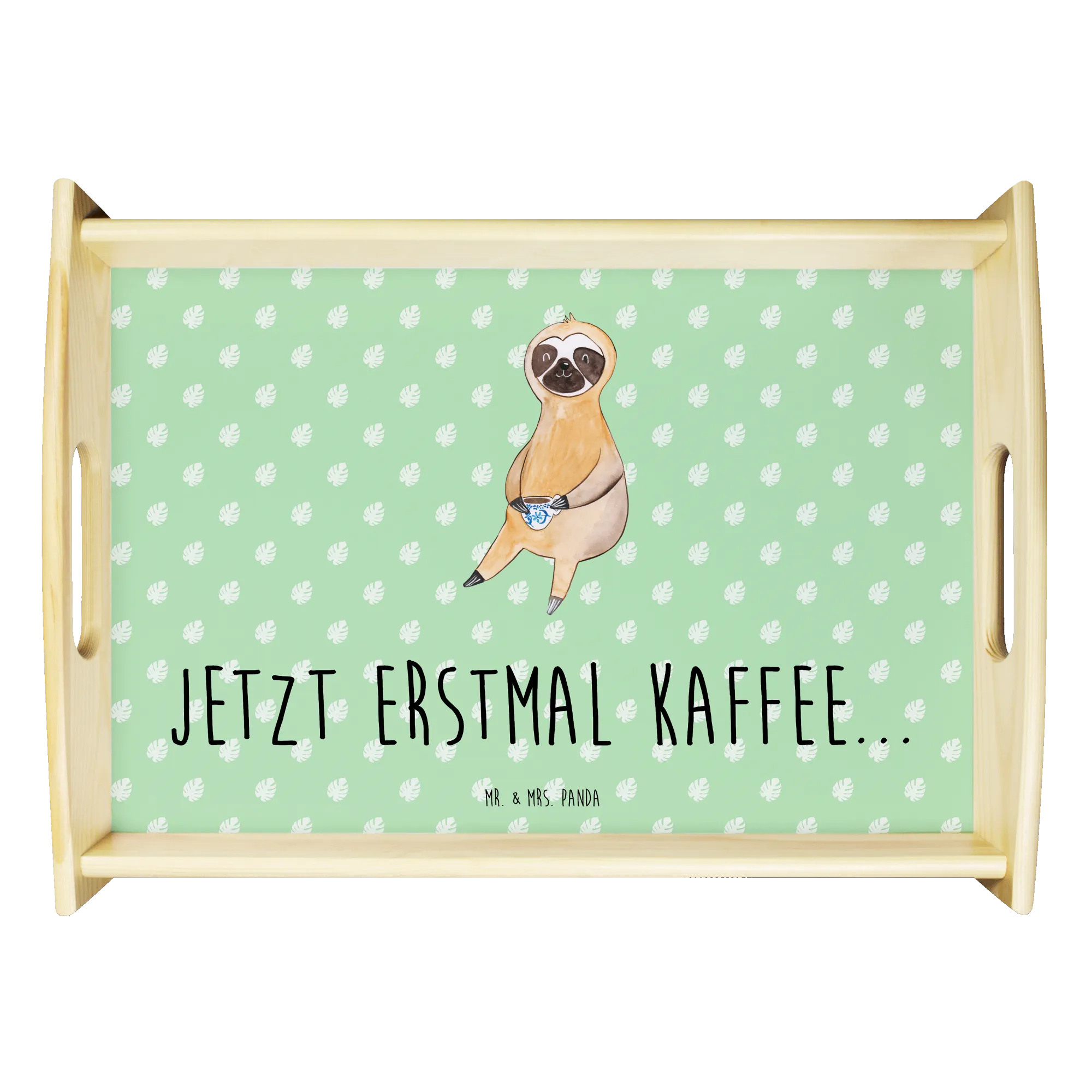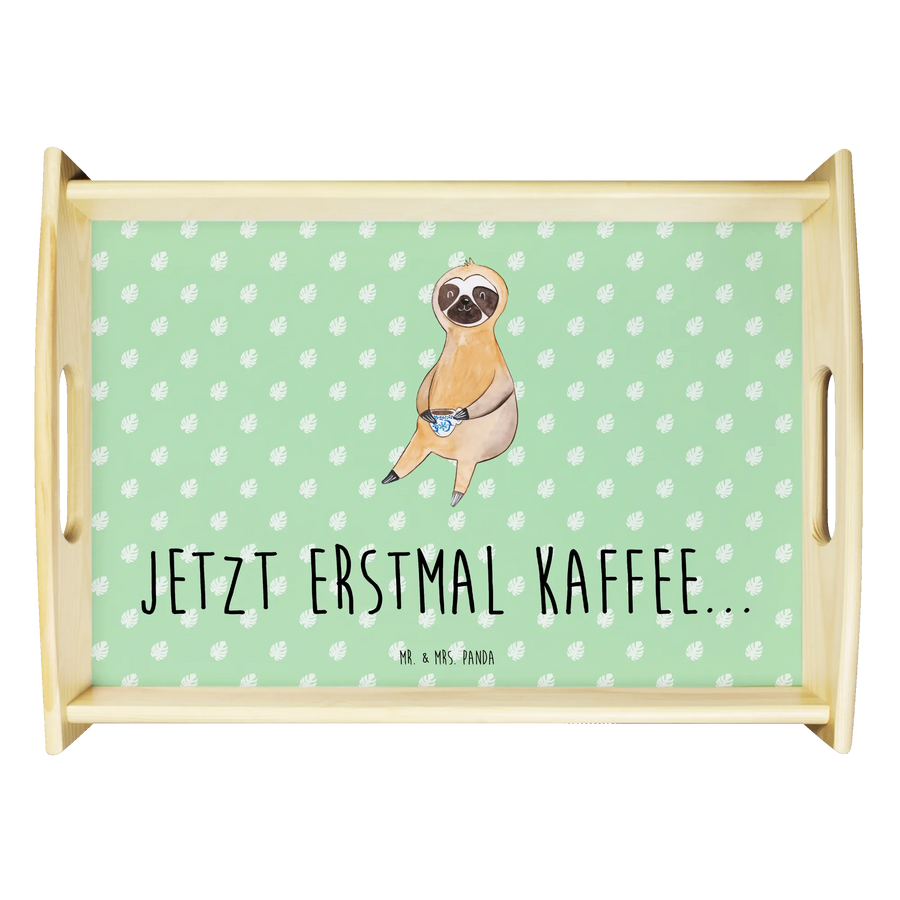 Serviertablett Faultier Kaffee - mit Spruch - Tropengrün