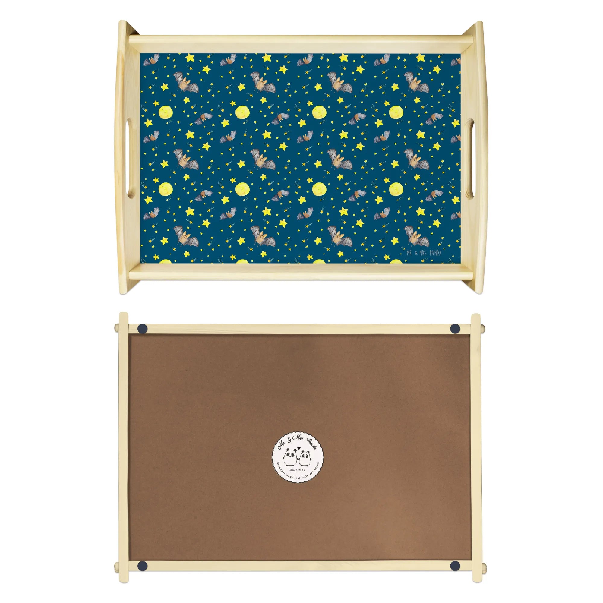 Entdecke das traumhafte Serviertablett mit dem zauberhaften Motiv der Fledermaus Flügel aus der Small World Kollektion von Mr. & Mrs. Panda! Dieses wunderschöne, einzigartige Holztablett ist nicht nur ein praktischer Begleiter für dein Frühstück im Bett, sondern auch ein echter Blickfang in deiner Küche. Mit seinen strahlenden Farben und dem liebevoll gestalteten Design bringt es Freude in deinen Alltag.